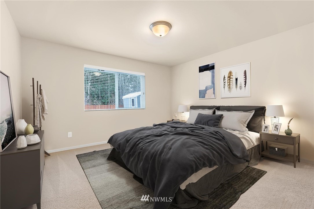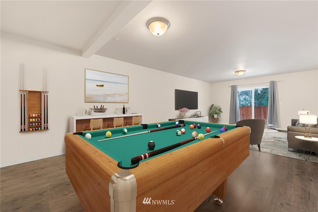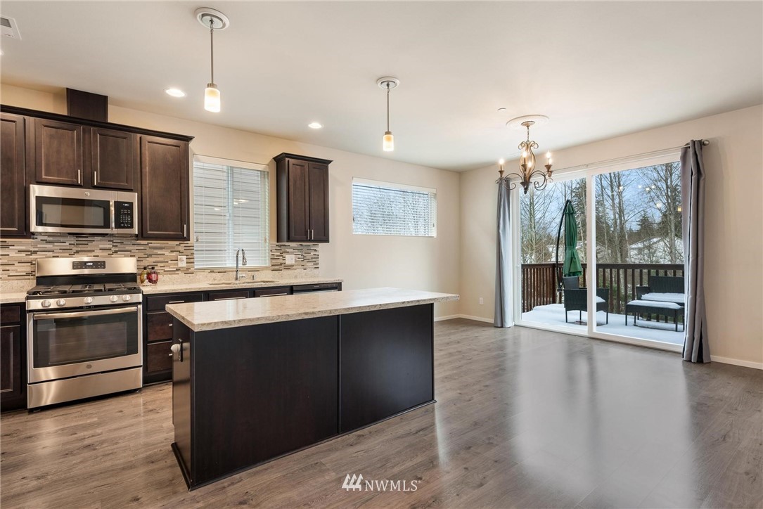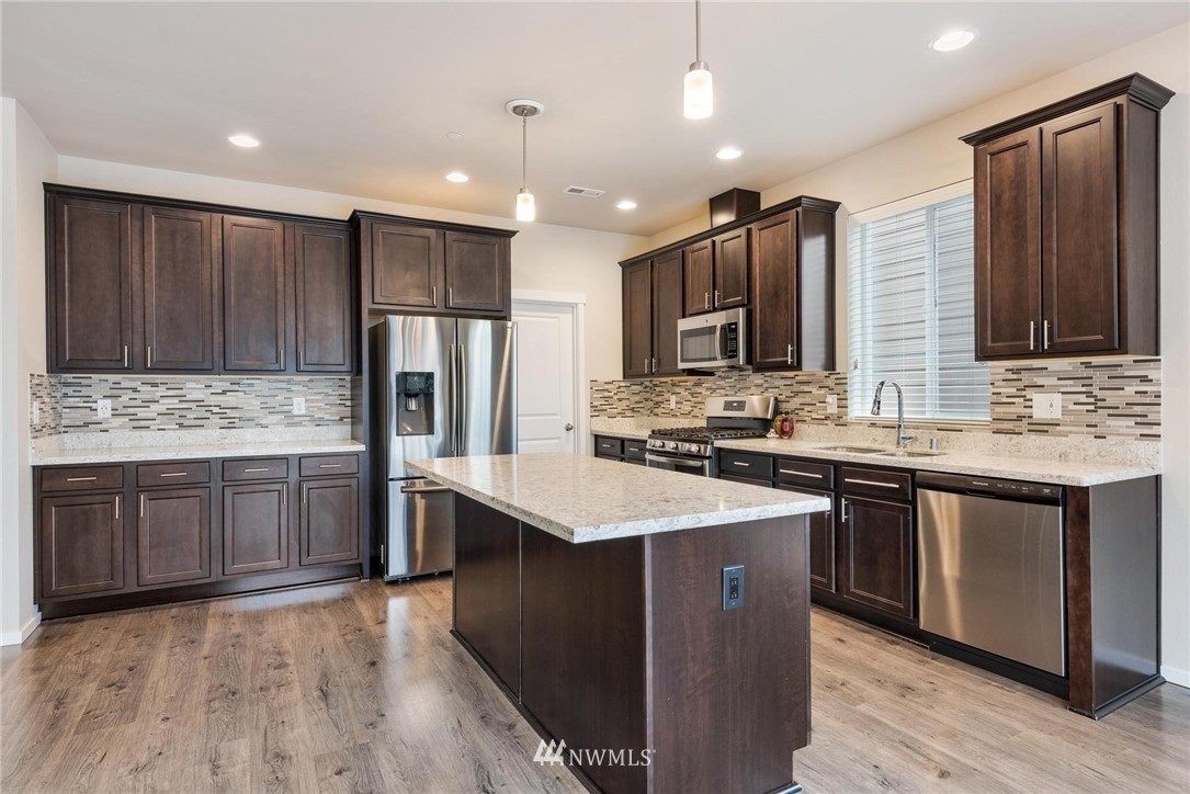 Rarely available SIX bedroom home! Over, 3,200 ft! Room for everyone in this like-new Hawks Ridge home. Modern elegance with perfectly w/ functionality in the great room concept main level w/ wood floors, efficient systems, a sleek gas fireplace & spacious chef's kitchen boasting gas cooking, stainless appliances & a huge walk-in pantry. Air conditioning! 5 bedrooms upstairs including large primary suite w/ vaulted ceilings, oversized walk-in closet & lux 5-piece en suite bath. Downstairs, huge rec room offers room to entertain or play while a 6th bedroom is great for guests. Large finished 2-car garage offers extra storage space. Set in a peaceful & private location just mins to schools, dining, Alderwood Mall, Paine Field, Boeing, more!