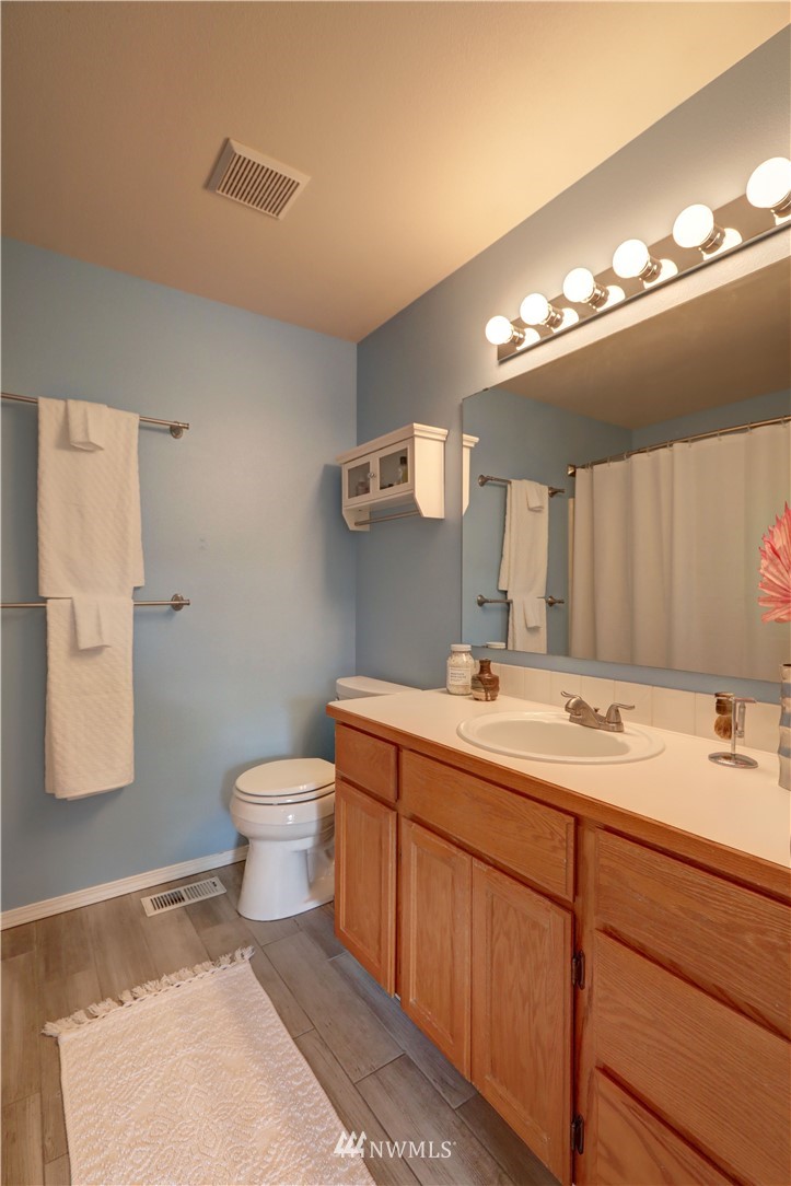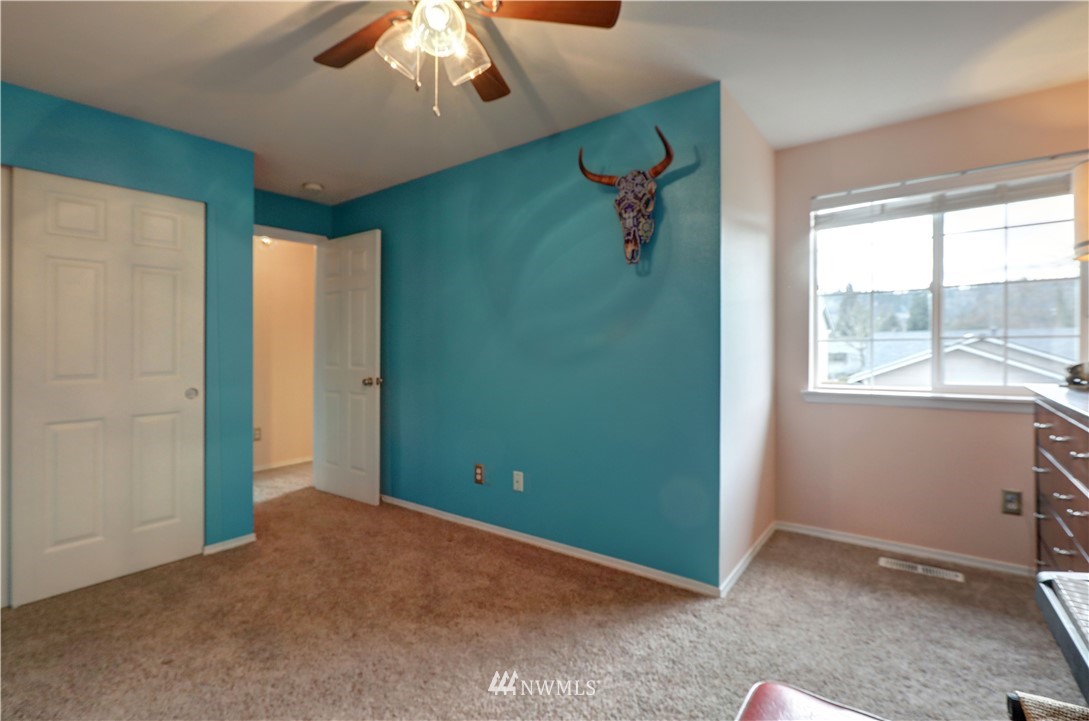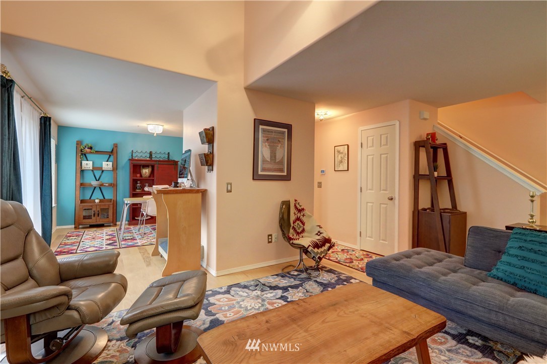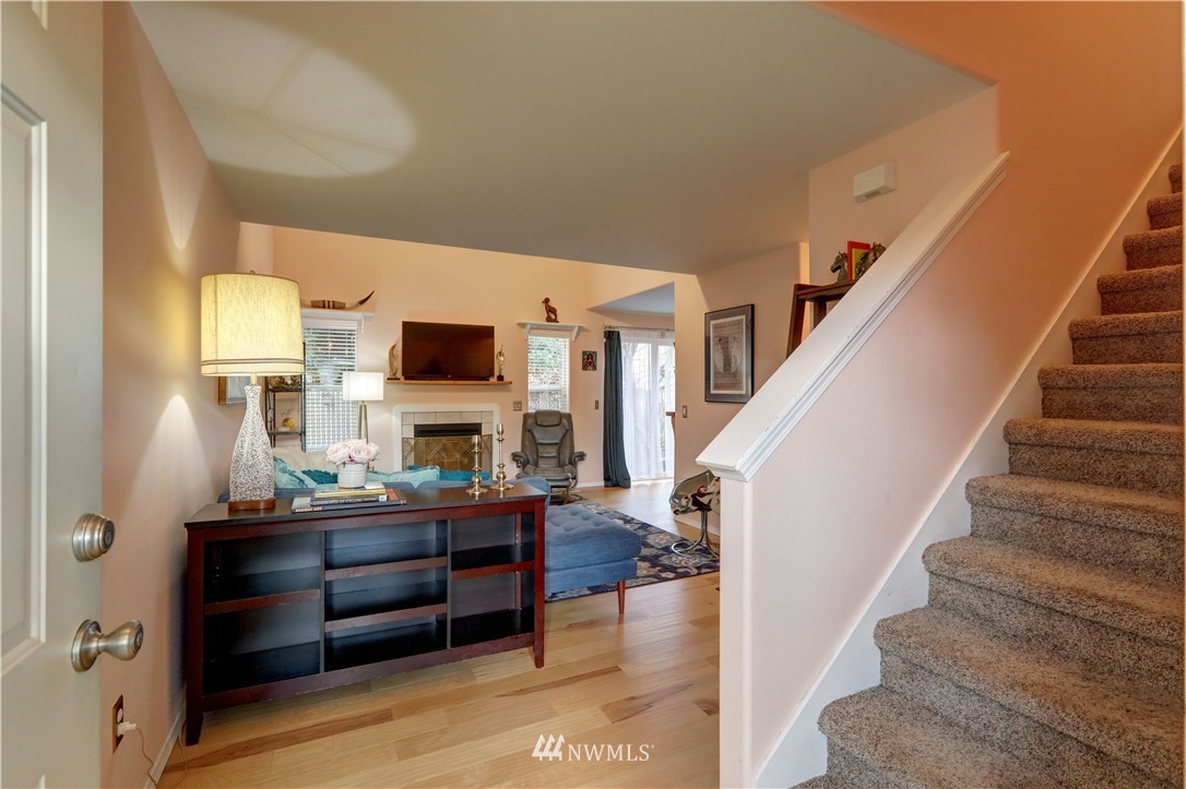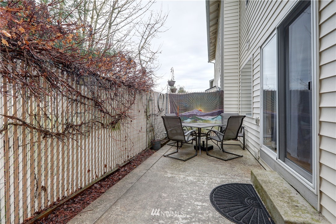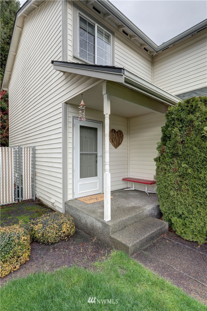 Located within the quiet, gated Ashlyn community of Downtown Puyallup, this condo boasts larger living while closer to everything. Steps to coffee shoppes + parks, fabulous food, with shopping and newly developed centers all nearby, fast access to freeways, train, and iconic fairgrounds. Get cozy in the light filled and airy living room warmed by the fireplace. Al fresco dining + entertainment await on the private backyard patio deck-great for pets. Primary room with en suite features double closets. Spacious rooms, high ceilings, +potential to make 3rd bedroom a den or flex space. Stay cool in the summers with brand new AC. Work from home or commute, enjoy Downtown living. Dues cover landscaping, exterior maintenance, security services