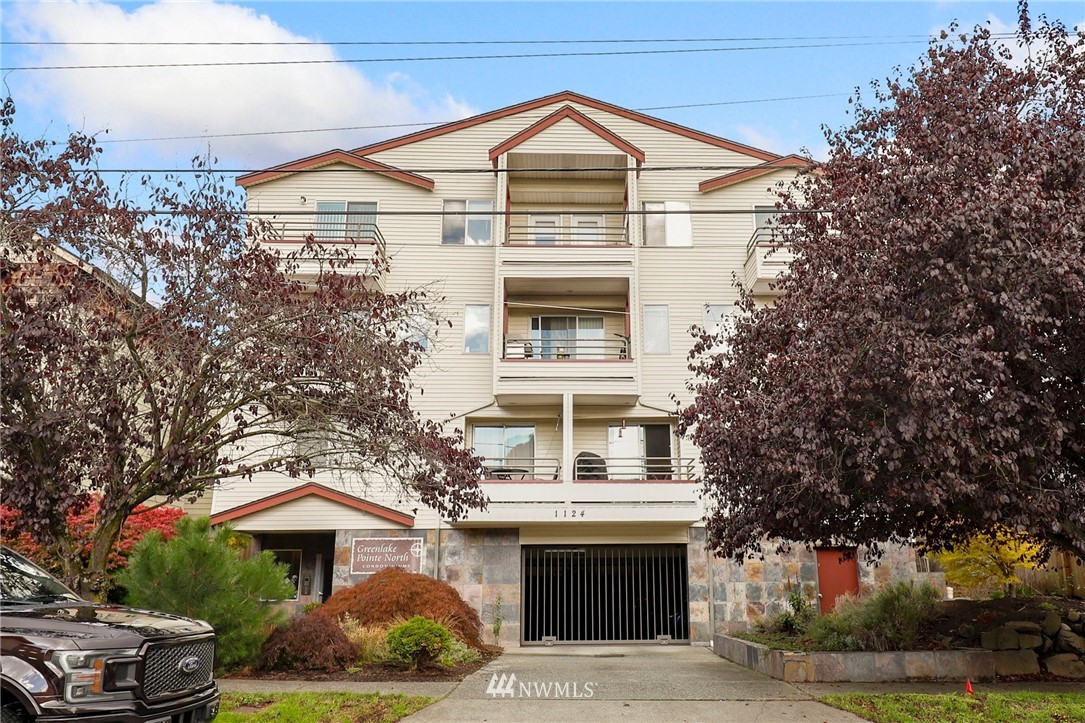 Welcome home! This corner unit condo is conveniently located near shops, recreation & transit! Enjoy the proximity to Greenlake, Greenwood, and the brand new Northgate Light Rail. Sip your morning coffee from your private balcony or cozy down in the spacious living room. Plenty of space for hosting dinner with loved ones or creating a perfect in-home office space. In-unit laundry and secure parking in the garage to further simplify your life. Well-run HOA, with very low dues, and no rental cap! Don't miss this opportunity to enjoy maintenance-free living surrounded by a delightful mixture of natural beauty & city amenities!