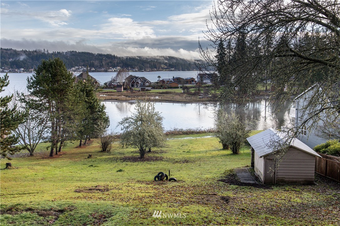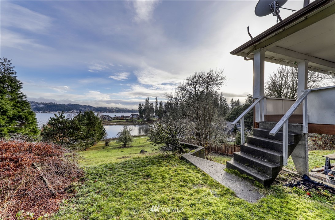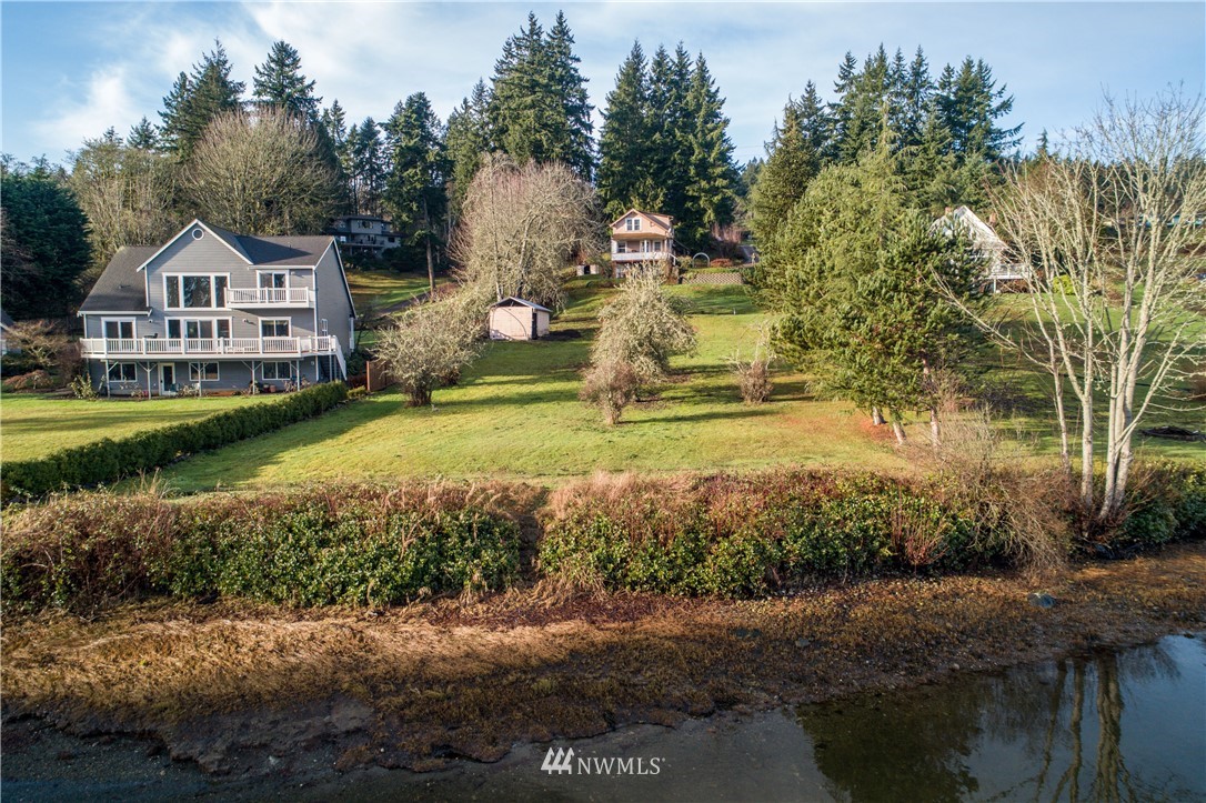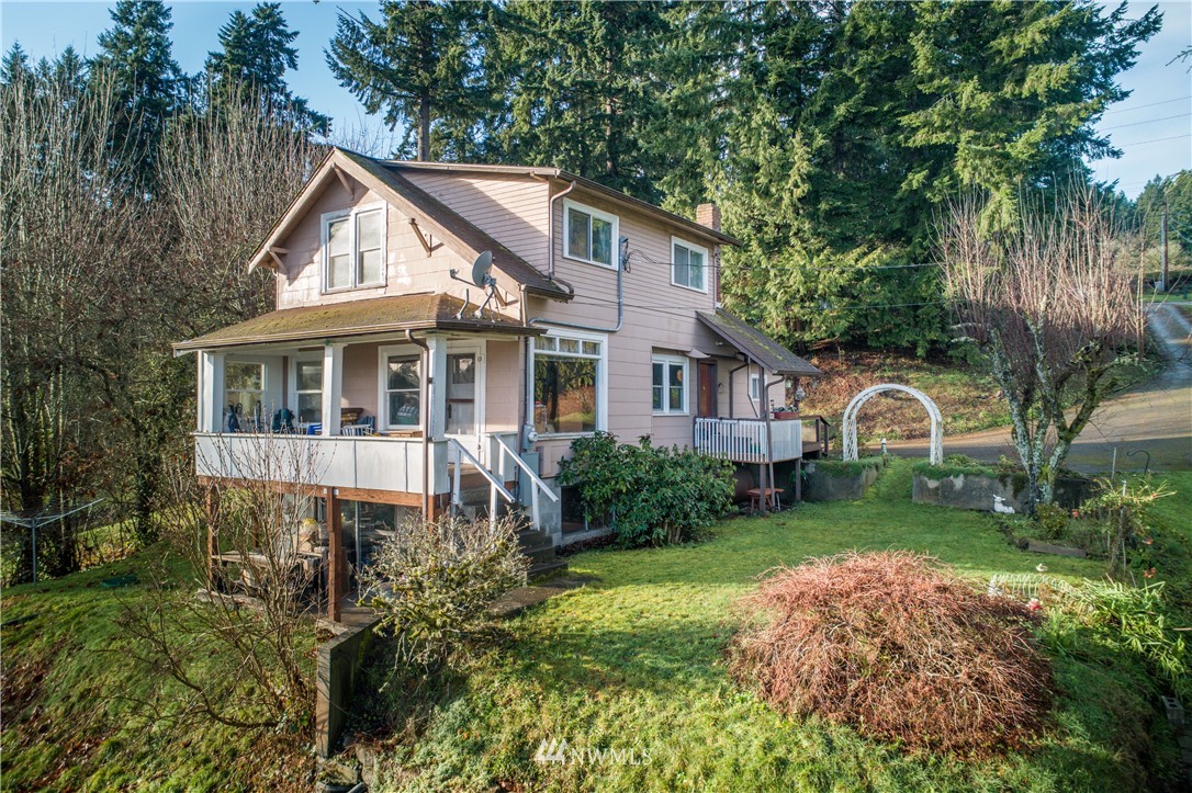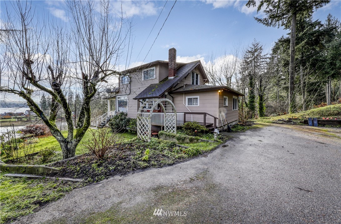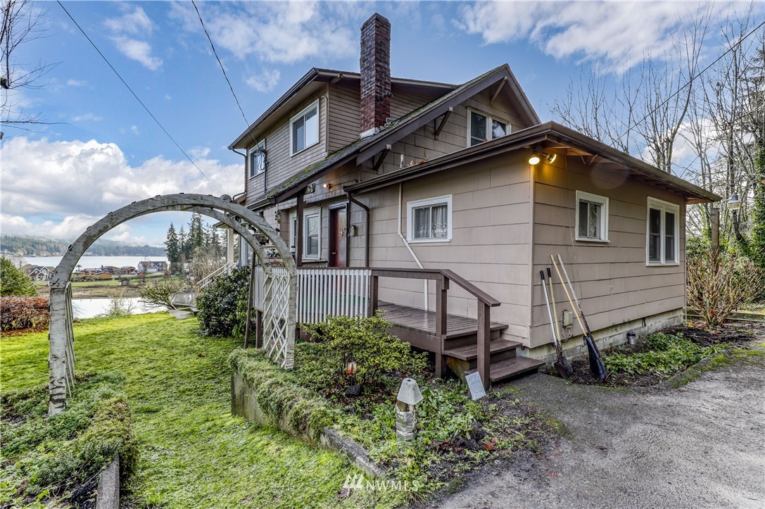 Watch a glorious sunrise reflected on peaceful Liberty Bay from a large covered porch of this waterfront home, enjoying hours gazing at soaring eagles, kayakers & the ever-changing sea. The lot rises from a low-bank beach on Scandia Creek Inlet, SW Liberty Bay, 1 mi. from Pearson Elem., close to historic Poulsbo & Silverdale’s new hospital & shopping centers; commutable to 3 naval bases, even to Seattle. Paved driveway, great view, large lawn, fruit trees, garden, space by house to build garage. The vintage home's interior offers spacious living/dining room w/ textured plaster walls/ceiling w/ 3 curved archways, convenient U-shaped kitchen, approved 4 bed septic, lg. unfinised full basement, lots of potential for handiman, sold "as-is".