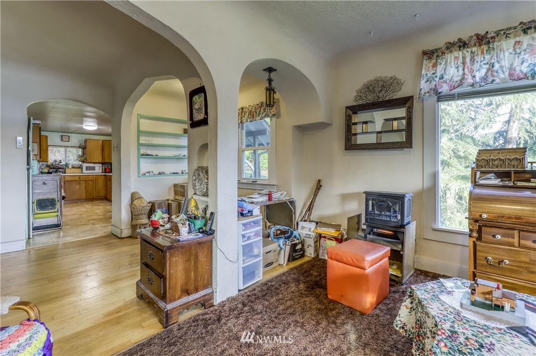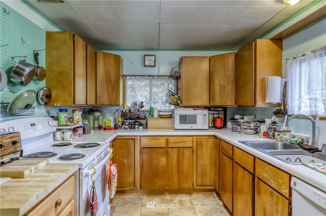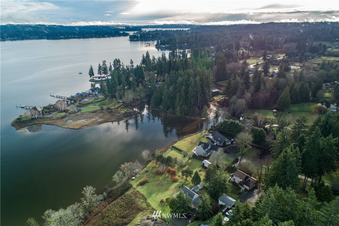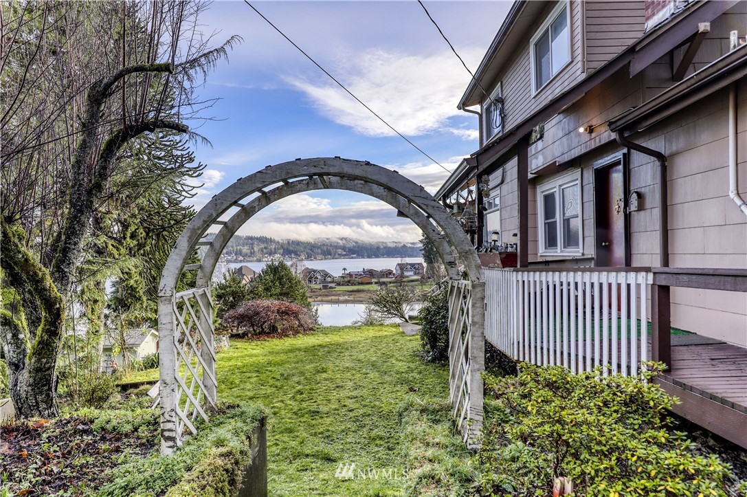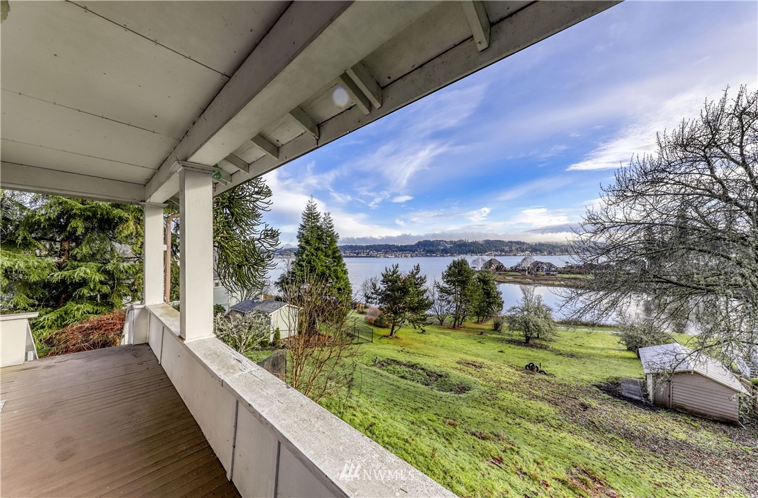 Watch a glorious sunrise reflected on peaceful Liberty Bay from a large covered porch of this waterfront home, enjoying hours gazing at soaring eagles, kayakers & the ever-changing sea. The lot rises from a low-bank beach on Scandia Creek Inlet, SW Liberty Bay, 1 mi. from Pearson Elem., close to historic Poulsbo & Silverdale’s new hospital & shopping centers; commutable to 3 naval bases, even to Seattle. Paved driveway, great view, large lawn, fruit trees, garden, space by house to build garage. The vintage home's interior offers spacious living/dining room w/ textured plaster walls/ceiling w/ 3 curved archways, convenient U-shaped kitchen, approved 4 bed septic, lg. unfinised full basement, lots of potential for handiman, sold "as-is".