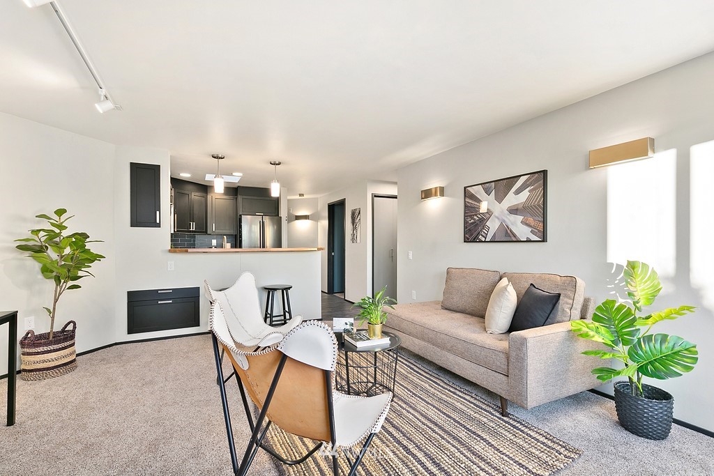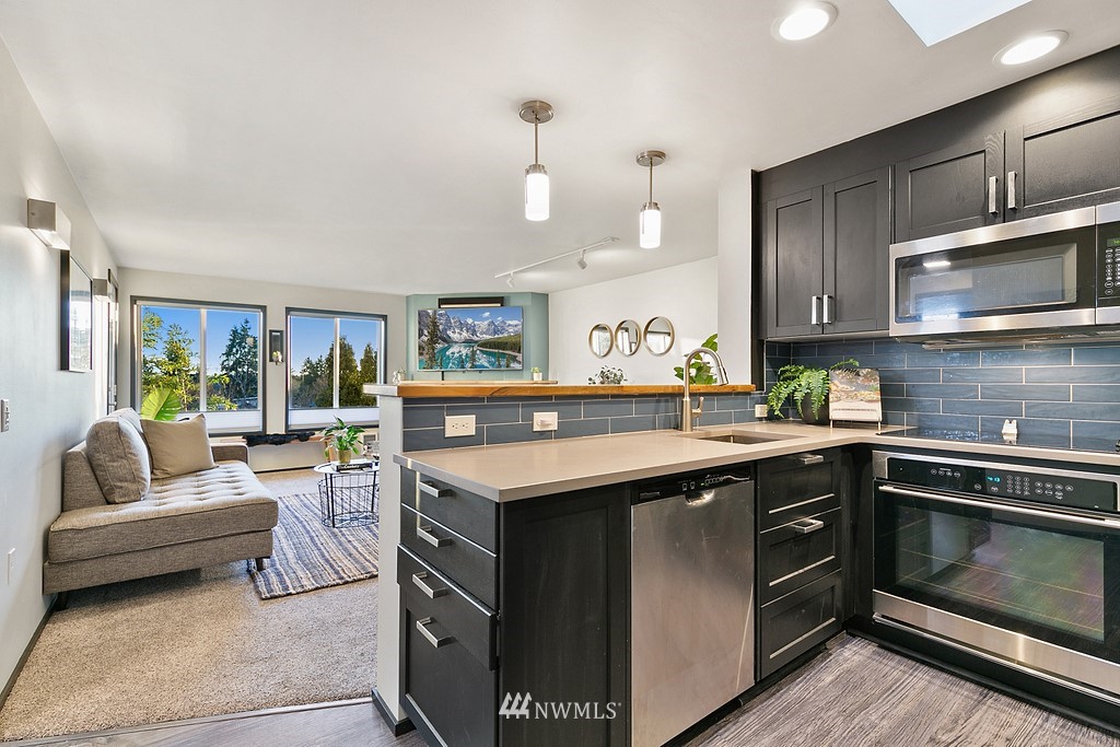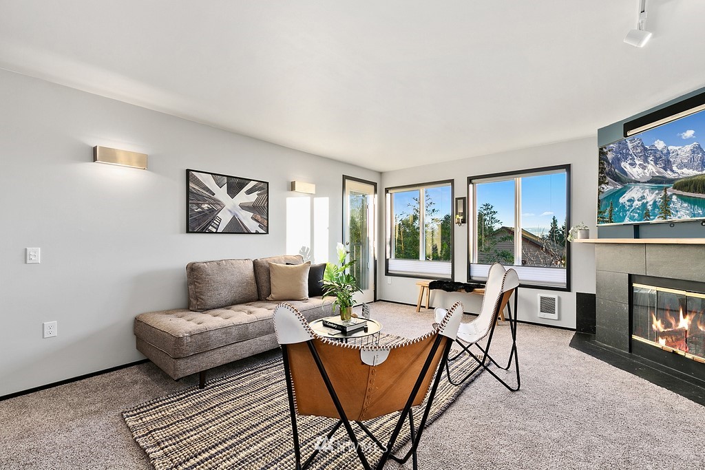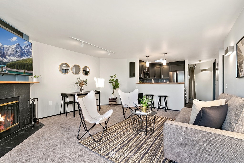 Welcome home to this top-floor Greenwood gem. You'll love soaking in the sunsets and sunrise in this open-format two-bed, two-bath condo with fireplace. Recently updated and freshly-painted throughout, all you need is to add your personal touches to make this your own urban oasis. Ample storage in-unit, plus a storage unit and 2 secure parking spaces, and access to multiple modes of transit make life easy. You'll love being able to walk just a few blocks to take in all Greenwood has to offer, or go just a little further to enjoy Greenlake, Ballard, Golden Gardens and more! Well-run HOA and pets allowed! Polymer roof - new in 2014. CW Title - Kris Blackburn preferred.