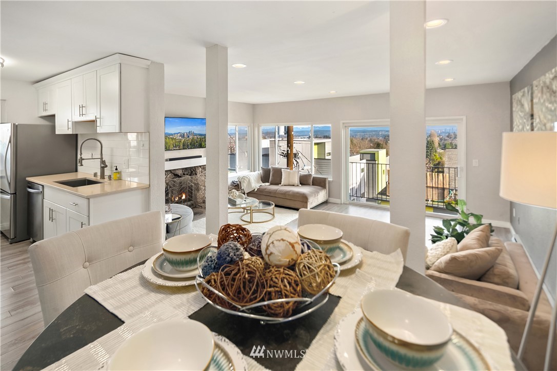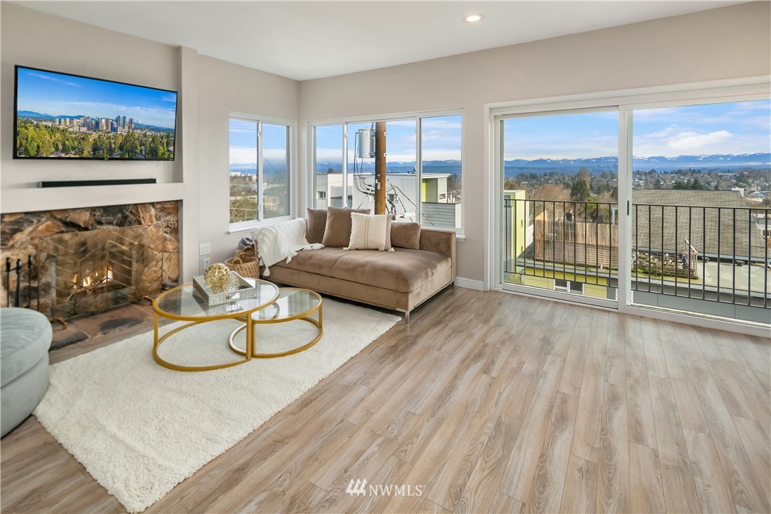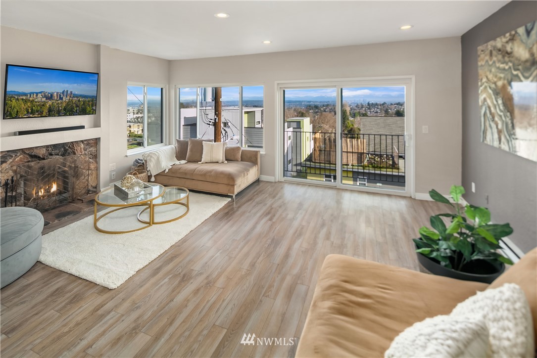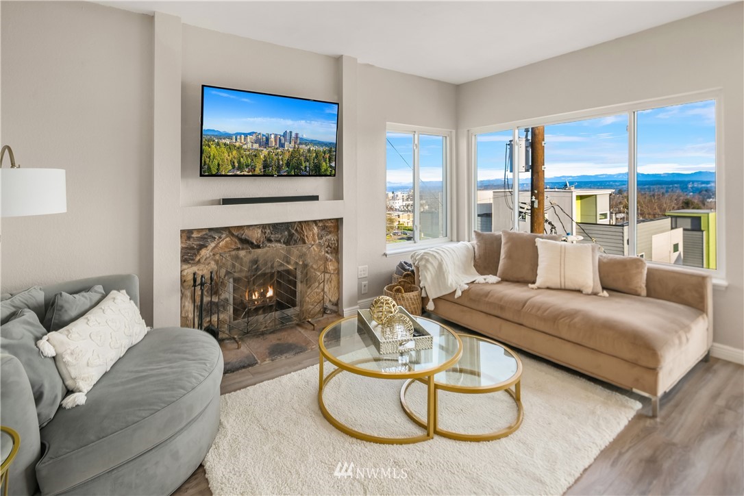 Location! Location! Live in one of Seattle's most central desirable neighborhoods where you are minutes away from parks, restaurants, shopping, downtown and easy freeway access. Fall in love w/ floor to ceiling windows for maximum 270 degree of mountain, lake & city views - all from top floor. The spacious open floor plan boasts huge bedrooms, private master bath & wood burning fireplace to relax. Enjoy sliding glass doors for fresh air while soaking in sweeping views. Home has been well cared for & updated w/ all new flooring, electrical, upgraded baths & kitchen and brand new roof installed 2021 (already paid by seller). Don't miss additional reserved parking, storage locker & closet space for tons of storage. Welcome Home!