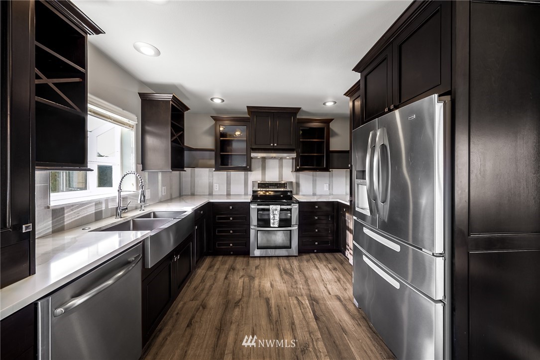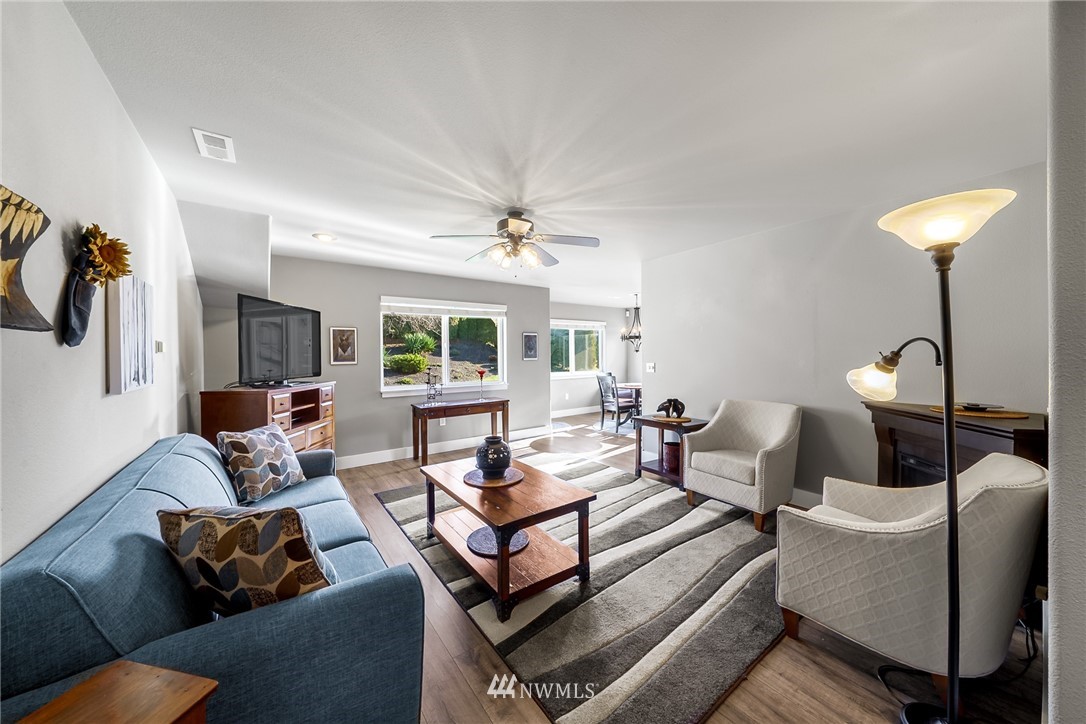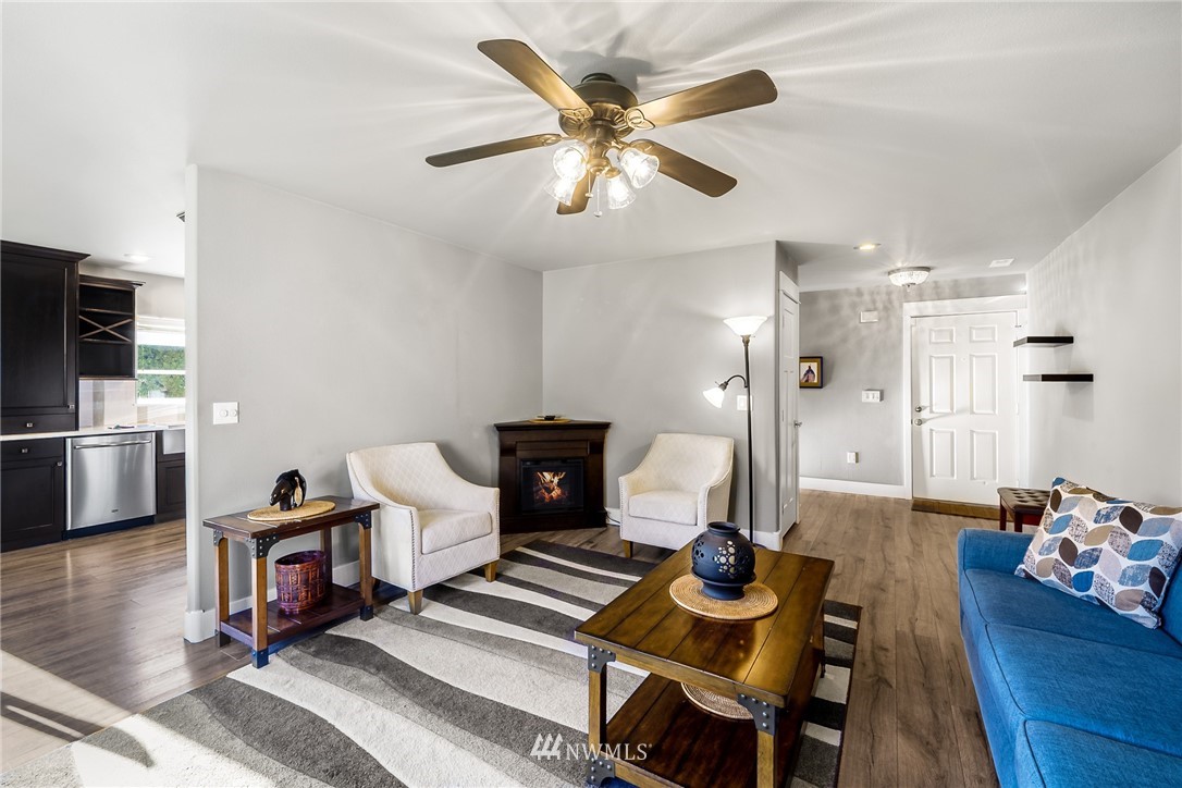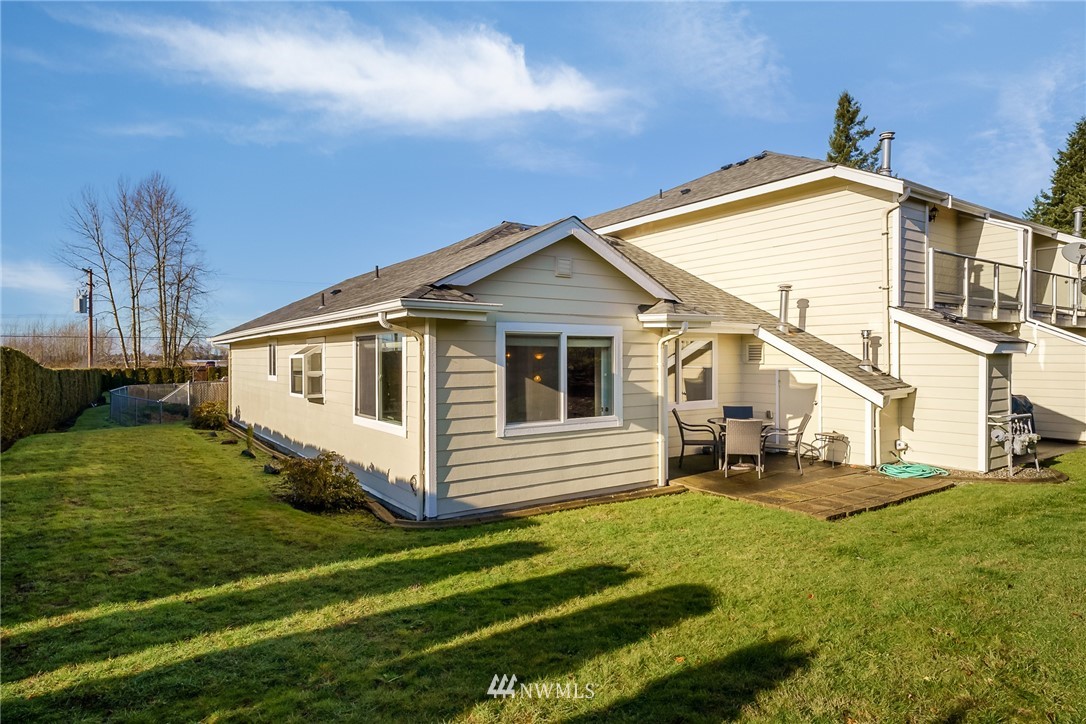 This is the Enumclaw retreat you've been waiting for! 2Bed/1Bath RAMBLER on south endcap of building offering smooth access, yard space & great privacy. Remodeled home features a show-stopping kitchen w/ stainless appliances, a farmhouse sink & gorgeous cabinetry. Updated bath w/ walk-in shower. Durable laminate floors, high-end white millwork & a free-standing fireplace make for comfortable living. Private back patio is perfect for enjoying the peaceful territorial views. Tankless hot water heater, dedicated carport parking & storage unit round out the amenities. Well cared for, low-maintenance Foothills Ridge complex situated close to local restaurants, shopping, golf course & mountain activities. No rental cap & healthy reserves.