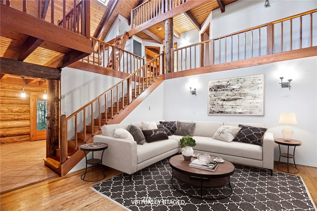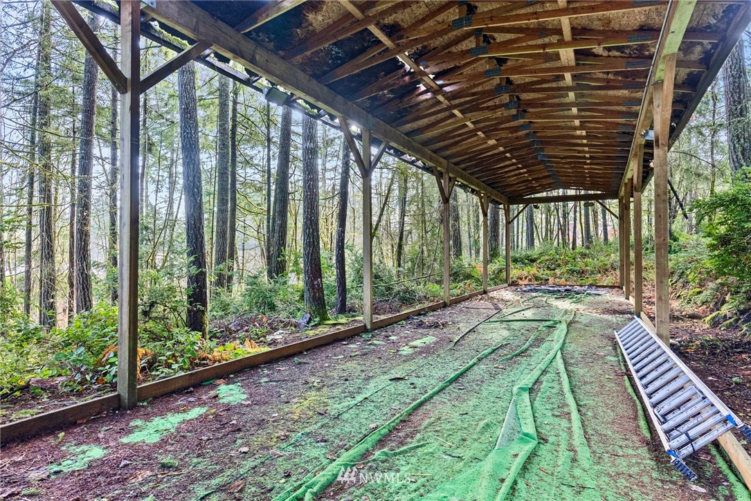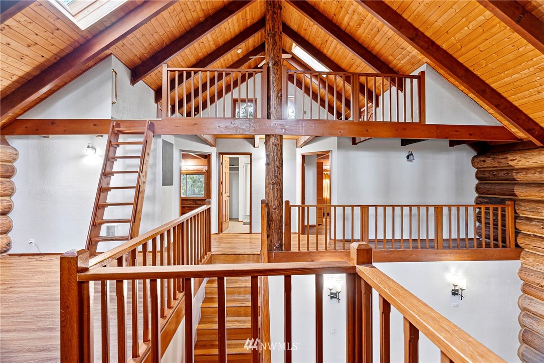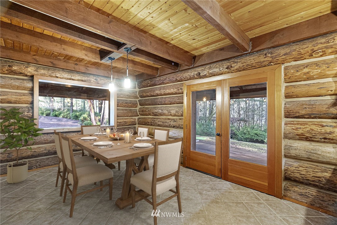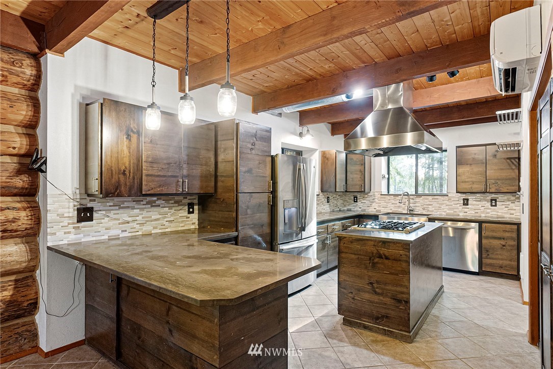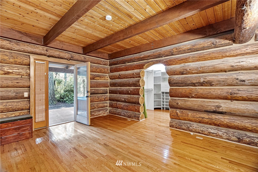 Unique Property Alert! This award winning Hand Hewn log home features an estate style layout w/ large lawn areas, chipping green, wrap-around covered decks, fenced sport court, tri-level permitted recreational outbuilding perfect (not ADU) for a home gym, office, school room, or storage- All nestled on 2.5 private acres. Primary bedroom on main features an over-sized walk-in closet & french doors lead to hot tub. Efficient ductless heat pump & gas (propane) fireplace for year round climate control. Kitchen has been beautifully updated w/stone counters, top of the line appliances, glass tile accents & stainless farm sink. Newer 50 year composition roof! Easy access to HWY 16 and Gig Harbor shopping. Peninsula School District.