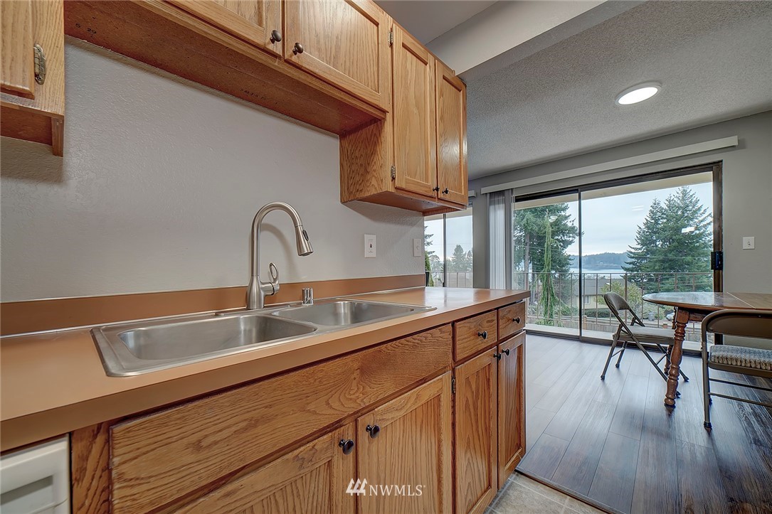 Conveniently located, This VERY clean and spacious 2-bedroom 1 bath unit is just a few minute walk to town, shops, and ferries. Lovely views of Apple Tree Cove & the Olympics. You can actually watch the ferry come into dock right from your large patio. Not only is this unit affordable, but the HOA covers water sewer & garbage. Seller has completed many updates (see supplements for a complete list) This unit is a commuter's dream!