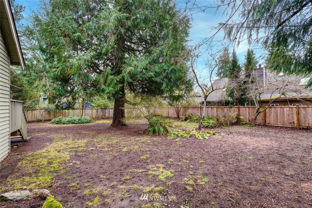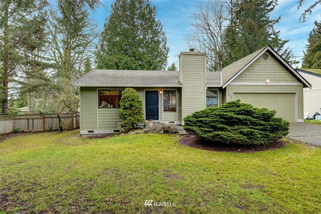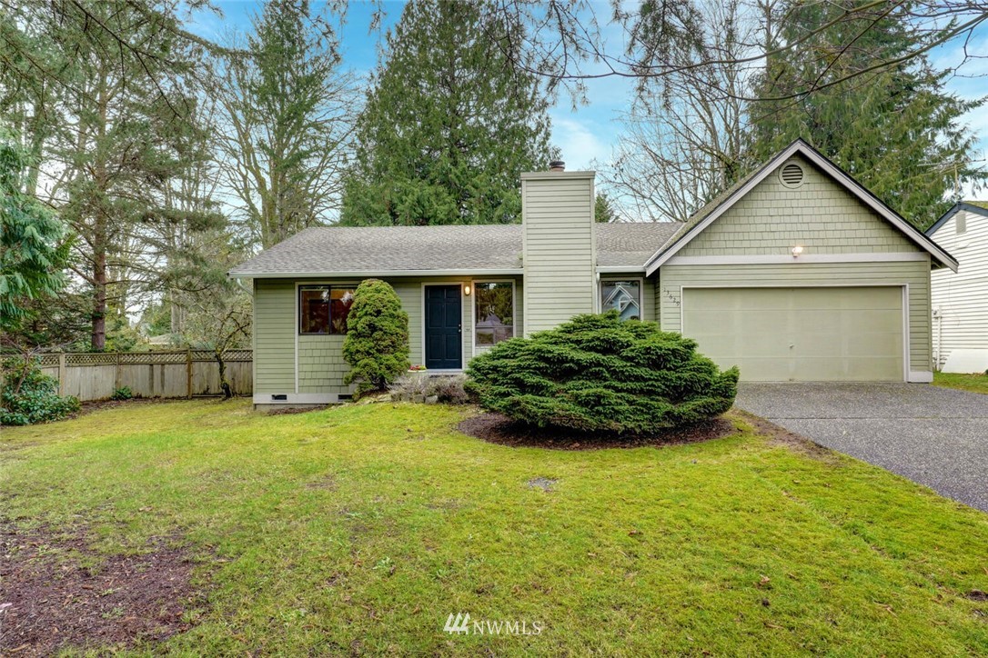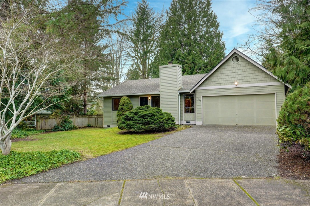 Impeccable rambler on large lot and quiet cul-de-sac in popular English Hill neighborhood. Custom-built with vaulted ceilings throughout give this home an open & spacious feel. Entry opens to vaulted living area with cozy fireplace. Large kitchen with soaring ceiling, skylight, eating space & new vinyl plank flooring. Family room with a wall of windows and slider to deck & expansive yard for play, pets or gardening. New carpet & freshly painted interior. Attached 2-car garage w/storage. Gas heat & water heat. One-level living, perfect for first time buyer or downsizer. No HOA dues, large 10,696sf lot. Location! Walk/short drive to popular Sunrise Elementary and just minutes to all downtown Redmond conveniences and both SR520 & I-405.