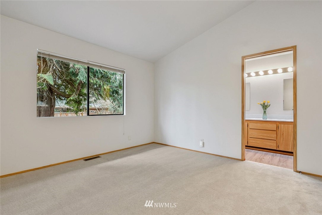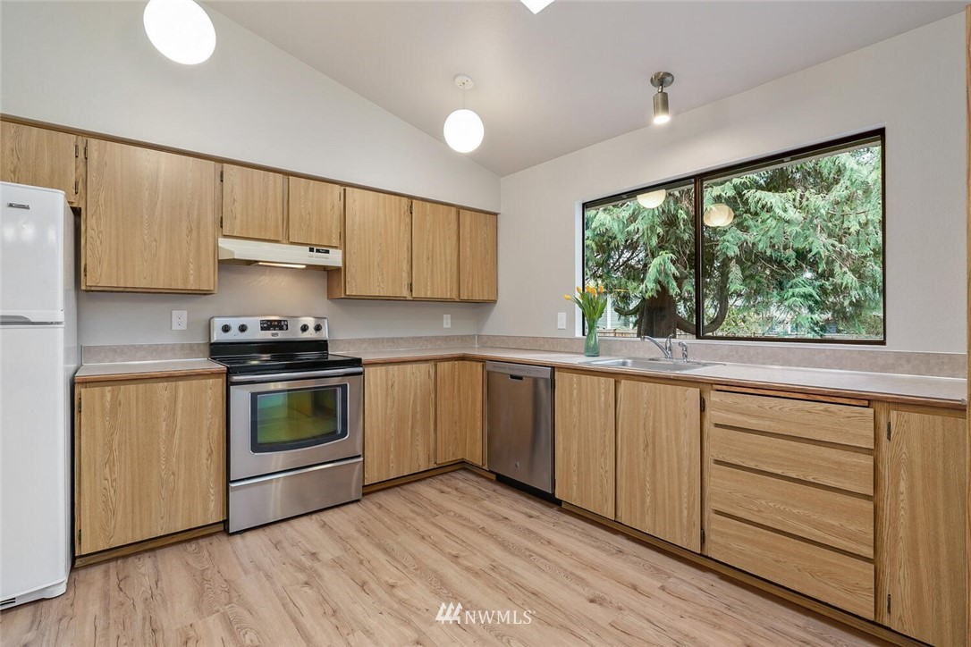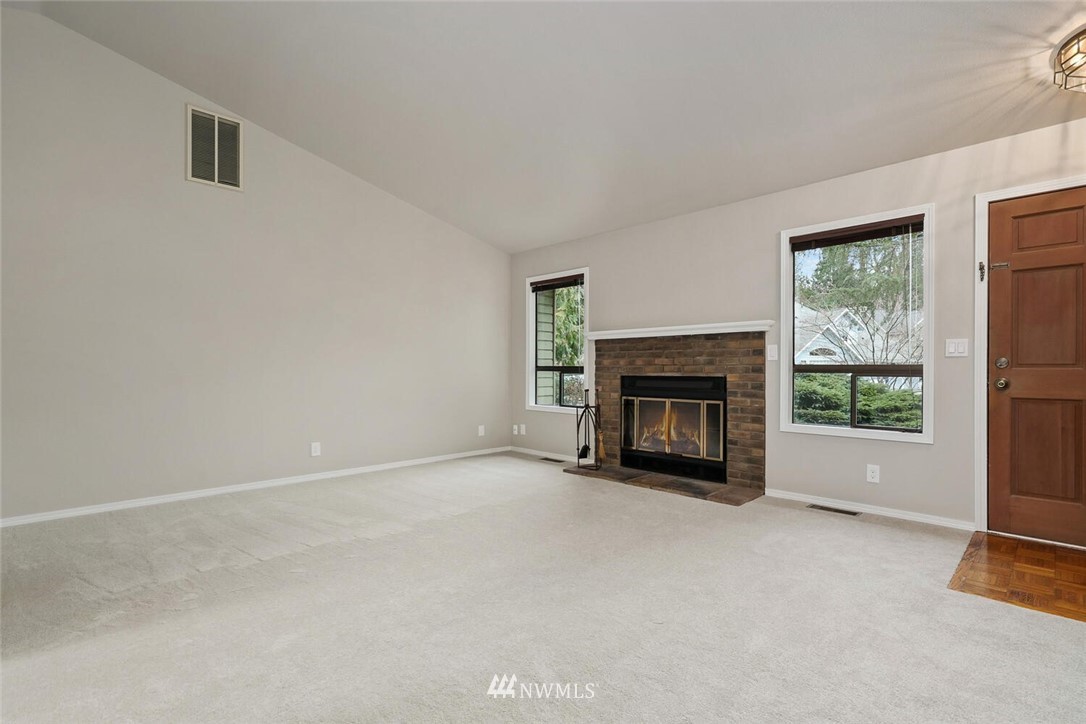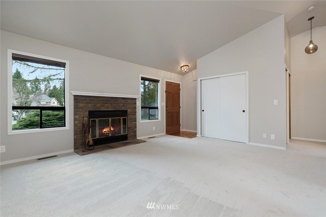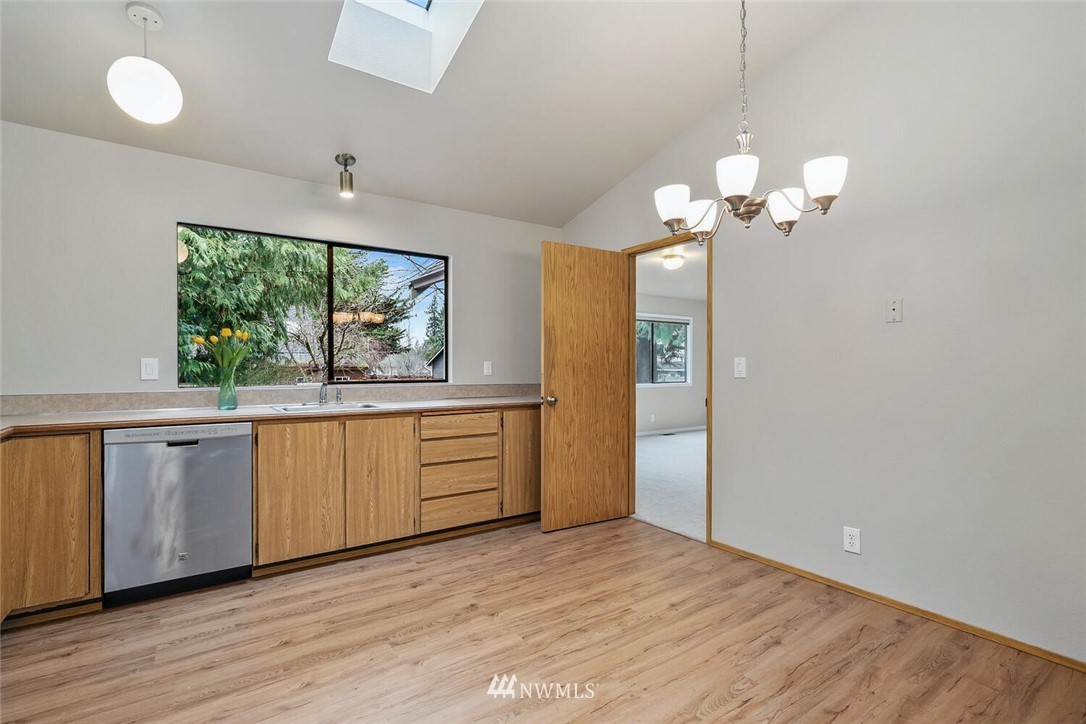 Impeccable rambler on large lot and quiet cul-de-sac in popular English Hill neighborhood. Custom-built with vaulted ceilings throughout give this home an open & spacious feel. Entry opens to vaulted living area with cozy fireplace. Large kitchen with soaring ceiling, skylight, eating space & new vinyl plank flooring. Family room with a wall of windows and slider to deck & expansive yard for play, pets or gardening. New carpet & freshly painted interior. Attached 2-car garage w/storage. Gas heat & water heat. One-level living, perfect for first time buyer or downsizer. No HOA dues, large 10,696sf lot. Location! Walk/short drive to popular Sunrise Elementary and just minutes to all downtown Redmond conveniences and both SR520 & I-405.
