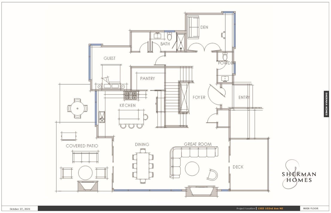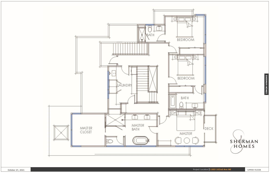 Stunning Sherman Building Company modern home with south eastern views from the main and upper floors and stunning city, mountain and territorial views from the rooftop deck. Nestled a short walk from downtown with easy access to everything Bellevue has to offer including award winning schools. Home will feature all the luxury finishes that make a Sherman Home so popular & desirable. 5 bedrooms, den, great room, family room, bonus room, wine cellar, 4.75 baths, roof top deck, covered outdoor living and an oversized 2 car garage. High walking score through city path to world class shopping, dining, coffee and more.
