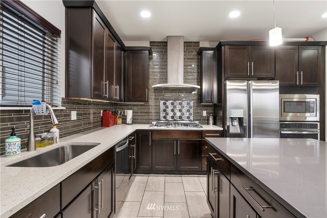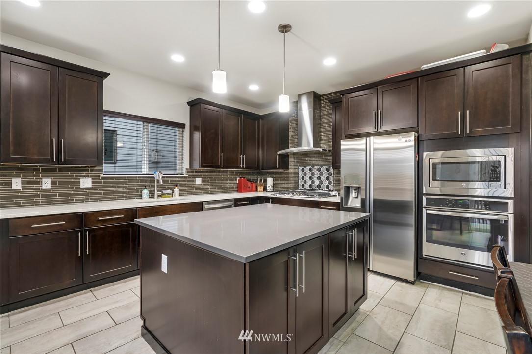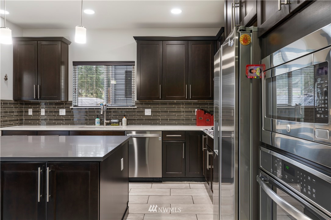 Welcome to Sierra Vista, Pacific Ridge's sought after Bothell community nestled in a beautiful setting next to a protected wildlife area w/ a comm. park within the award-winning Northshore School District. This home includes luxurious features such as slab quartz countertops, extensive tile backsplashes in the kitchen & bathrooms, & hand-scraped hardwood flooring. This home has the largest yard in the comm. w/ 4 Br. + bonus + den/5th Br. With a variety of premium additions such as new tile flooring in the kitchen, Tesla charger installed in the garage, and a brand new A/C unit. This North East facing home is already pre inspected and will be suitable for just about anyone who has the opportunity to walk through it.
