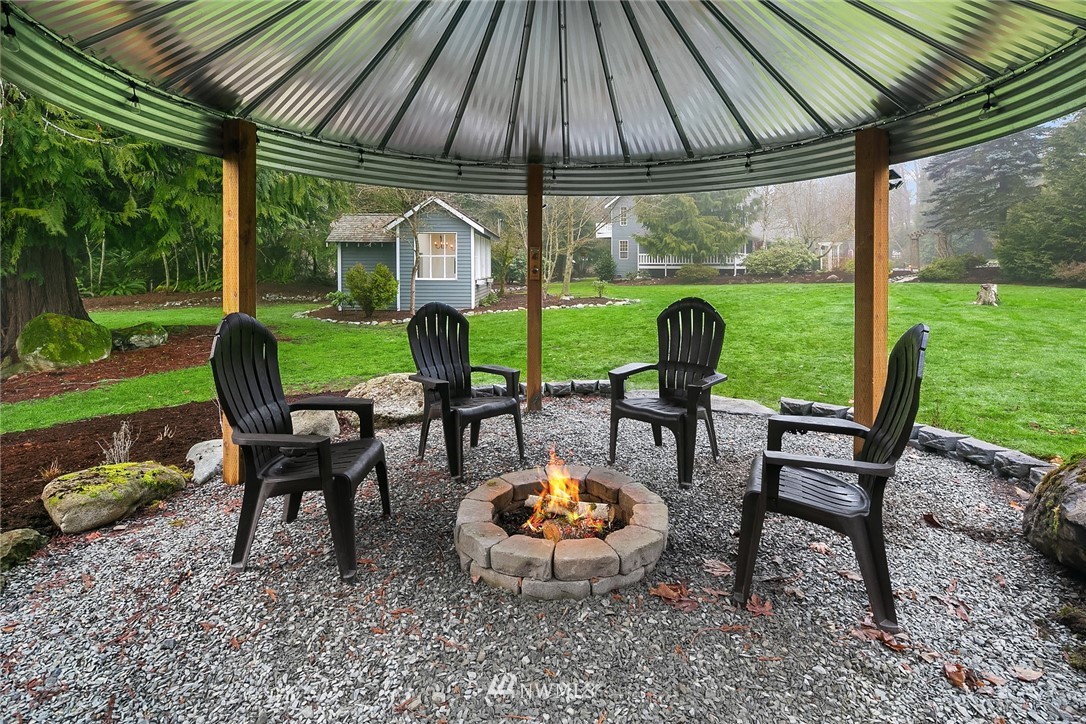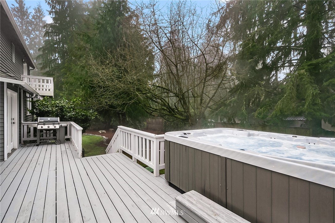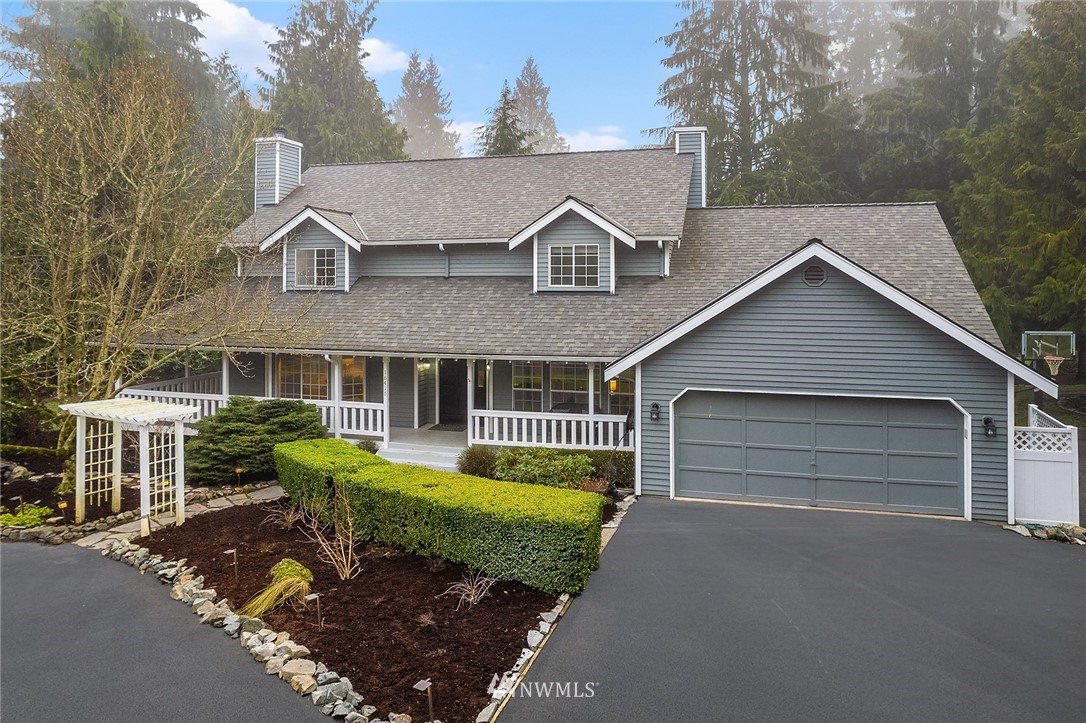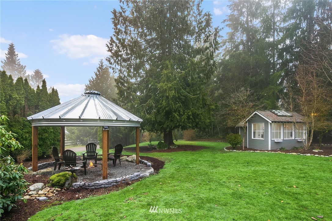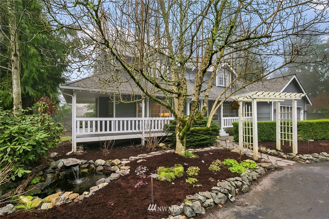 “House Beautiful” in a Sanctuary Setting...A beloved 4BR, 2.5 BA Cape Cod style home on over an acre of Private Paradise, minutes to Woodinville and Eastside Tech. Meticulously remodeled throughout and featuring two additional studio cottages (one with 3/4 BA and kitchenette) great for guests or work / study options. Open, circular floor plan newly updated with the latest decorator flooring, paint and fixtures. Sun-drenched living and dining rooms, den/4th BR, spacious family room with French doors to a huge deck and gleaming outdoor spa for year round enjoyment. Granite, quartz and stainless professional Chef's kitchen. Gorgeous owner's suite with all new custom 5-piece bath and private deck. Sprawling lawns, covered firepit, generator.