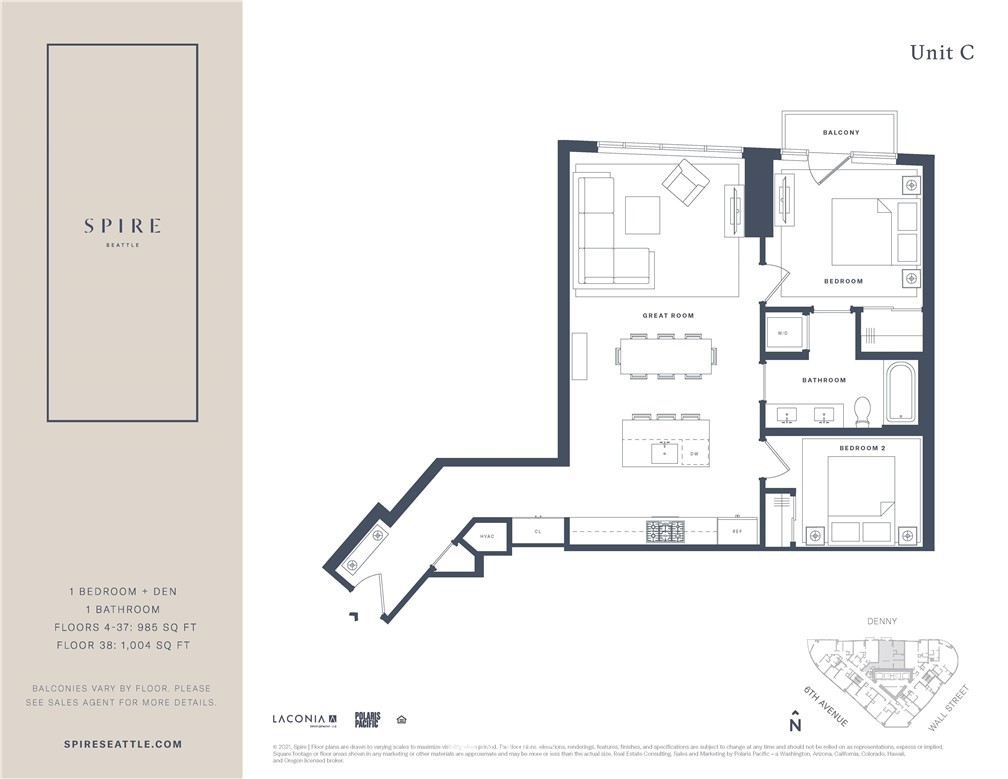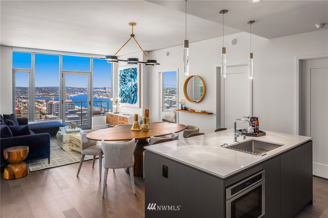Spire Condominiums, at the intersection of Belltown, South Lake Union, and Denny Triangle, offers iconic Space Needle and water views unlike any other new construction building in Seattle. This coveted location allows its residents easy access to a bevy of retailers, restaurants and bars, technology centers, arts, outdoor recreation, and entertainment. Rising high at 41 stories of incredible living spaces that include this 1 bed + Den home that offers Views! + a great kitchen, island, double vanity bathroom, large bonus room for office or guest room, and parking. Amenities include concierge, rooftop fitness center and pet run, 40th floor clubroom, dining, terraces, co-working space, private conference room, theater, movement studio + more.