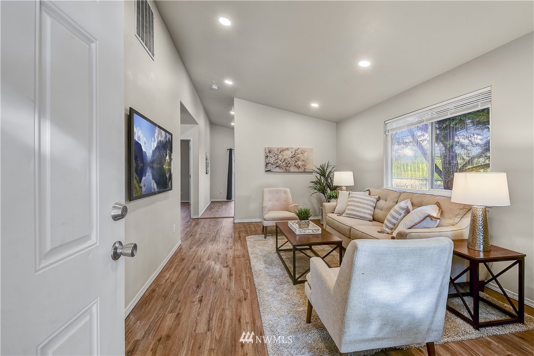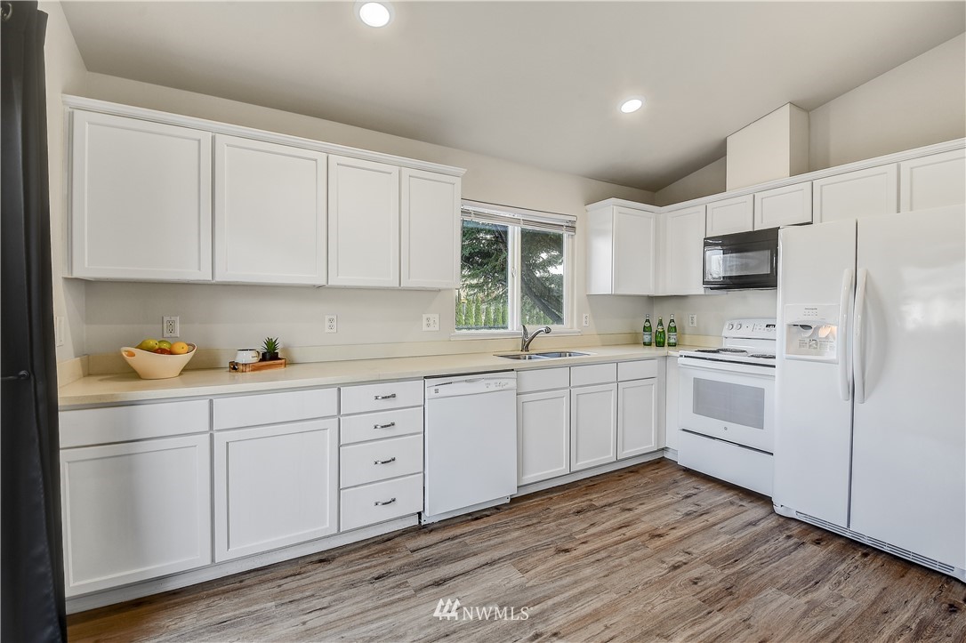 Welcome to this Beautiful, Move-in Ready 2 BR, 1 BA Rambler. Enter through the charming covered front porch into a light filled room with vaulted ceilings. New Luxury Vinyl Plank flooring throughout. Spacious kitchen with plenty of cupboards, counter space and eating area. Fully fenced backyard and patio for relaxing & entertaining. Gas heat and hot water tank. All appliances included. Attached garage. Located at the end of the street, providing additional privacy. Walking distance to all the great shopping, restaurants and amenities offered in Smokey Point. Just minutes to I-5.