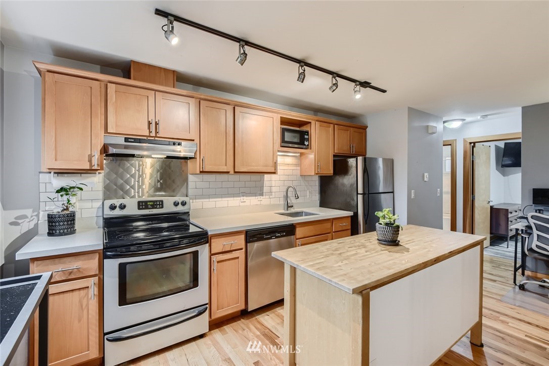 Don't miss this opportunity to own an elegantly updated and move-in ready condo in the heart of Magnolia. No rental cap! Recent kitchen upgrades include quartz counters, subway tile backsplash, large undermount sink, new engineered hardwood floors in bedroom, new tile floor in bathroom with quartz vanity and tile shower surround. Over 80 sq. ft. of storage in basement. 1 designated parking space with plenty of additional street parking. HOA fee includes water, sewer, garbage, exterior maintenance, landscaping, insurance, and more. In-unit laundry. All appliances stay with the home. Kitchen island stays too. Close to shopping, restaurants, Discovery Park, Fisherman's Terminal, golfing, and more!