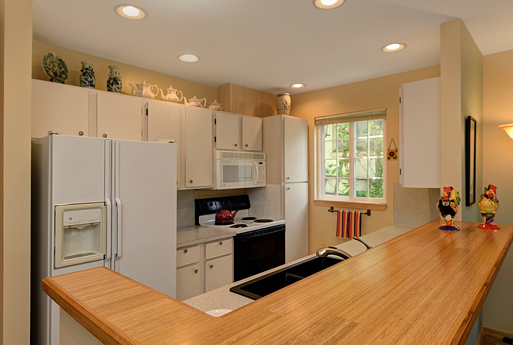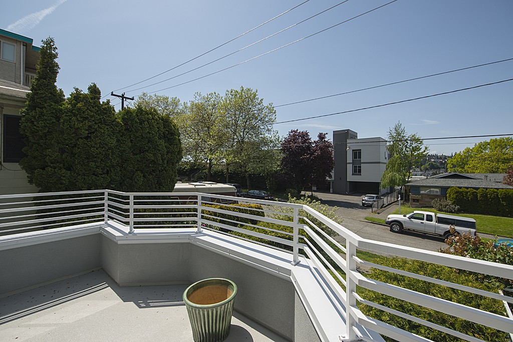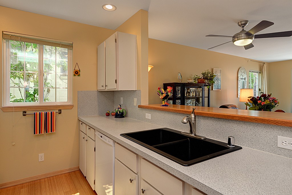 Incredibly spacious end-unit condo filled with natural light & westerly outlook. Enjoy open kitchen w/bamboo floors & unique bamboo counter. Two generous bdrms including master suite w/attached bath, and bonus Sun room perfect for home office or crafts. Freshly painted w/designer colors. Tons of closet space. This Boutique 6-unit building offers secure gar pkg + extra storage space. Conveniently located w/easy access to all Queen Anne has to offer, moments away from Downtown, Ballard & Fremont.