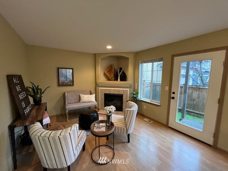 This end unit is light, bright, and spacious! 3 good sized bedrooms (2 with walk-in closets) 2 full baths (1 in Primary) and a utility room on the upper floor, provide lots of extra space. Open layout with soft tones and warm gas fireplace, and 1/2 bath on the main. Loads of great storage space thru-out, 2-car garage and sweet fenced backyard. All this in a terrific community, super close to Fabulous shopping and restaurants!