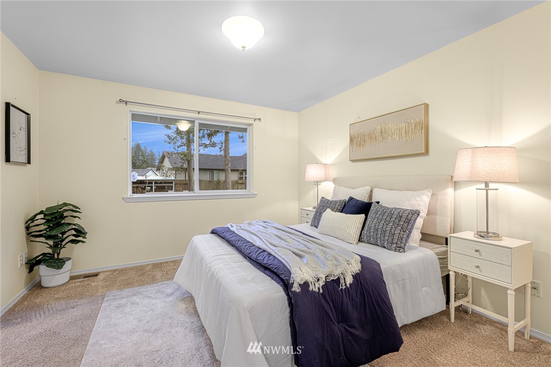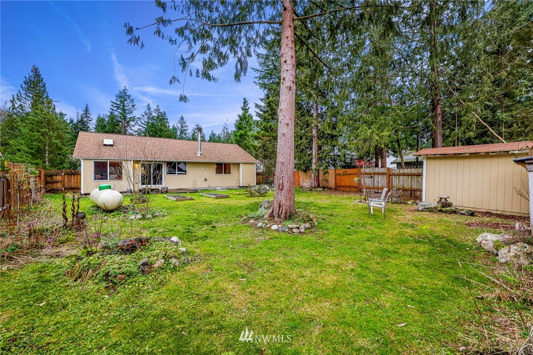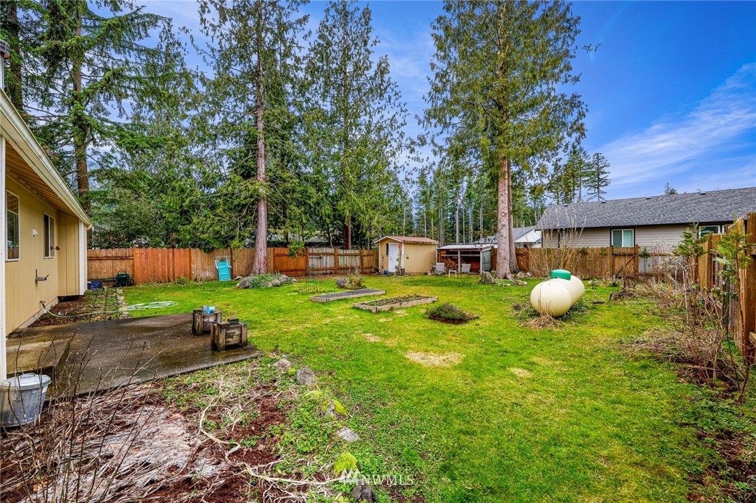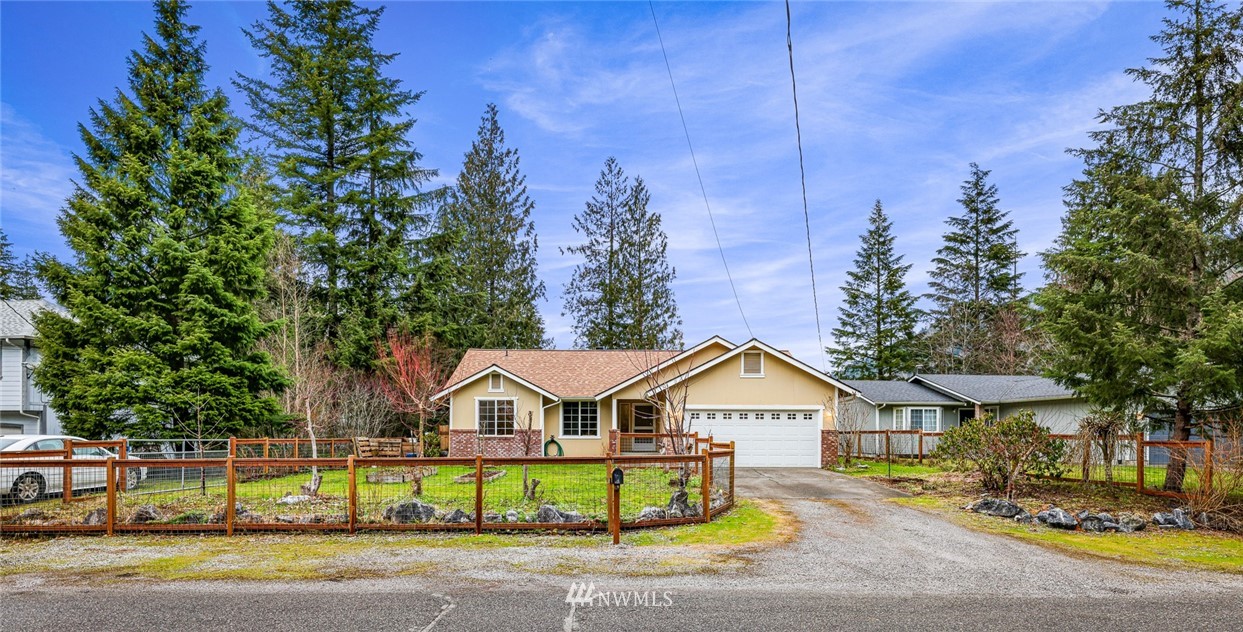 This lovely 3 bed/2 bath home is located in a quiet and desirable neighborhood on a dead-end street near a new housing development. It has vaulted ceilings, a kitchen island, ample pantry space, cabinet storage and a rare green belt along the side of the property. It also has a spacious fully fenced back yard with beautiful mature trees, gardening space, fruit trees and 2 outdoor sheds. There is also newly planted trees along the fence line that will provide even more privacy as they grow. The attached 2 car garage also has attic space access for more storage. Beautiful view of the forested mountain. Lots of flowers to enjoy this spring. This house won't last long at this price! Reviewing all offers on Monday February 14th after 5:00pm.