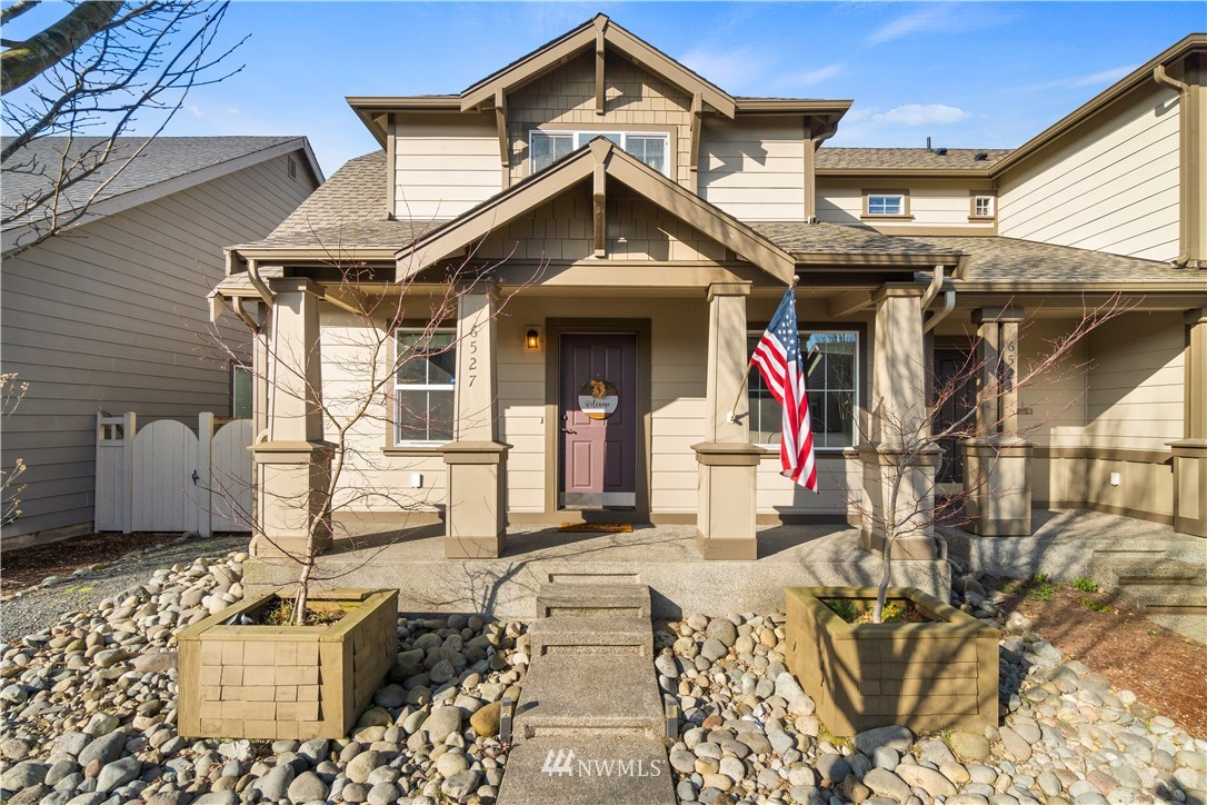 Located in the desirable Horizon Pointe neighborhood, this stunning townhome feels brand new! With a bright, open floor plan this home is perfect for entertaining with its over-sized kitchen island that flows into your main living areas with large windows letting in all the natural light. Adorable powder room downstairs while up stairs you'll find TWO spacious primary suites with ensuite bathrooms & walk-in closets. The laundry room is conveniently located upstairs. Fully fenced with low maintenance backyard & attached garage parking! Quiet community features children's park, athletic fields & is walking distance to nearby schools. Just mins from shopping, restaurants & popular Lacey golfing, this home feels like quiet, small town living!