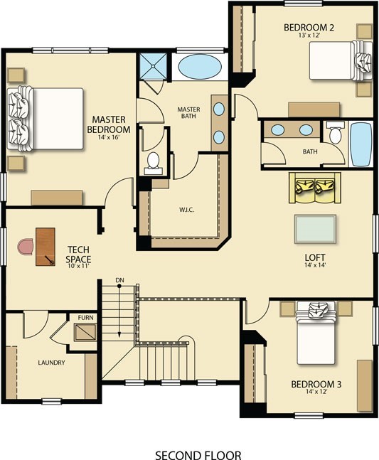 Full of possibilities & potential, The Bainbridge features an entirely separate living space- perfect for extended living, live-in caregivers, or even an added income source. Expansive living space on the first floor is perfect for entertaining, and the 3-car garage is an ideal space for not only your cars, but maybe even a shop or storage area. Great common areas fit for an office or TV room, as well as 2 extra bedrooms, and Master Suite w/ luxurious bathroom & massive walk in closet.