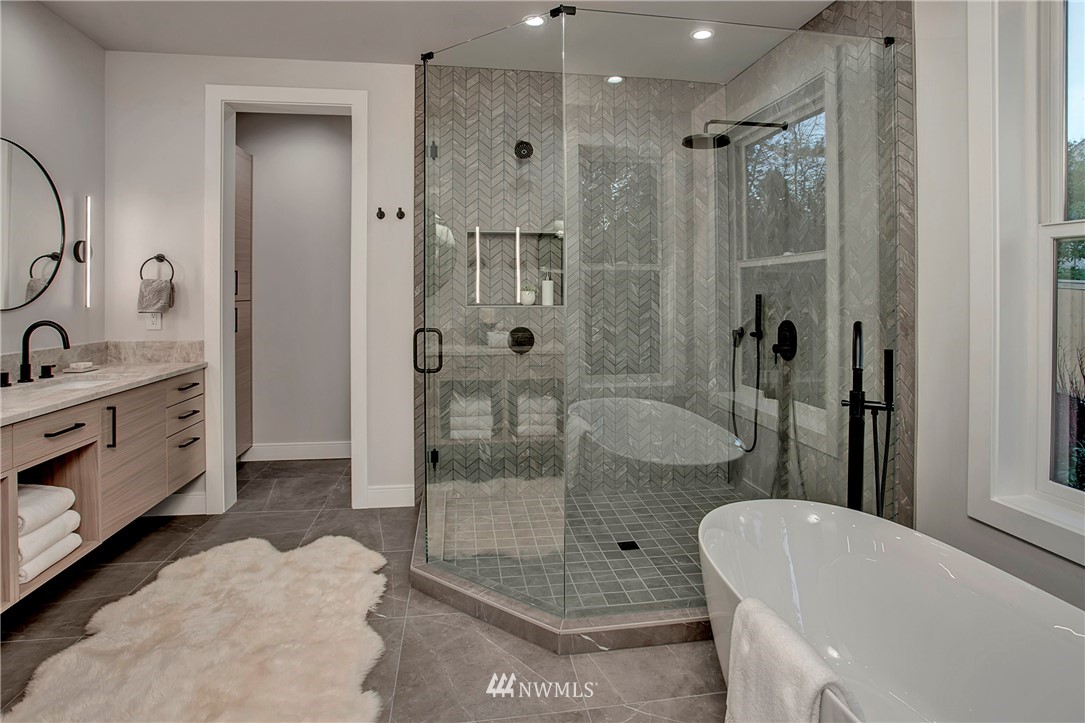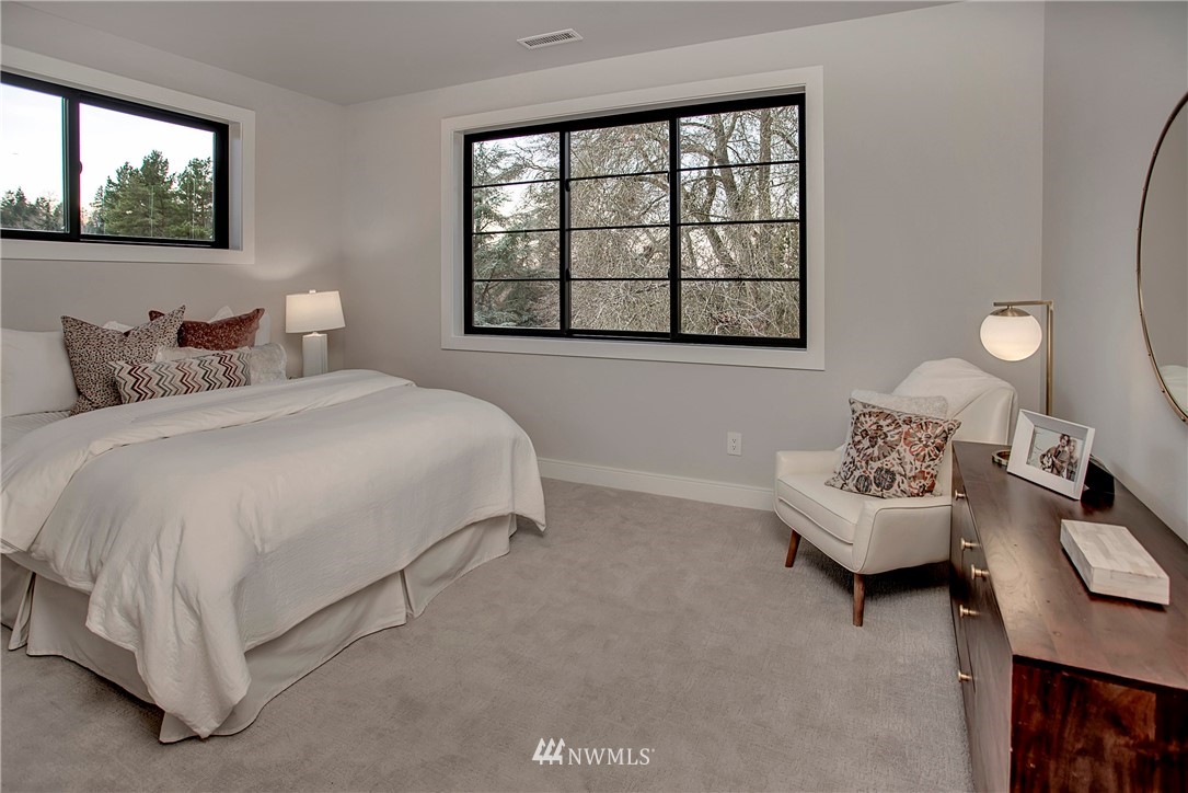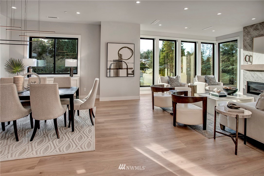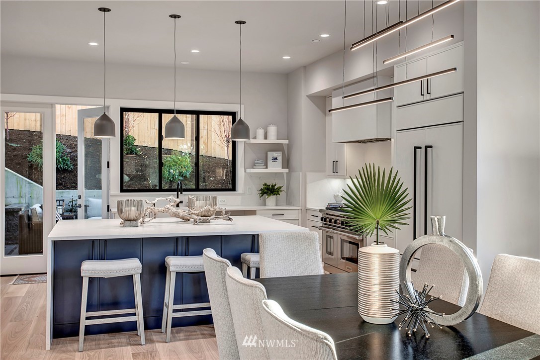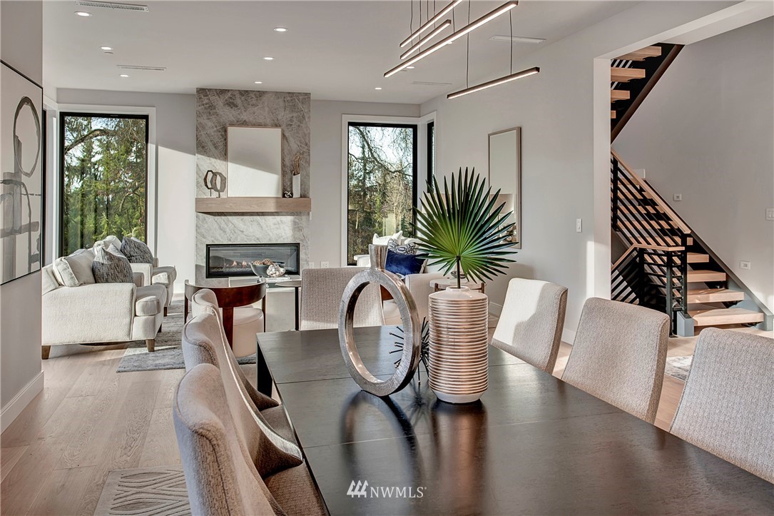 NW modern meets Scandinavian contemporary in this new construction 5BR/5 Bath + office. Great room is appointed with 10' ceilings, white oak floors, a large wall of windows for year-round natural light, and a striking floor-to-ceiling fireplace. Top of the line finishes from Signature Hardware, Moen Align, Kholer, Brizo Odin, and Nameeks. Modern kitchen with integrated appliances, giant white slab countertop for ample entertaining, 33" farmhouse sink, 48"-6 burner Wolf range, Subzero fridge. Designer finishes throughout, including a stylish powder room & primary bath. 4BRs together on the upper floor. Legal ADU/Guest Suite with 2nd kitchen -use as 5th BR, Bonus Rm, or visiting relatives or a rental. Near I-90, bike trail, JCC & Shore Club.