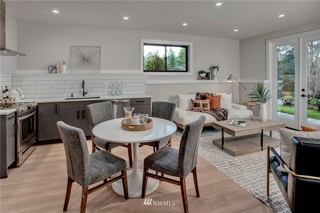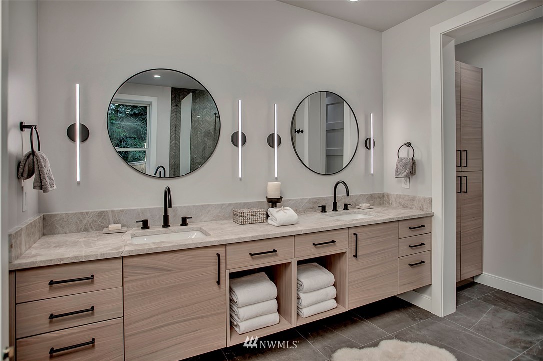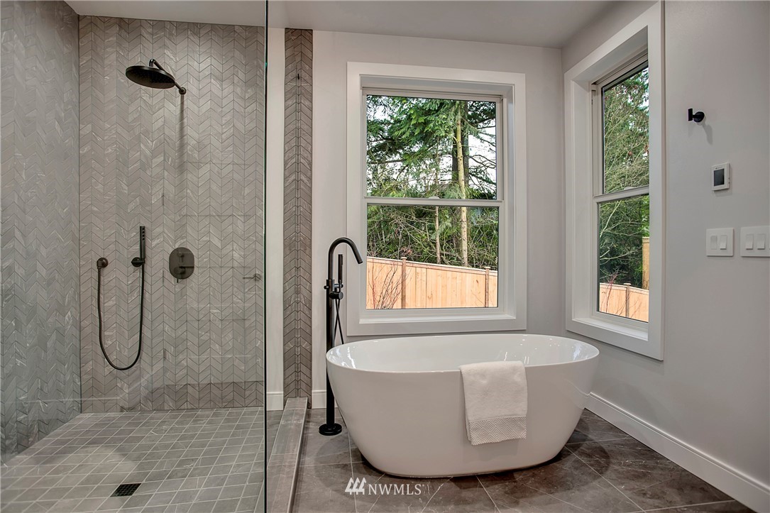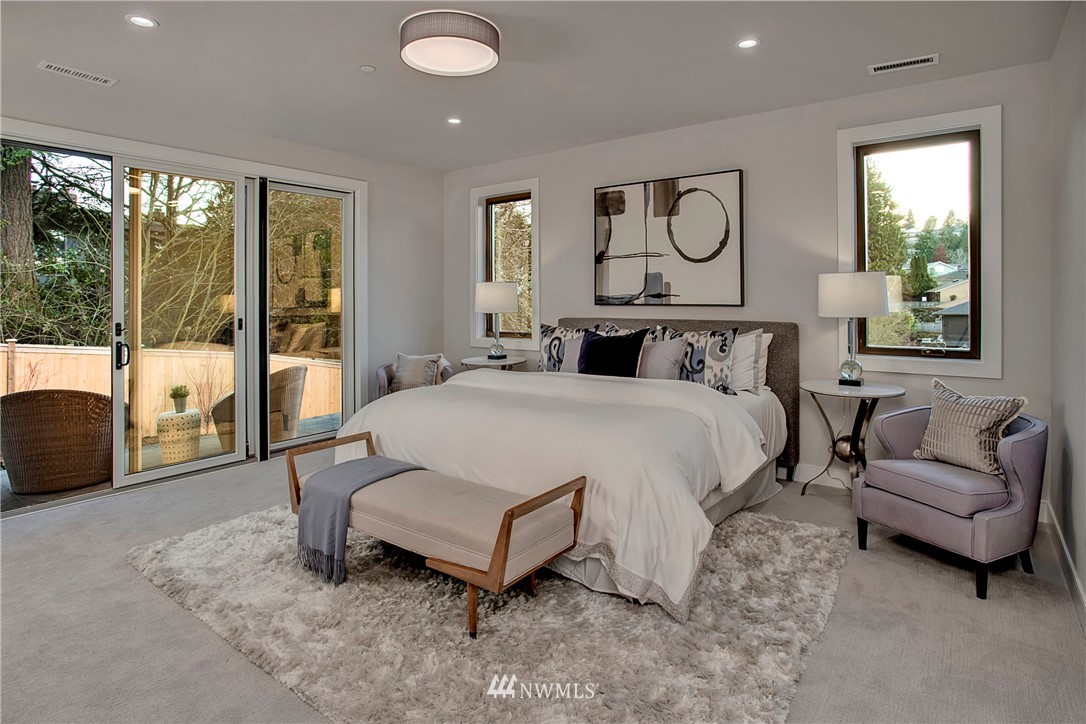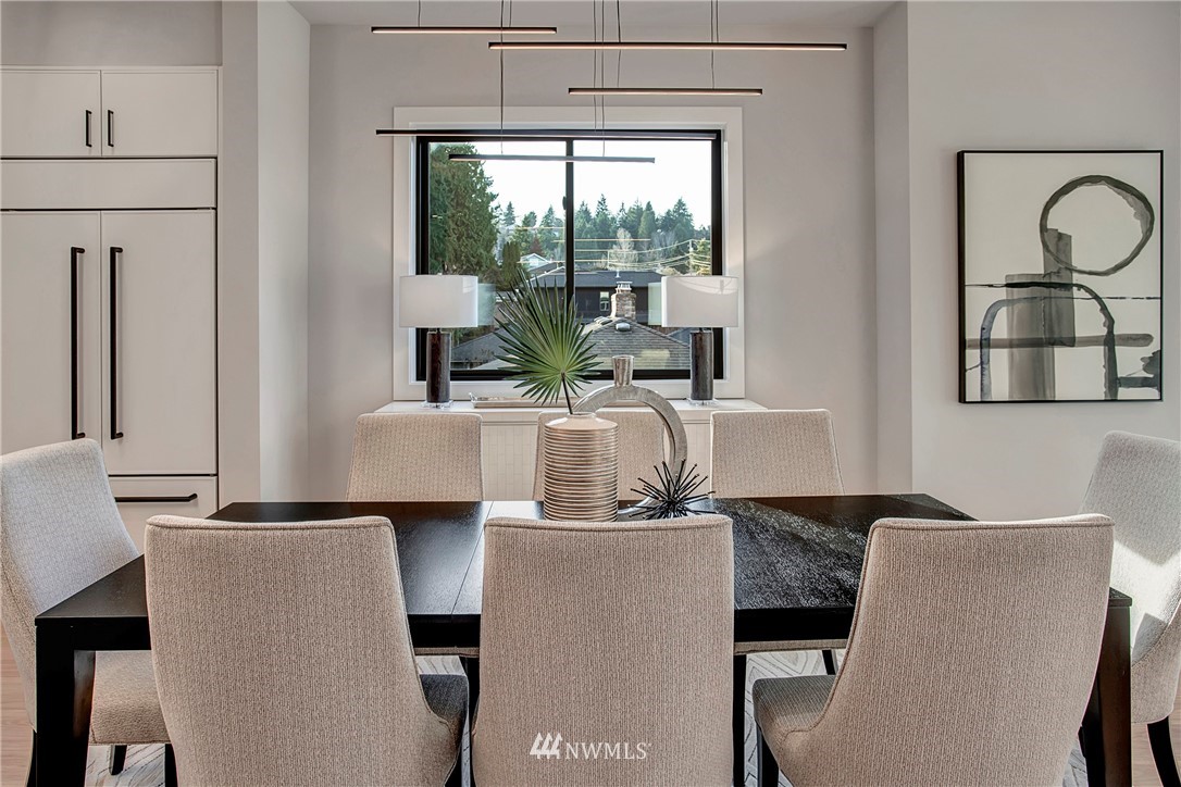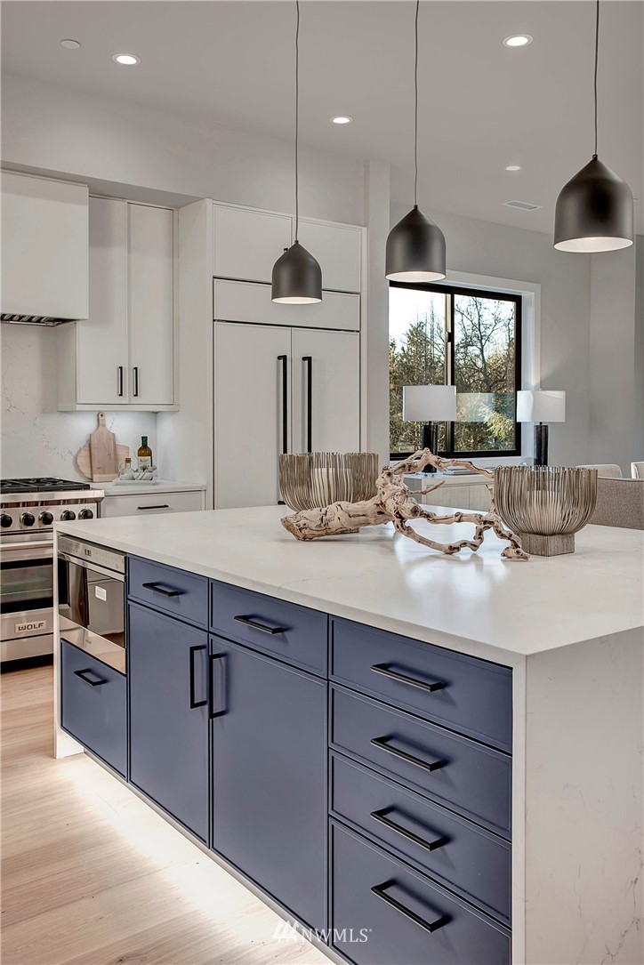 NW modern meets Scandinavian contemporary in this new construction 5BR/5 Bath + office. Great room is appointed with 10' ceilings, white oak floors, a large wall of windows for year-round natural light, and a striking floor-to-ceiling fireplace. Top of the line finishes from Signature Hardware, Moen Align, Kholer, Brizo Odin, and Nameeks. Modern kitchen with integrated appliances, giant white slab countertop for ample entertaining, 33" farmhouse sink, 48"-6 burner Wolf range, Subzero fridge. Designer finishes throughout, including a stylish powder room & primary bath. 4BRs together on the upper floor. Legal ADU/Guest Suite with 2nd kitchen -use as 5th BR, Bonus Rm, or visiting relatives or a rental. Near I-90, bike trail, JCC & Shore Club.