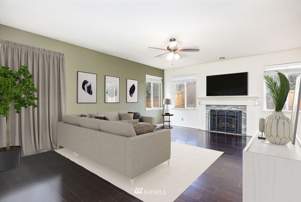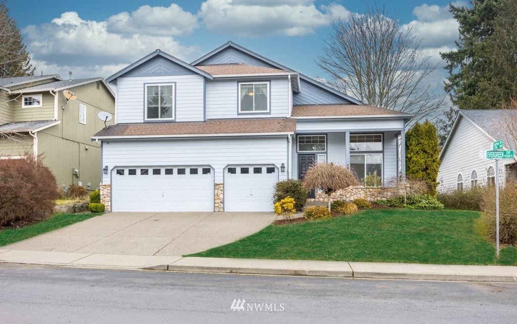Very Spacious 5 Bedroom home with tons of potential. This home features cathedral ceilings thru-out both levels, chefs kitchen with eat in dining area and pantry. Large dining/living great room make for a grand entry to the home. Large family room features a gas fireplace. One bedroom on the main can be used for a den or home office. Primary bedroom is large enough for a sitting area and features a walk in closet and ensuite 5 piece bath. Home is wired for back up generator and has tons of space for storage. Large fully fenced backyard and covered patio for entertaining and a 3 car garage. All of this within walking distance to schools, shopping and highway 410 and the new Costco.