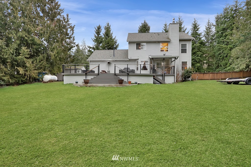 Turn Key home on park-like 1.26 acres in Mirada Estates! The front yard contains mature landscaping & ample parking. The fenced-in back yard, with additional parking has killer TREX deck w/ built-in gas fire pit & additional gas hookup for grill/heater, a large flat grassy area lined with trees, paved and covered RV parking. This bright, airy 4 bedroom, 2.5 bath home has been tastefully updated with gorgeous hardwoods, gas fireplace with custom tile surround, and stainless steel appliances . Kitchen has plenty of storage, an eating bar & pantry and is updated with granite countertops. Primary suite includes 5-piece bath and walk-in closet. If you're looking for quiet country living with plenty of room to roam, you've found it!