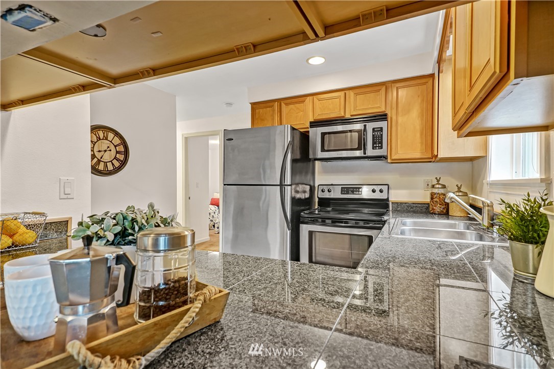 Welcome home to this accommodating ENTRY LEVEL 2 bedroom, 1 bath condo minutes from the heart of charming downtown Snohomish. This cozy home features stainless steel appliances, brand new water heater, picturesque view of courtyard and trees, eating bar and two comfortably sized bedrooms. Full size, stackable washer and dryer in the unit. Walking distance to the aquatic center, centennial trail, local schools and bus lines. Lots of retail, restaurants and antique stores in the historic waterfront town just minutes away. Come have a look!