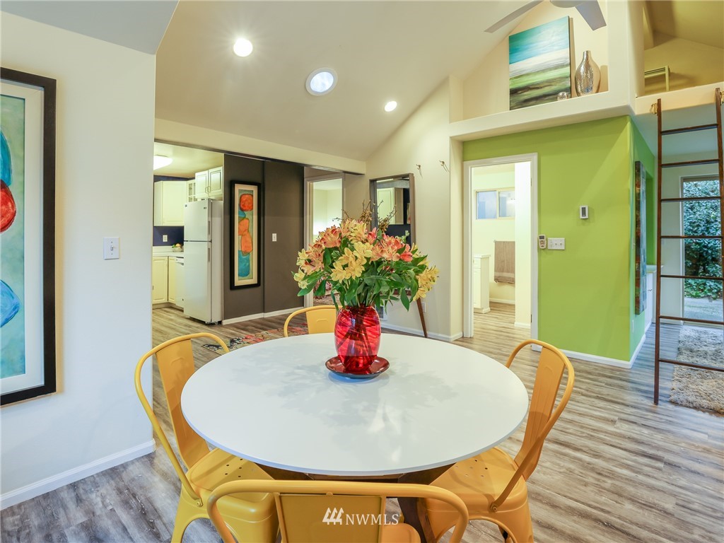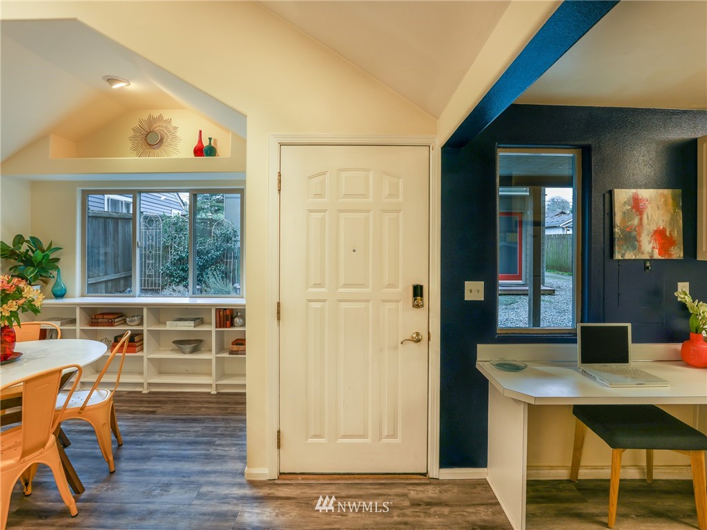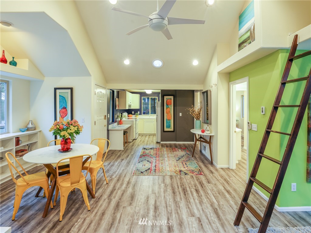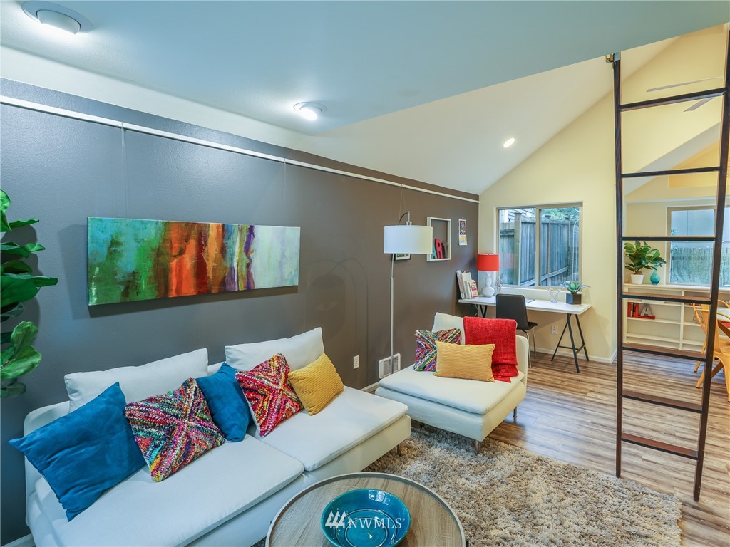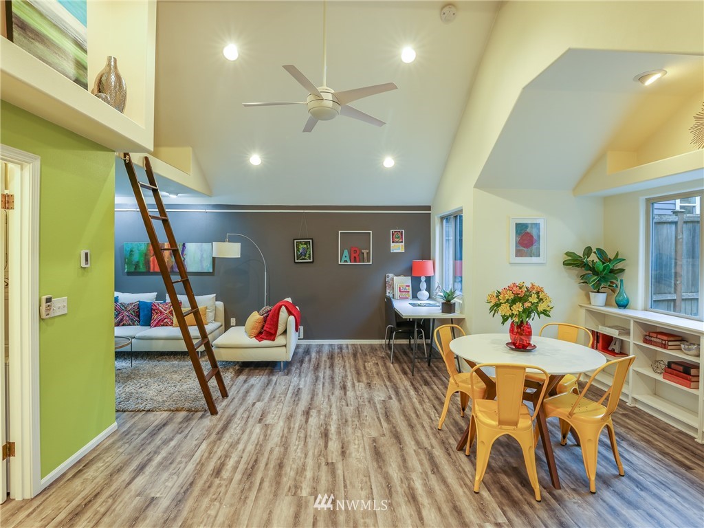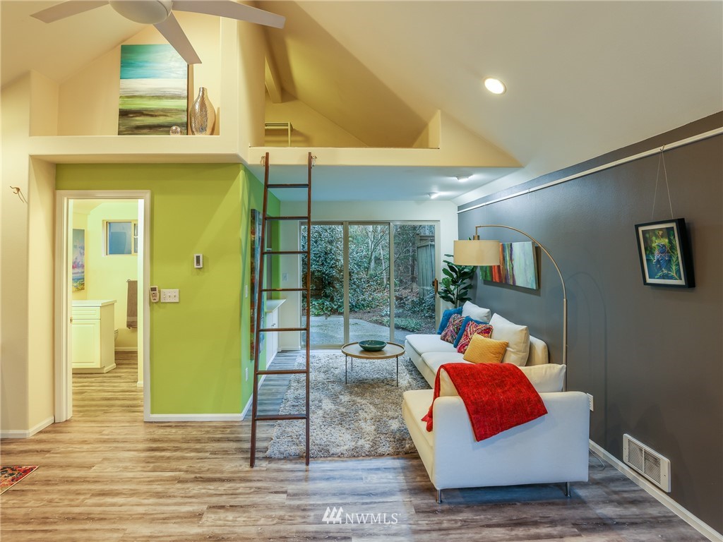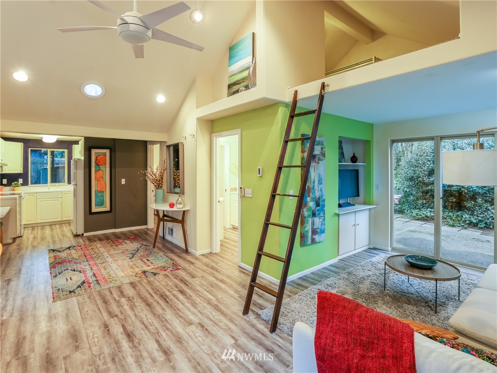 Nestled amongst the trees, this home is a true urban retreat at the edge of the woods of Longfellow Creek Park. Soaring ceiling, sunny nooks and a generous patio help create a most efficient feeling of space and privacy. This extremely well maintained home was remodeled (all plumbing and electrical) to fit today’s living with an open floor plan, allowing room to entertain, relax and restore. The primary bedroom comes with a spacious en'suite bathroom. Main room has a clever loft space for guests, reading or storage. A terrific condo alternative, abounding with greenery on a plot that’s rare to find AND only 1 mile from the soon to be RE-OPENED West Seattle Bridge. Welcome home!