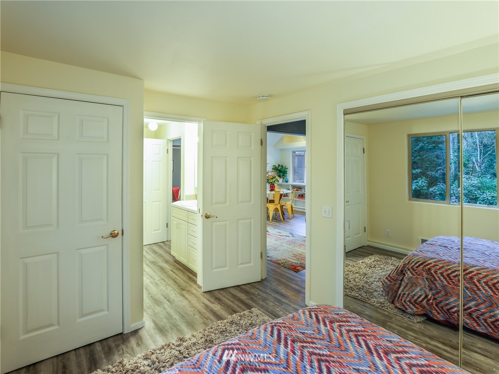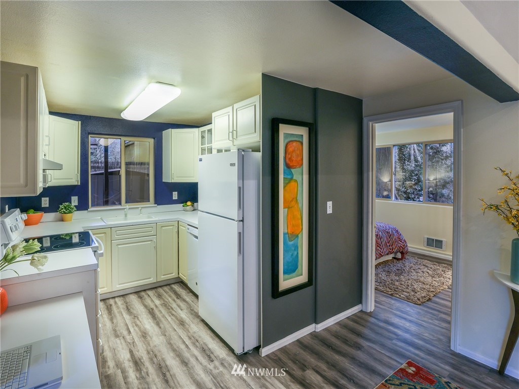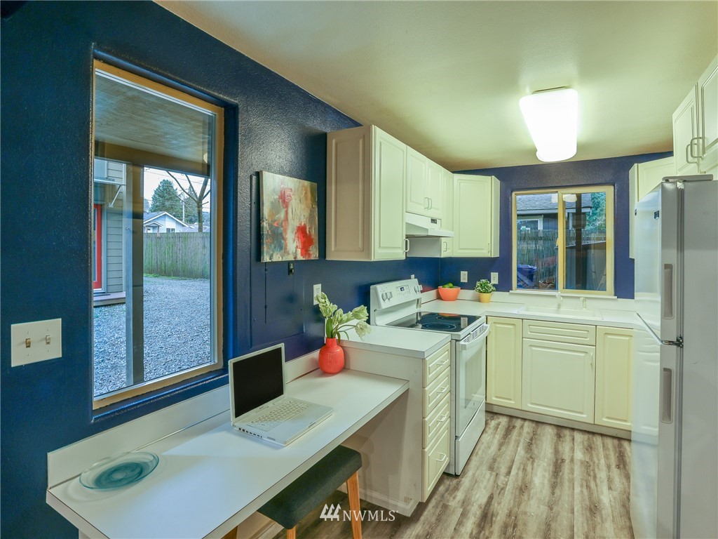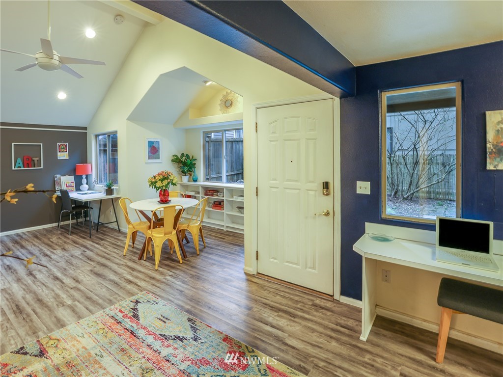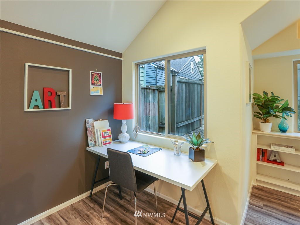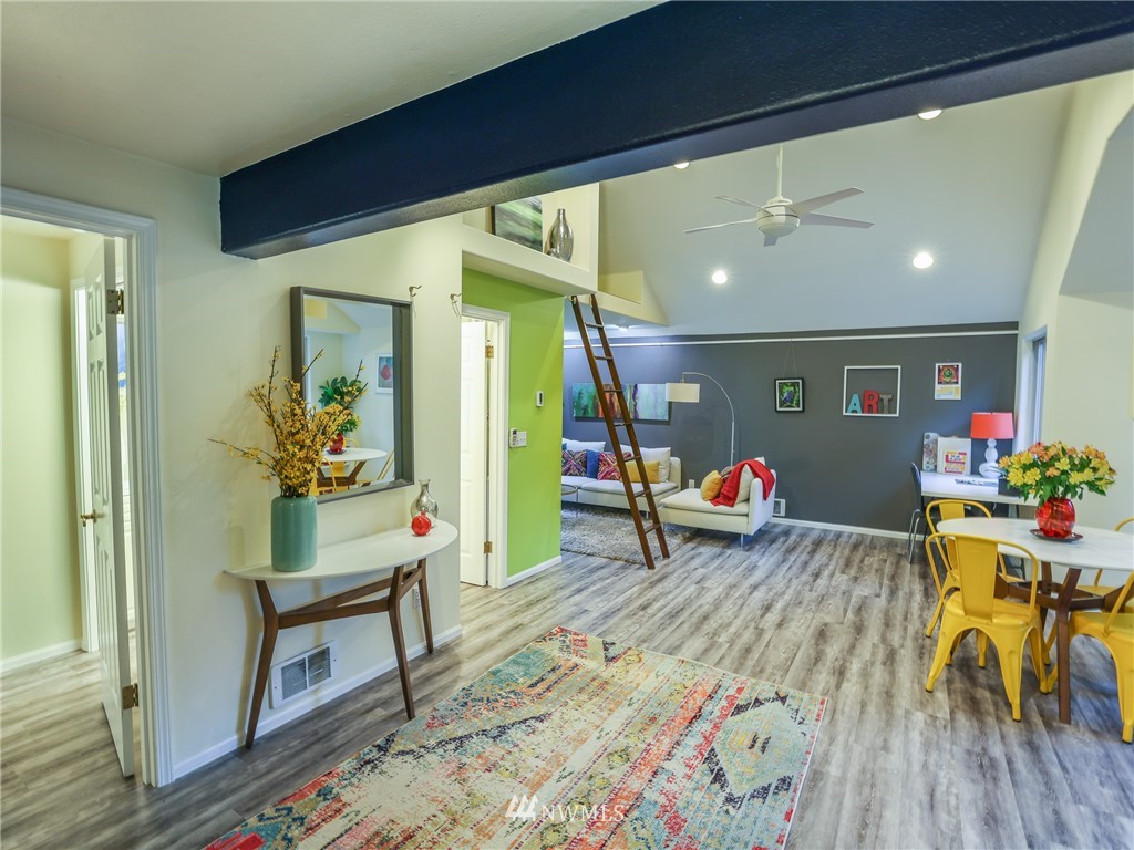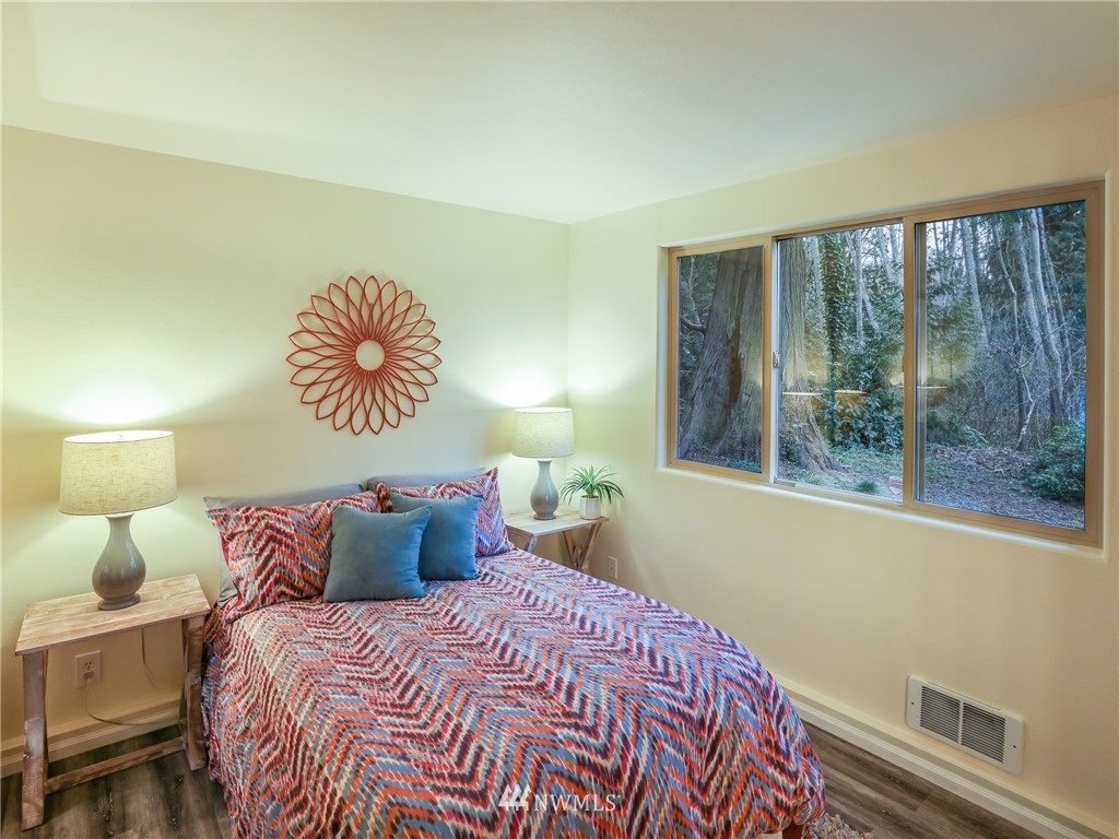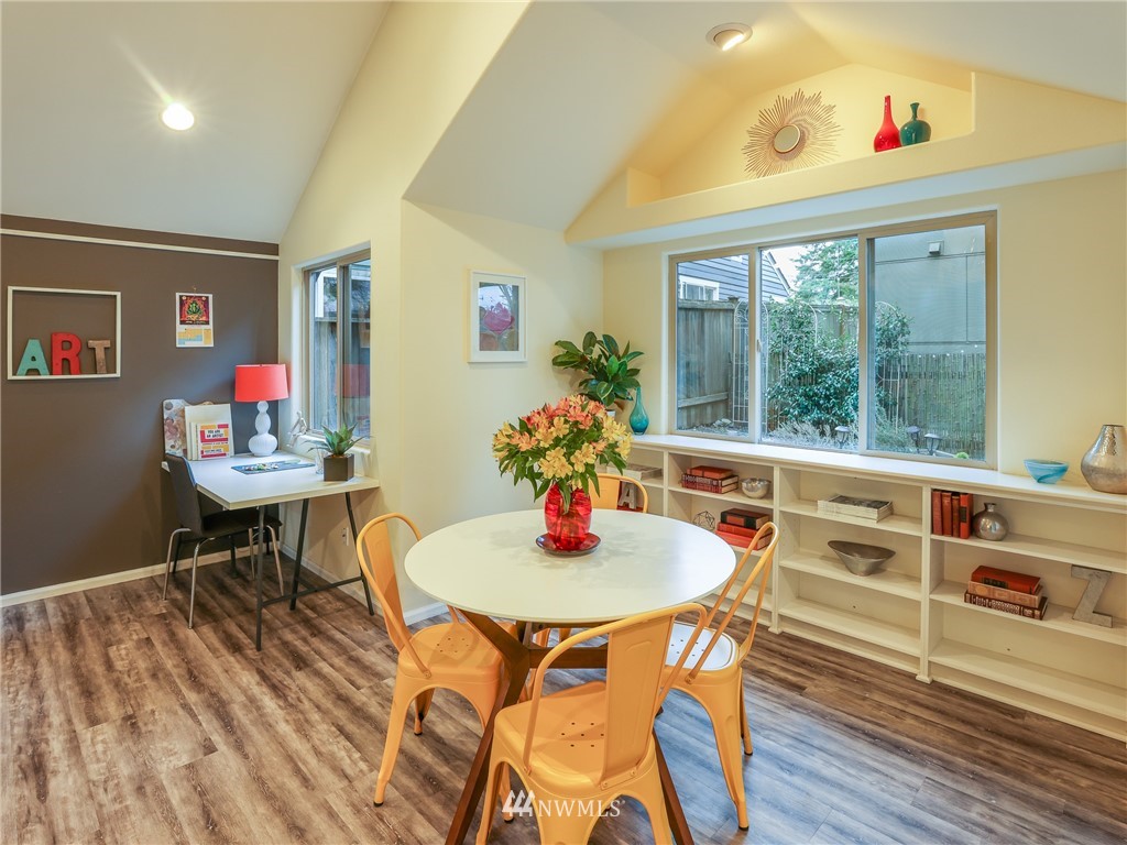 Nestled amongst the trees, this home is a true urban retreat at the edge of the woods of Longfellow Creek Park. Soaring ceiling, sunny nooks and a generous patio help create a most efficient feeling of space and privacy. This extremely well maintained home was remodeled (all plumbing and electrical) to fit today’s living with an open floor plan, allowing room to entertain, relax and restore. The primary bedroom comes with a spacious en'suite bathroom. Main room has a clever loft space for guests, reading or storage. A terrific condo alternative, abounding with greenery on a plot that’s rare to find AND only 1 mile from the soon to be RE-OPENED West Seattle Bridge. Welcome home!