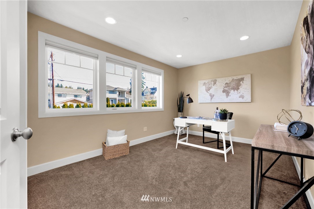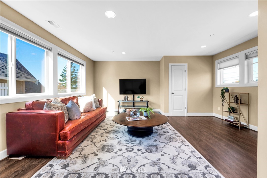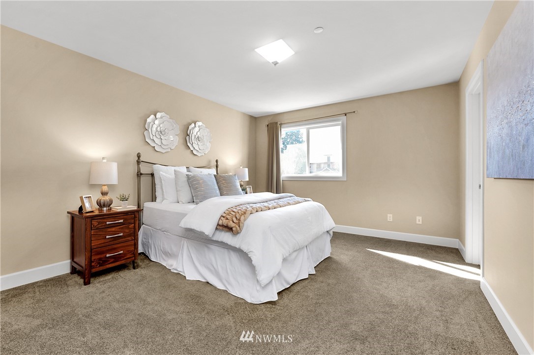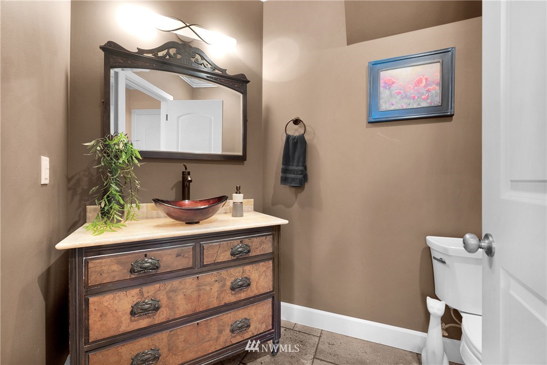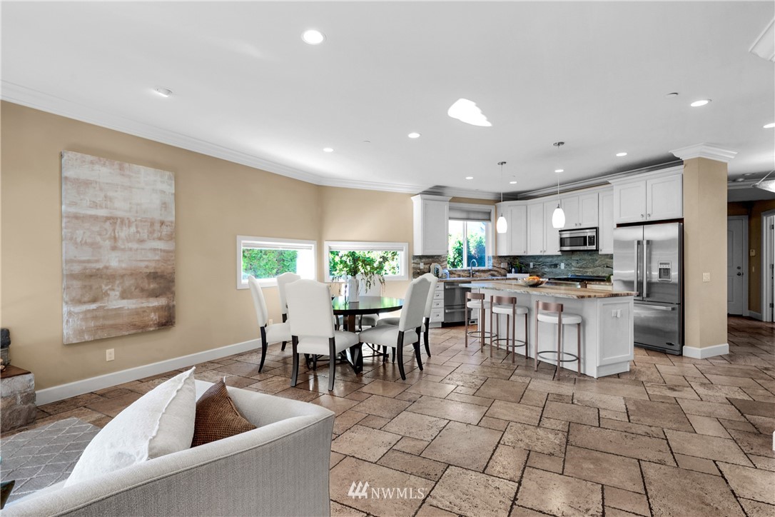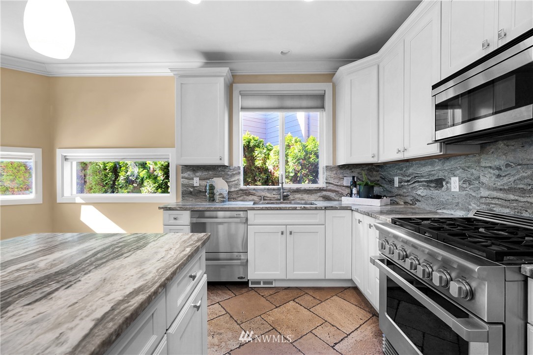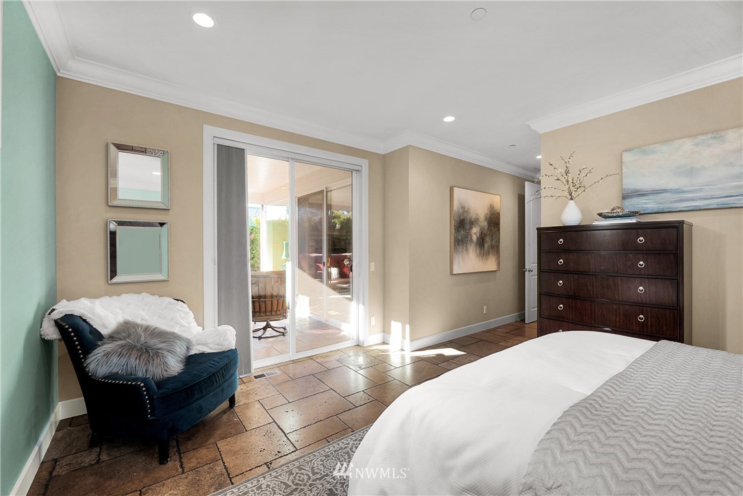 Modern craftsman located just a gentle stroll from downtown Edmonds. Featuring a grand presence as you approach its front french doors. Upon entering you are welcomed by wall to wall travertine floors, a grand room with well presented stone fireplaces both inside and on the covered patio. Gourmet style kitchen. To compliment the home further, it offers a main floor suite with custom walk in closet. In addition, to all of the main floor, your guests will be impressed by the sprawling space in the upper floor that offers a second primary bedroom, sitting area, and even its own bonus/theater room. This home boasts every amenity you would need to be the proud host of any type of gathering. When you are here, you are home.