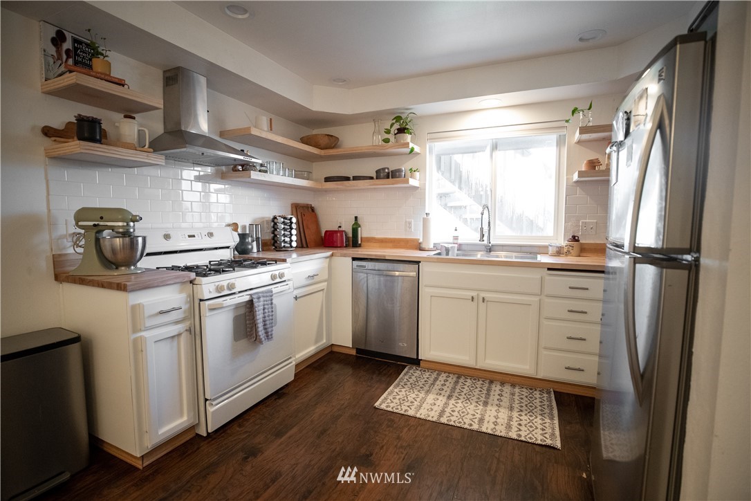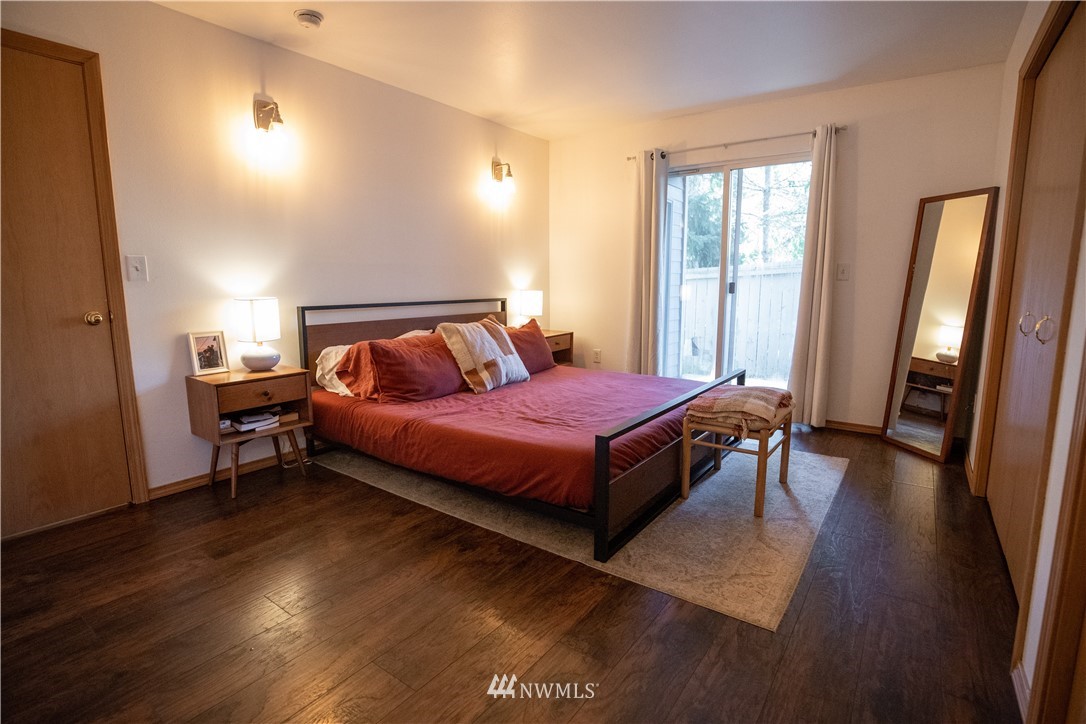 Nicely updated condo in Lake Stevens school district is located near North Cove Park and swimming beach, just around the corner from the elementary and middle school and right next to the Lake Stevens library. Large primary bedroom features sliding glass doors leading you out to a covered back patio with storage closet. Kitchen features gas cooking and stainless hood range. Washer and Gas dryer also stays! Individual garage plus one designated, unnumbered parking space directly in front of the condo unit.