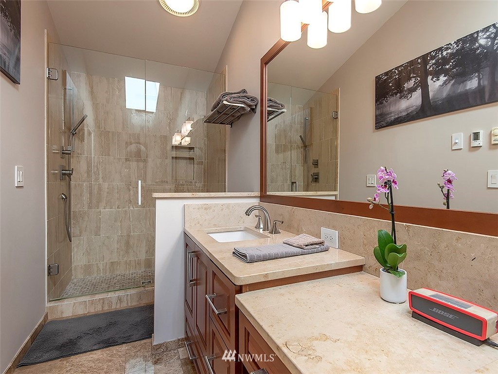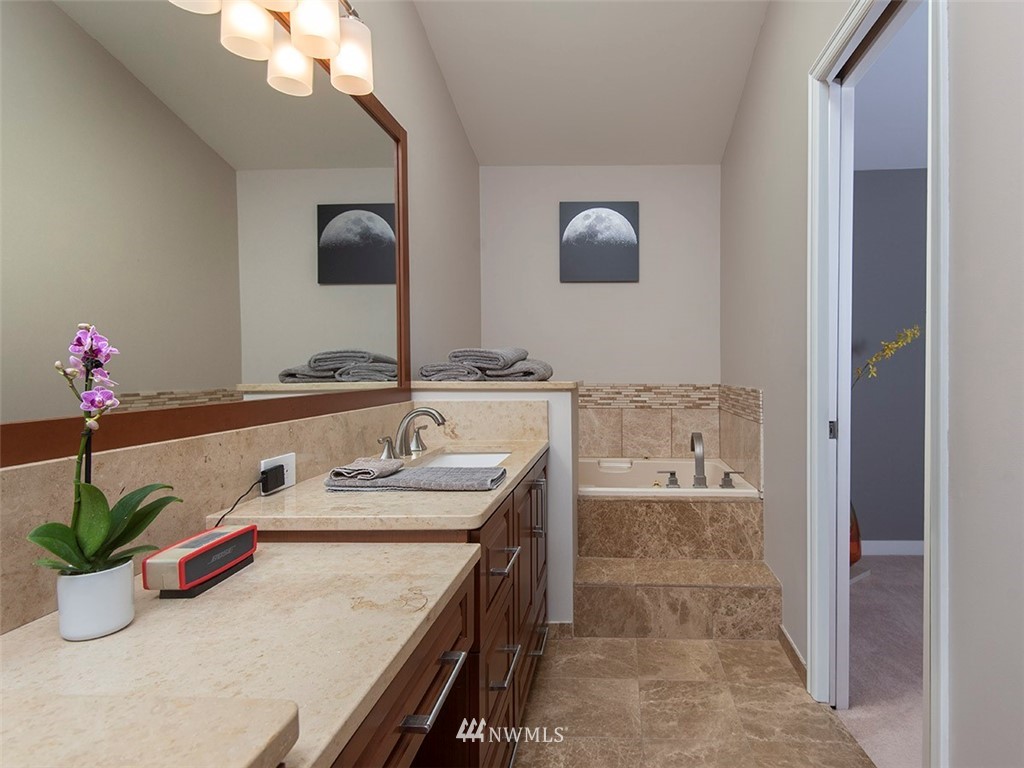 Pride of ownership is evident from the moment you arrive at this beautiful three bedroom, two bath, 2295 sq. ft. updated home. On the main you are greeted by a stone entry with a inlaid Rose Compass, gleaming hardwoods, vaulted ceiling, skylights and living room with a gas fireplace. From the living room walkout to a deck ready to entertain and enjoy the private backyard. Beautiful eat-in kitchen, two bedrooms (one being used as a media room), 3/4 bath and laundry finish off the first floor. The secound floor is dedicated to a oversized master with gas fireplace, large walk-closet with added storage, office, and ensuite with a spa soaking tub. This home is made for entertaining with so many upgrade there are to many to list. A must see!