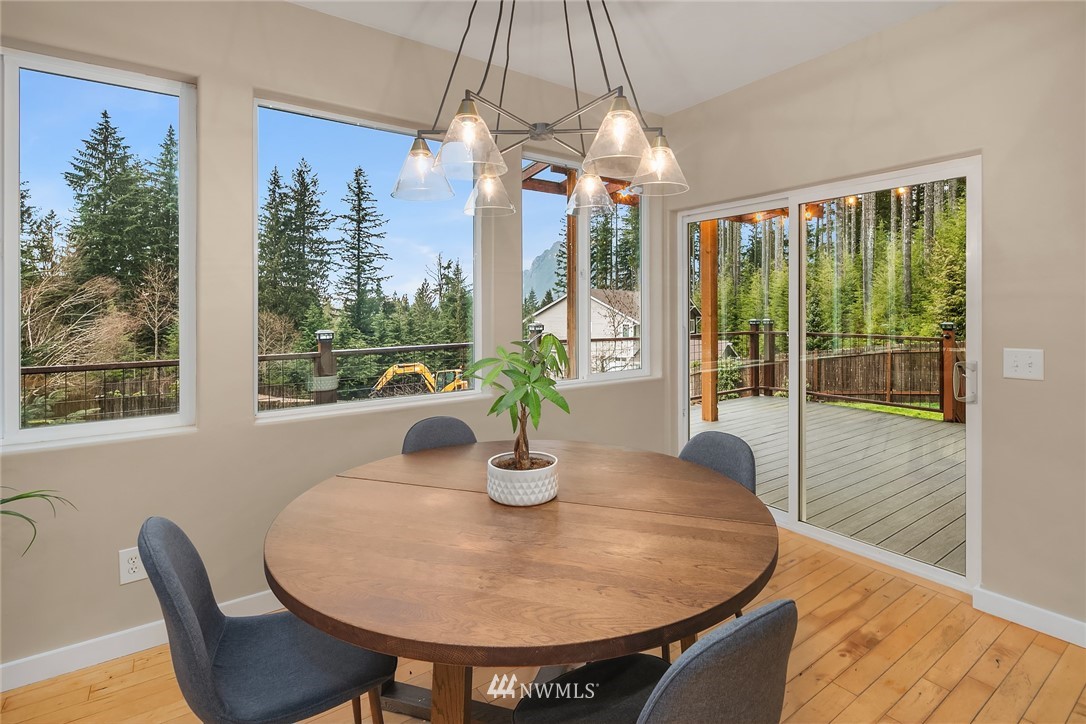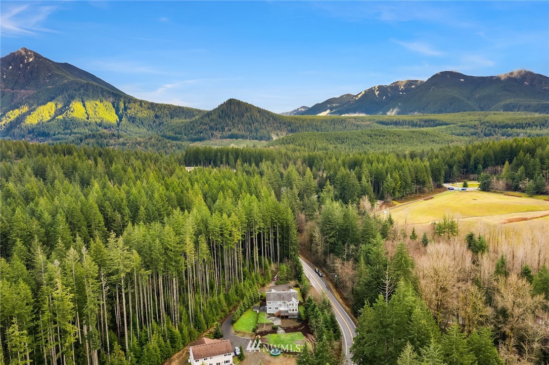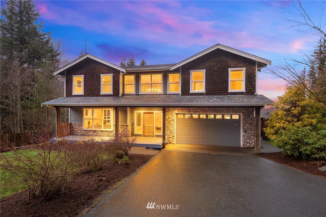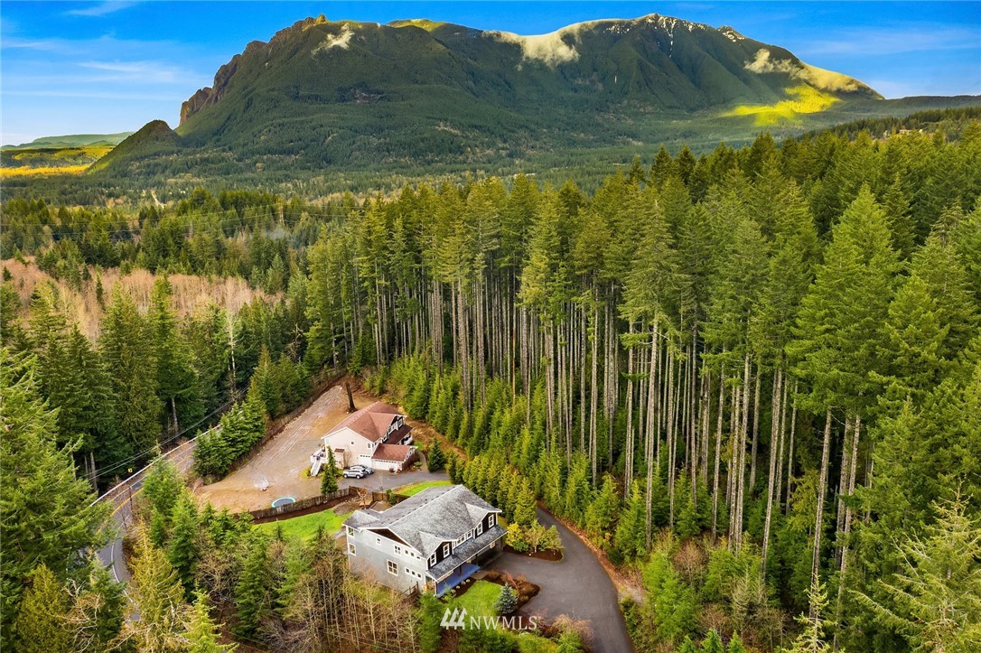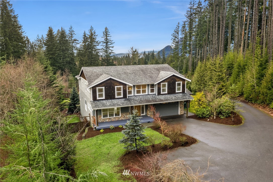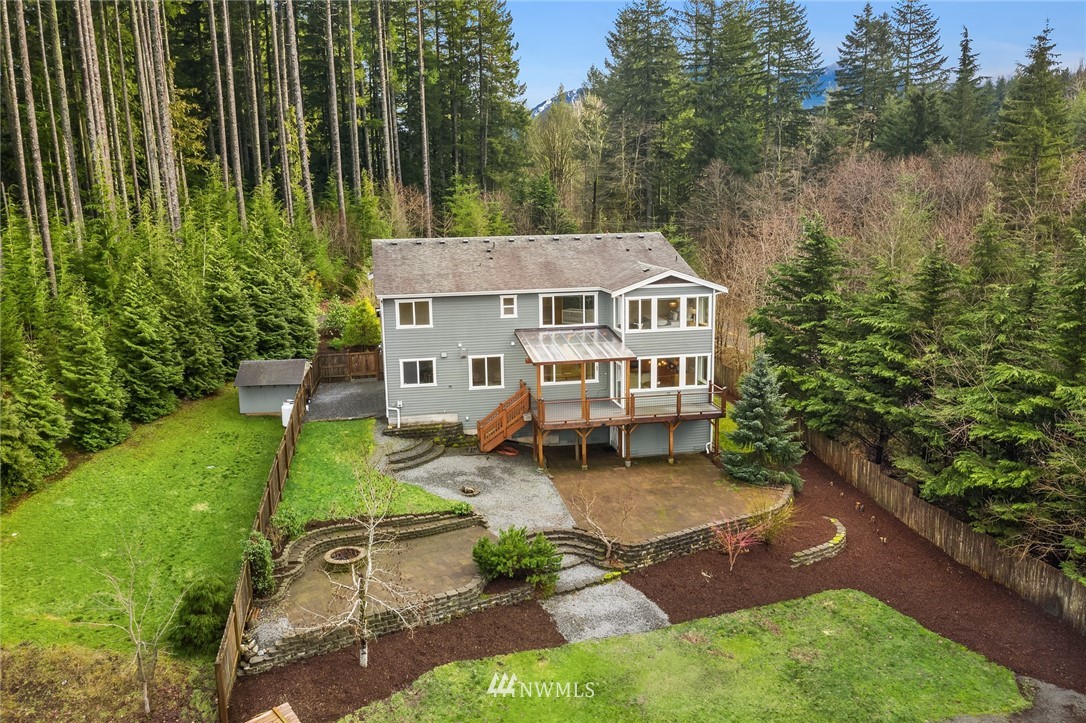 Stunning custom 2-story home on 3/4 acre lot in North Bend. This house boasts dramatic vaulted ceilings & oversized window/skylights in the great room, custom built-in cabinets & gas fireplace. Prepare gourmet meals in the chef’s kitchen w/breakfast bar, SS appliances & granite counters. Upper level has generous primary suite, walk-in closet, 5-piece bath w/soaking tub, bonus rm w/ample storage + den & 4 bedrooms. Dynamic views of Mt. Si from your covered porch w/composite decking overlooking multiple paved outdoor entertaining spaces w/fire pit and large, level backyard. A/C, 3 car garage, extra parking for RV or boat, tons of storage (walk in storage under home), Close to trails, Rattlesnake Lake, skiing & easy access to I-90.
