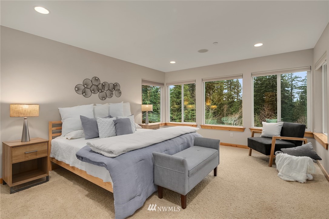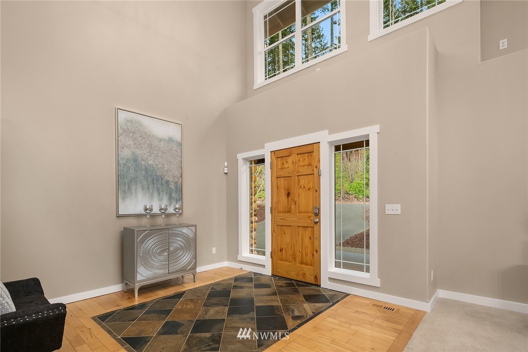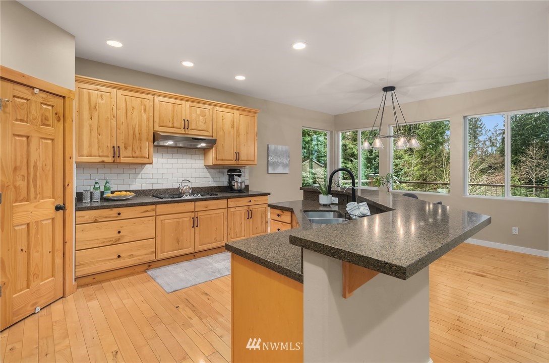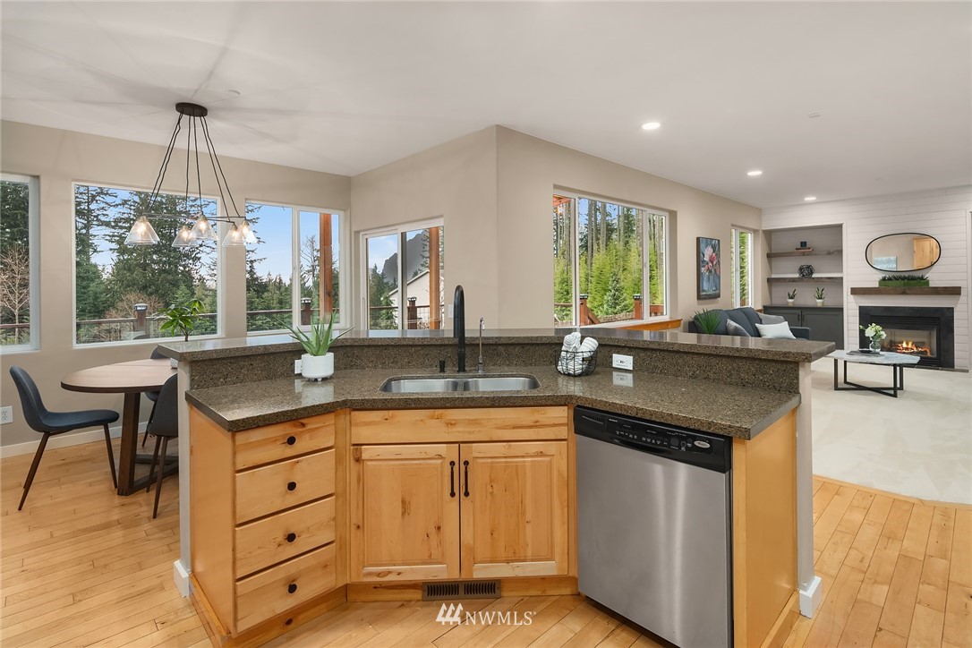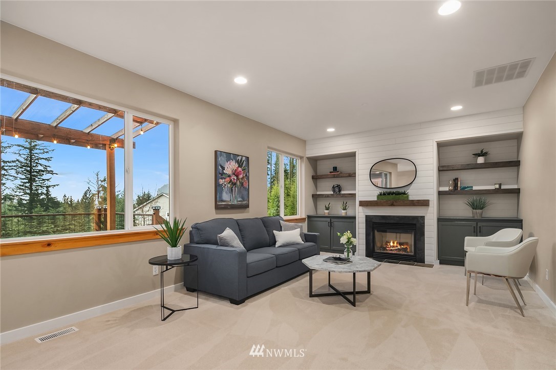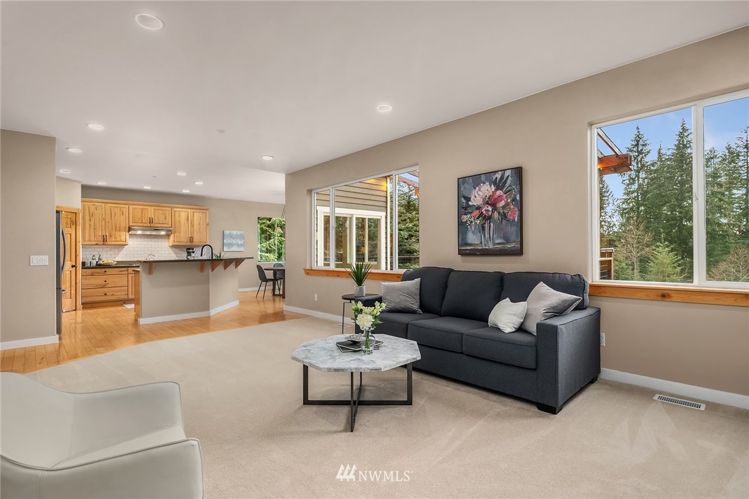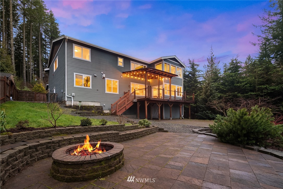 Stunning custom 2-story home on 3/4 acre lot in North Bend. This house boasts dramatic vaulted ceilings & oversized window/skylights in the great room, custom built-in cabinets & gas fireplace. Prepare gourmet meals in the chef’s kitchen w/breakfast bar, SS appliances & granite counters. Upper level has generous primary suite, walk-in closet, 5-piece bath w/soaking tub, bonus rm w/ample storage + den & 4 bedrooms. Dynamic views of Mt. Si from your covered porch w/composite decking overlooking multiple paved outdoor entertaining spaces w/fire pit and large, level backyard. A/C, 3 car garage, extra parking for RV or boat, tons of storage (walk in storage under home), Close to trails, Rattlesnake Lake, skiing & easy access to I-90.