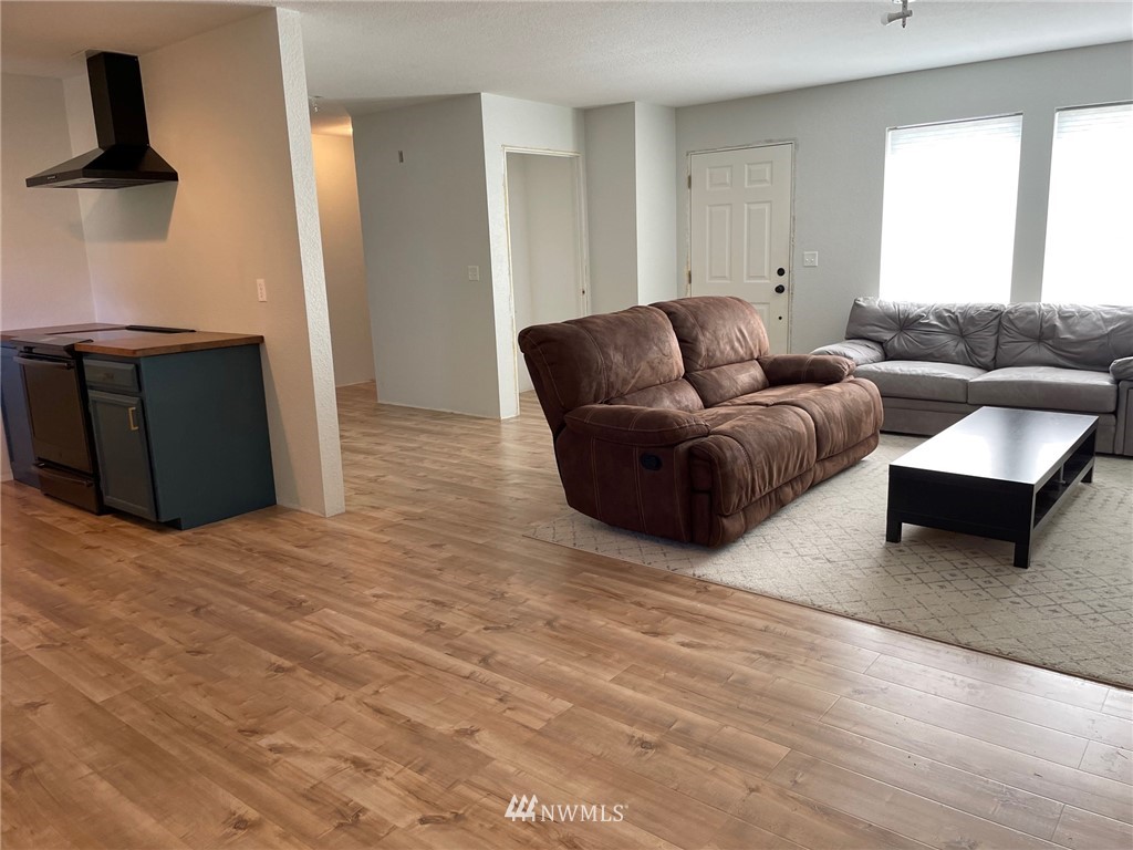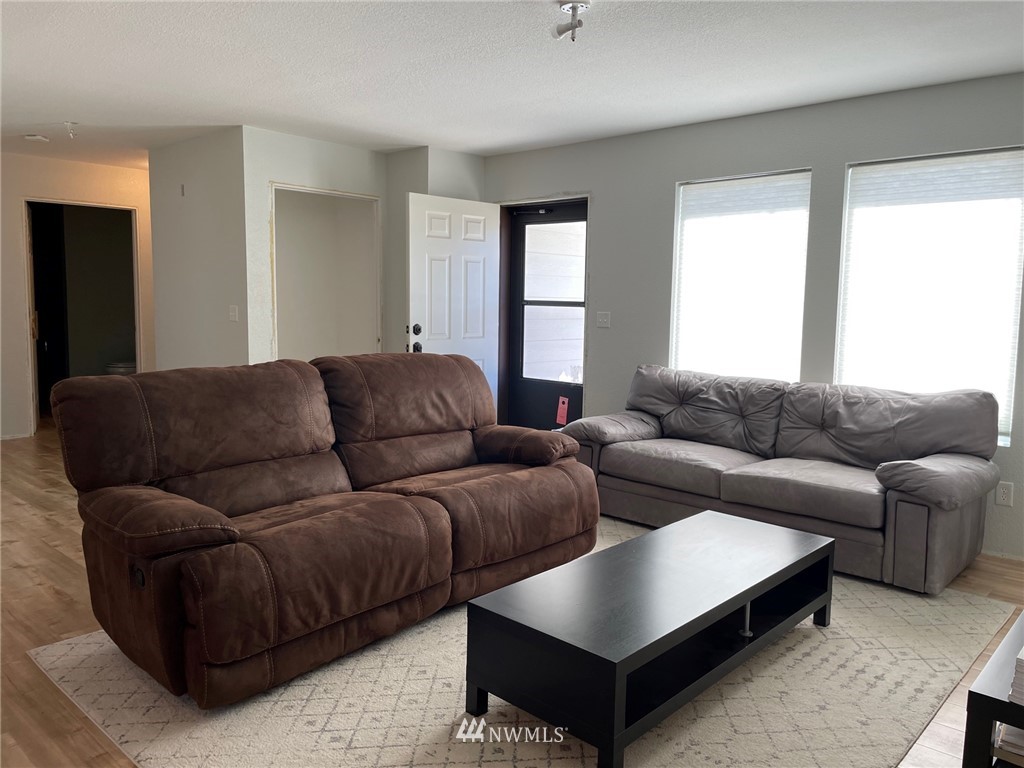 Set back from Cora street, surrounded by nice sized yard areas on all sides, this home has a very private feel and great potential both inside and out. 3 bedroom home features a bright and open floor plan with fresh paint and new flooring through the main living area, dining, kitchen and into the hallway. New counters, deep sink and GE Profile appliances in the kitchen. Master bedroom has 2 closets for storage and the full bath has new tub/shower, vanity & fixtures. Newer hot water tank and large laundry area with washer & dryer. Attached double car garage and lots of extra parking space outside for those toys and trailers. Just a few finishing touches are still left to make this home your own.