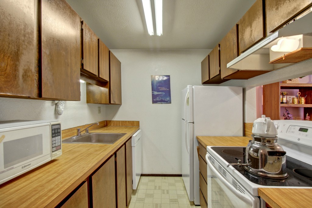 Welcome to Chateau Thierry in the heart of the Greenwood community. This two-story condo features 2 bed, 1 bth w/newer appliances that stay with the home, newer carpet, W&D and it's situated on the top floor on the end for added privacy. Private deck is perfect for morning cup of coffee. Game/Rec room located on site. Great location filled with shopping, restaurants, neighborhood pubs, coffee & a short commute to downtown Seattle!