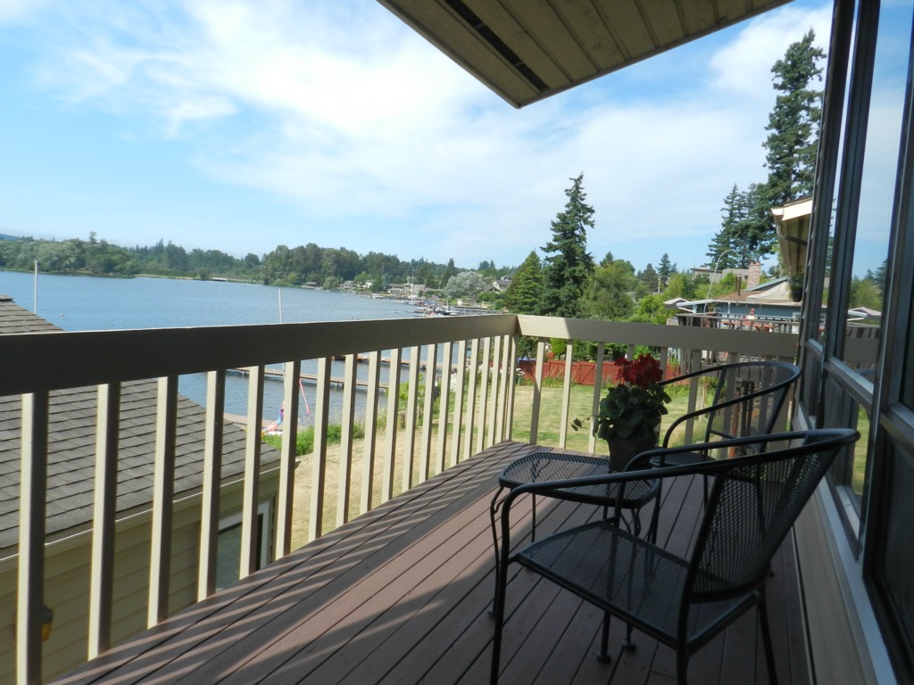 Lk Whatcom waterfront at a 1st time buyer price. Beautifully remodeled condo enjoys a south facing view of the lake without the street noise, buffered by the separate units behind them. Common property includes a grass play area, dock and boat rack. Inside you'll find a light filled open floor plan with private decks on 2 levels, updated kitchen (granite and stainless), updated trim and a deck overlooking the lake with space for a BBQ and lounging. Covered parking is just outside the door.