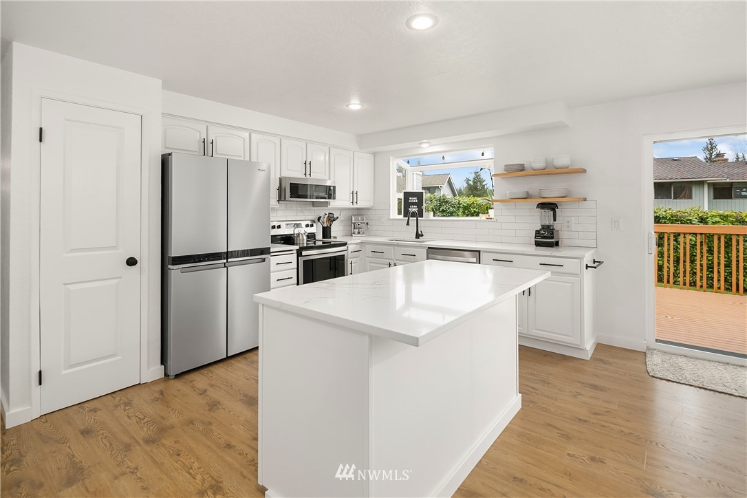 Come on home to this adorable Fairwood Greens cottage! Quietly nestled in a prime neighborhood, this home is ready for you to move in! New floors, updated kitchen and gorgeously remodeled primary en suite bathroom is just the start of it. Each room is spacious and provides a nice floor plan for hosting and everyday life. Walk out onto the newly rebuilt deck which takes you into the massive fully fenced yard. Plenty of garden space to use your green thumb, there are already three thriving blueberry bushes ready for your enjoyment. Don't forget about the two car garage, large pantry and new kitchen appliances! Steps to schools, parks and restaurants you don't want to miss this!
