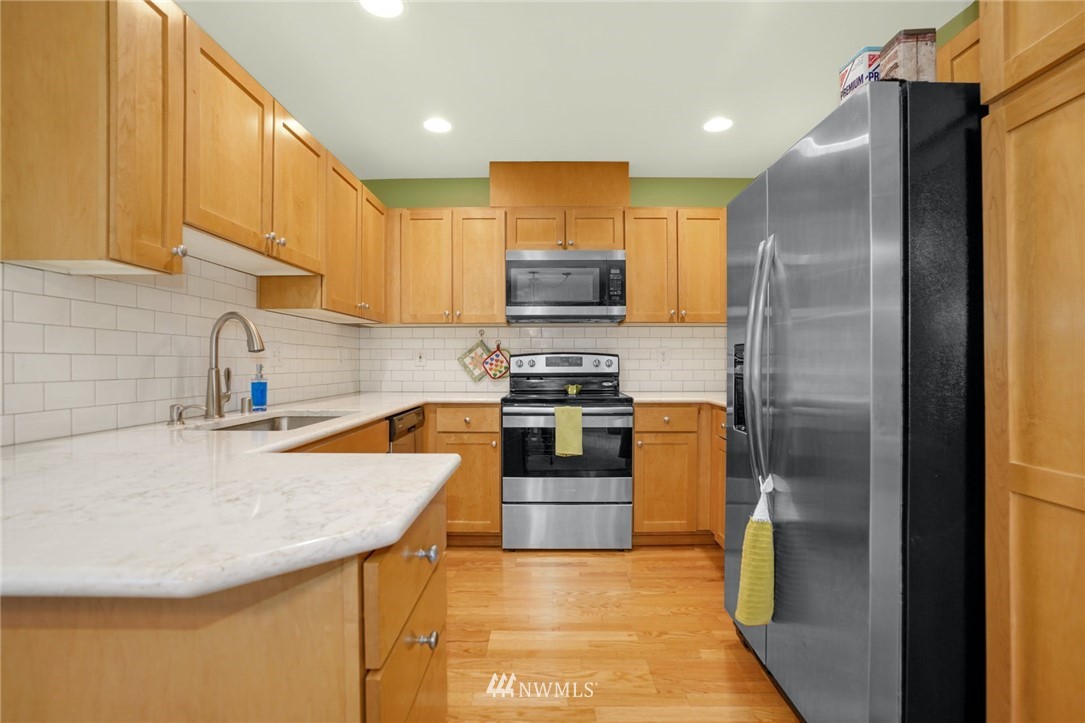 Irish eyes are smiling at this beauty. Welcome to the private gated community of Walker’s Mill. All the comforts of home, none of the hassle! Functional downstairs floor plan features updated kitchen w/ SS Appliances. The slider leads out to a spacious fully-fenced yard and patio. Large master suite upstairs with private bath, double sinks, soaking tub, shower and walk in closet. Oversized 2 car garage has plenty of room for additional storage. Quick trip down the hill to experience the heart of Edmonds and the best beaches and bistros in the PNW. You'll be feeling lucky when you get to call this place home!