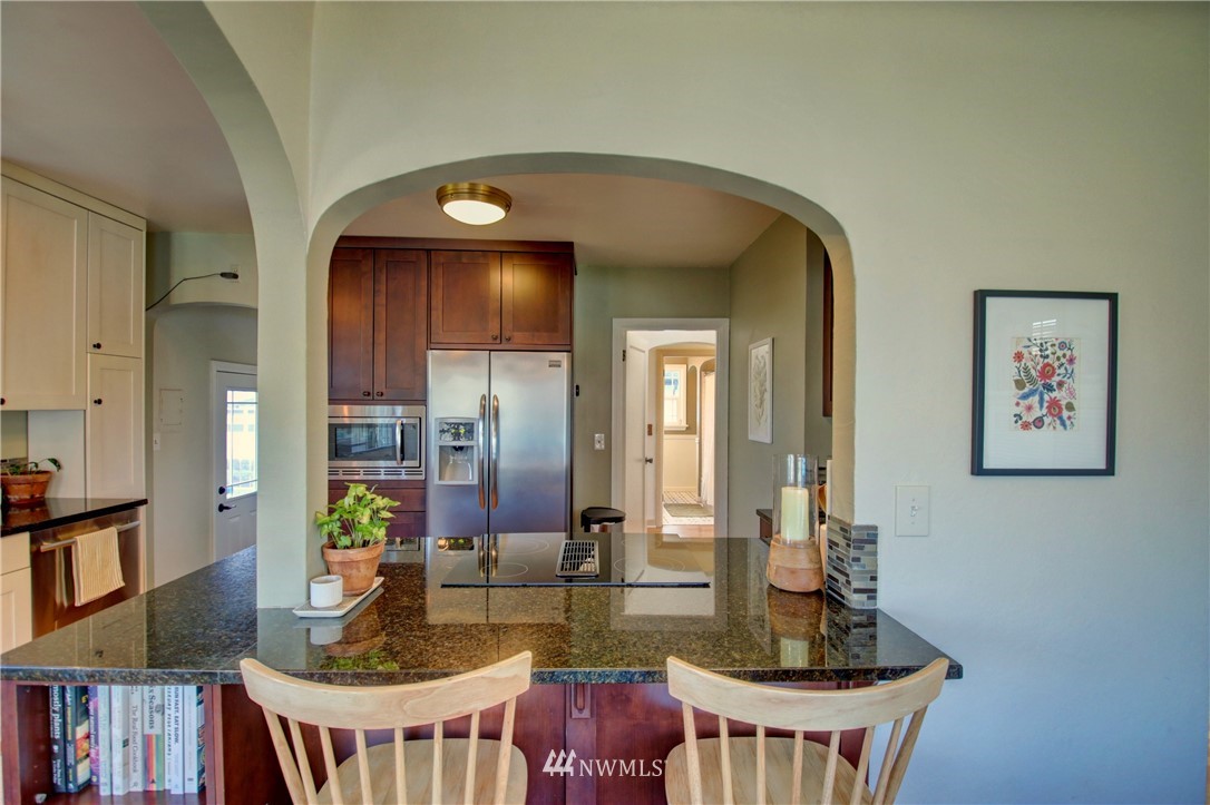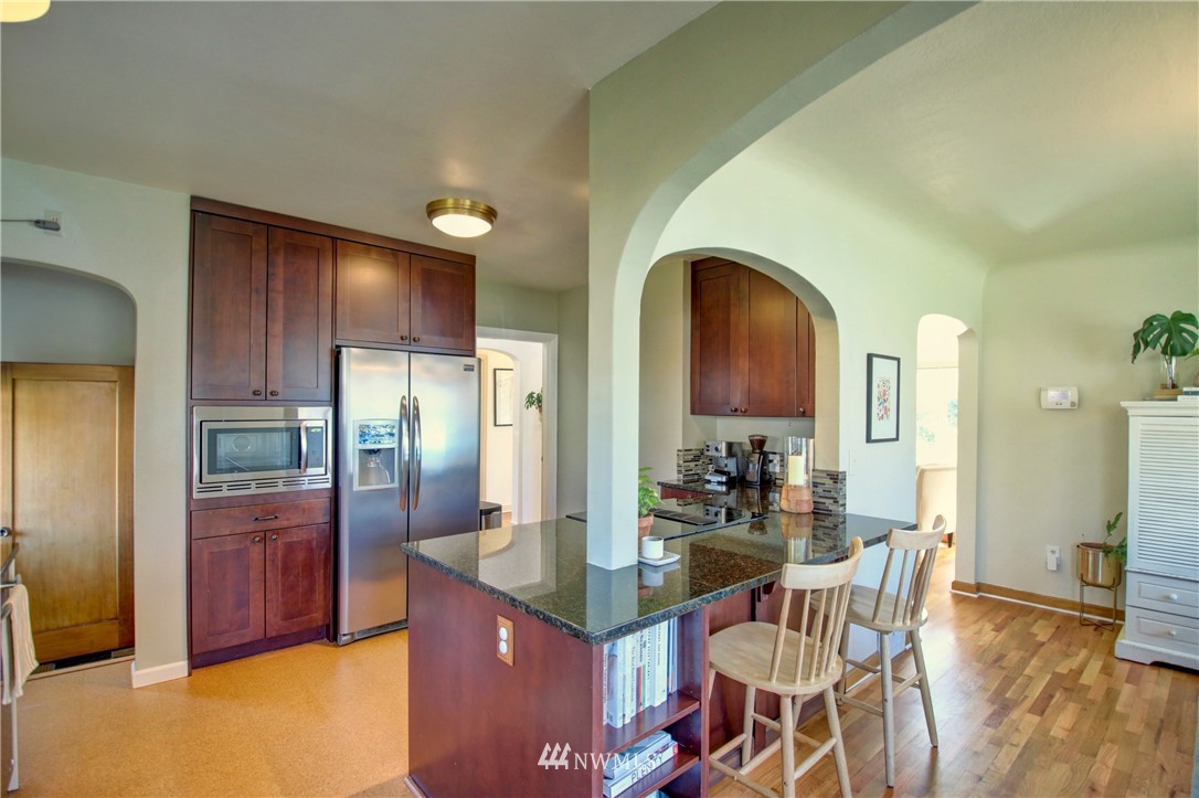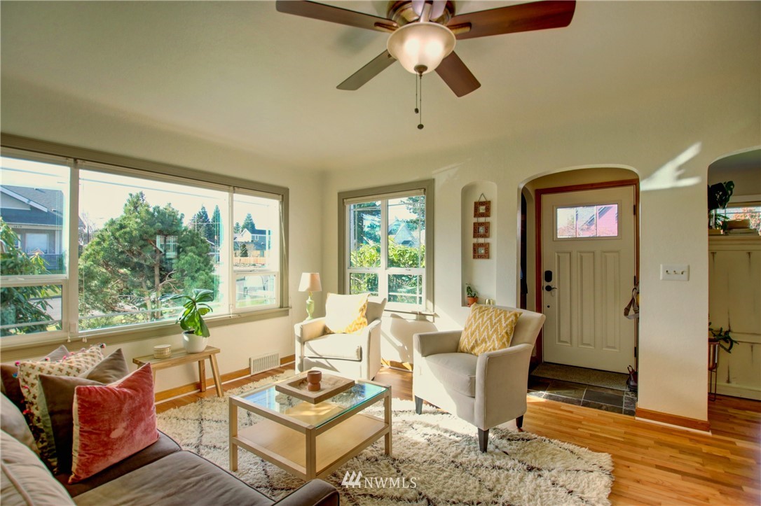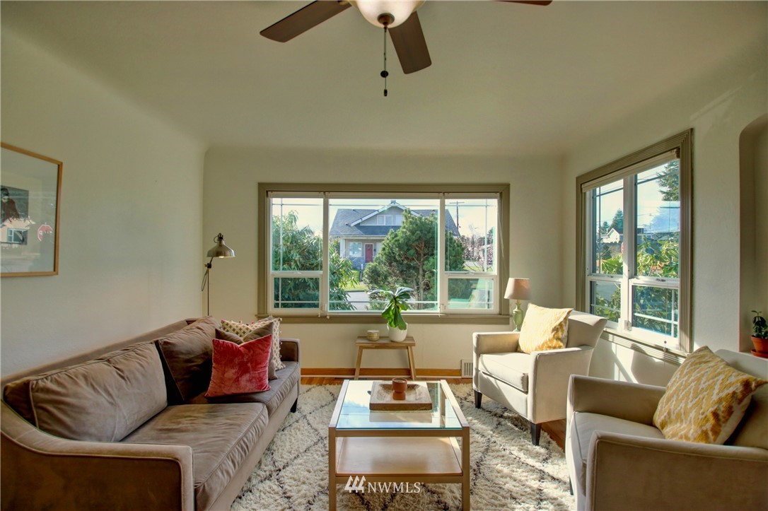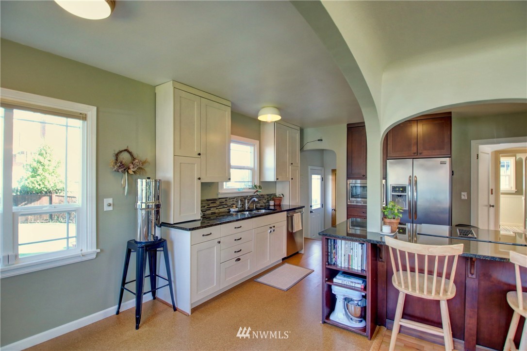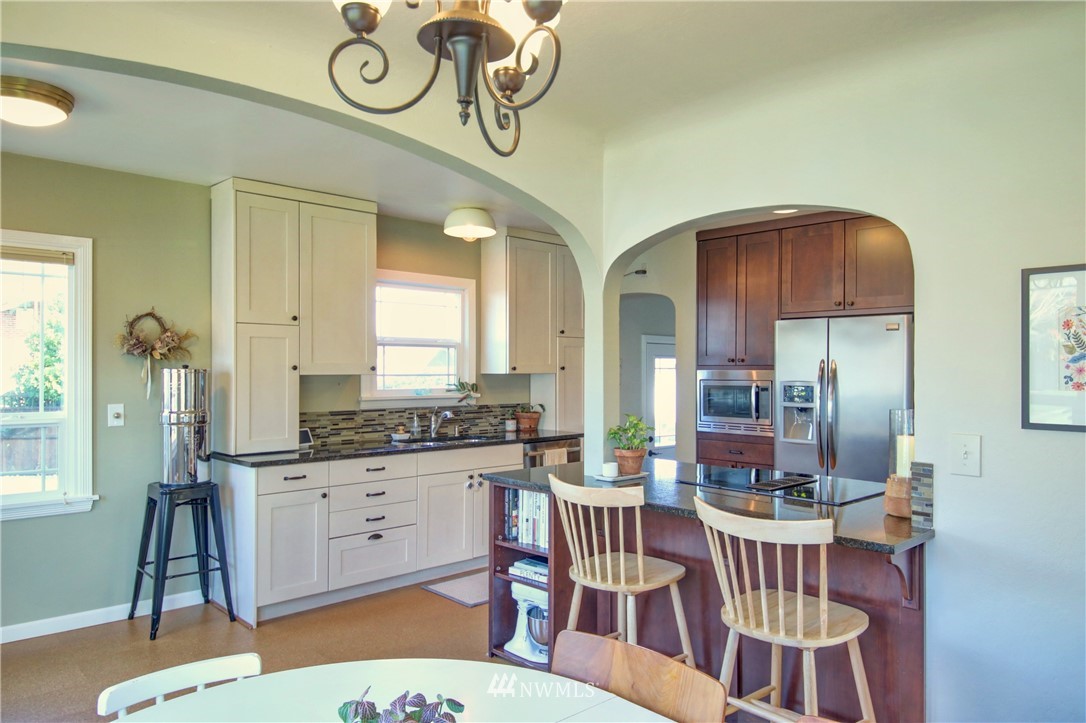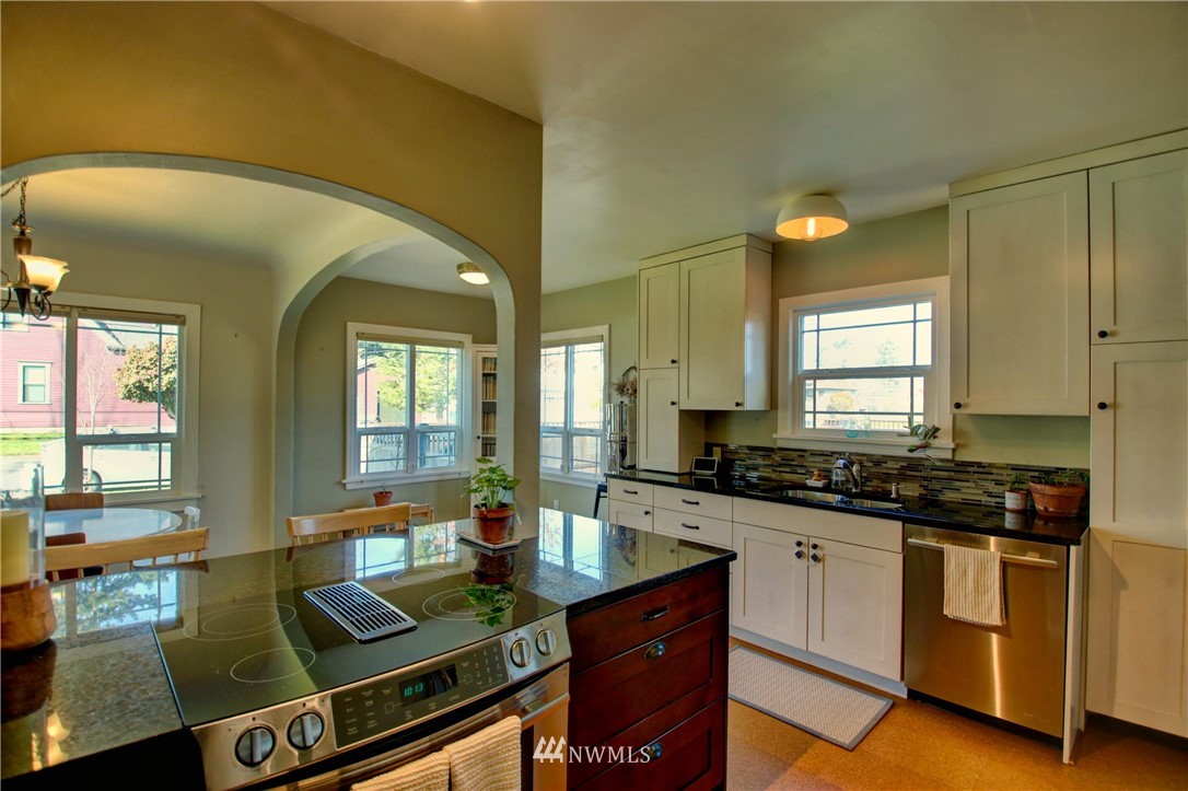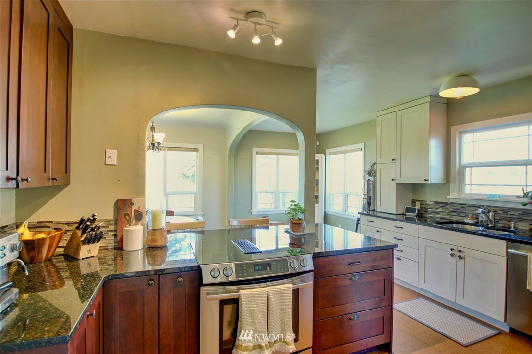 Old Town Beauty! 1750 finished square feet plus an additional 430 sq ft unfinished in the basement. 2 bedrooms, 1 3/4 baths plus a couple bonus rooms downstairs that could be a third bedroom and/or family rooms. Newer updated kitchen cabinets, granite counters, stainless appliances, updated windows throughout, and refinished oak floors. All appliances stay! All this plus gas forced air heat, a large fenced backyard on a corner lot, and a 1-car garage. Partial water views and just a few steps to the water, Guemes Ferry, shopping, dining, library, and downtown. Don't miss out on this one!