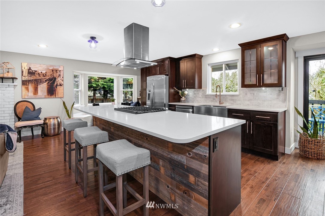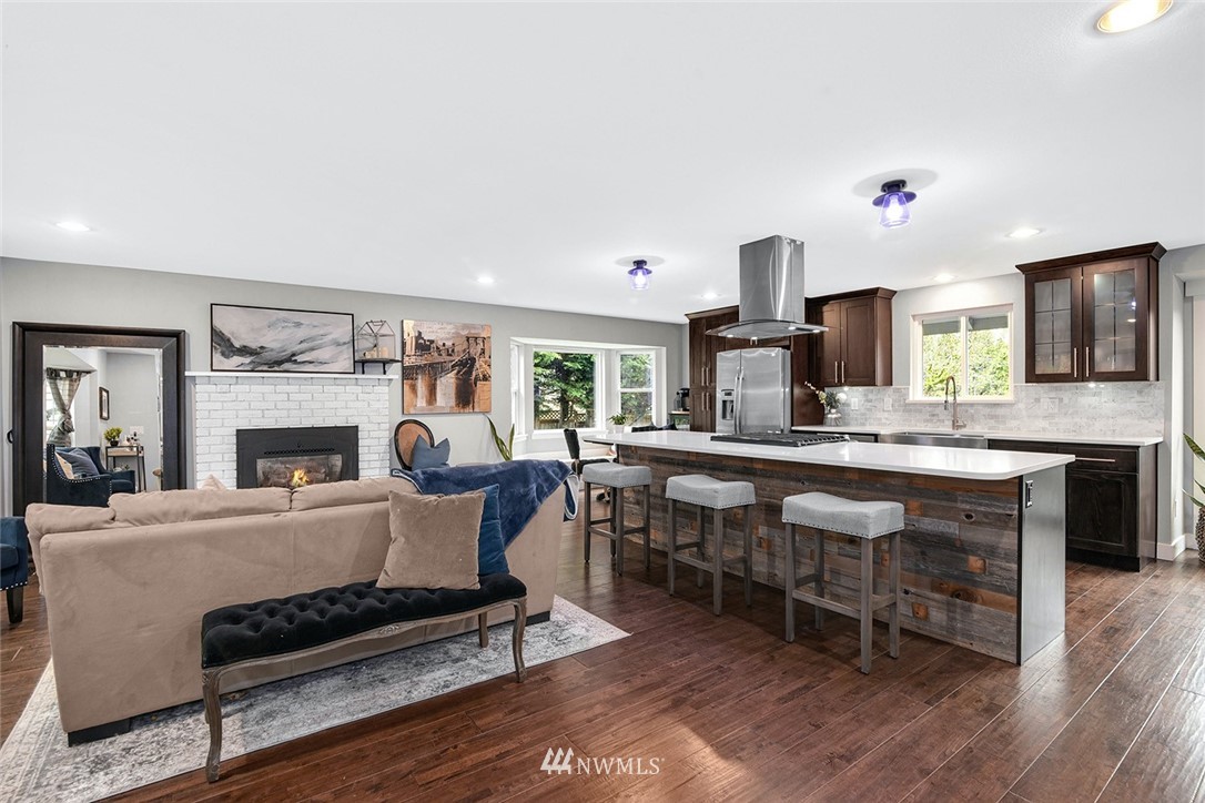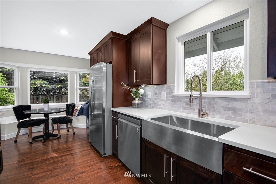 Charming recently remodeled energy efficient Renton Highlands home located at the end of the cul-de-sac with privacy and terrain views. Features updated modern chef's kitchen with new cabinets, white quartz countertops, 12 ft island, marble backsplash, SS appliances, and gas range stove. Open floor plan with a large bonus room, living room with gas fireplace, all new lighting throughout, new woodwork, Bay double windows, newer engineered hardwood floors. Renovated bathrooms with new bathtub, shower, and ceramic tile. Extensive fully fenced outdoor space with a 170sq ft deck perfect for entertaining. Great location for commuting and in close proximity to parks, Lake Washington, stores, and restaurants. This home has it all!