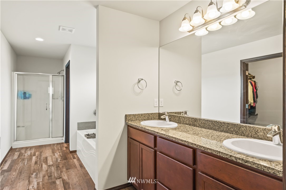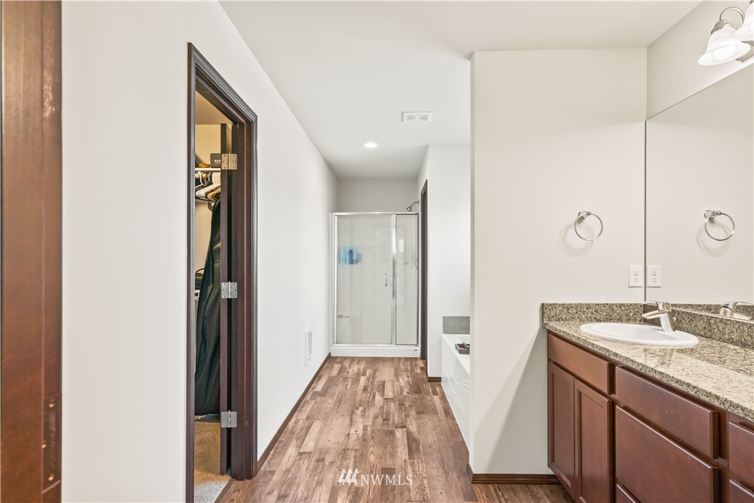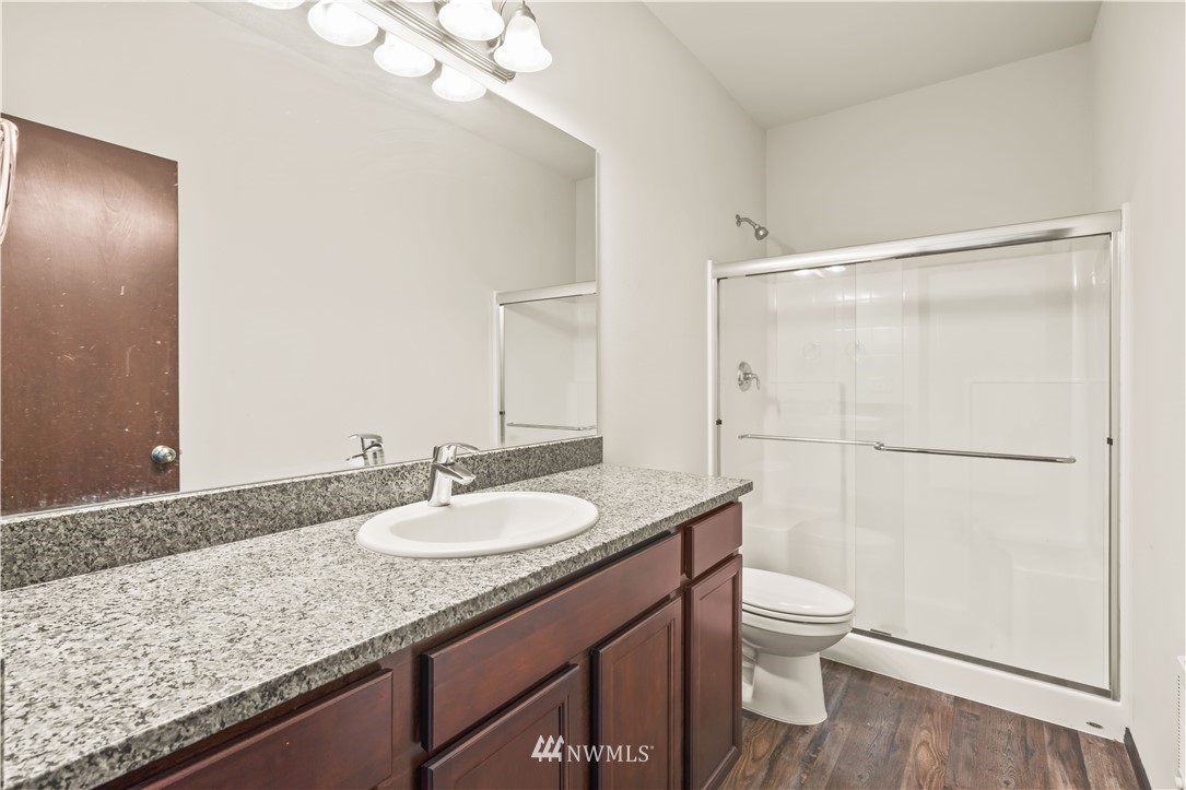 Welcome to the Currier Creek neighborhood this home is tucked away in the middle on a short street. 4 Bedrooms, 3 bathrooms a large bonus room with walk in closet. The main floor open living area, covered back patio, bonus room, granite counter tops, two car garage, fenced back yard. The main floor has a three-quarter bathroom and one Bedroom is located at the front of the main floor perfect for a guest bedroom or office. The upstairs features the large primary suite, bonus room, 2 bedrooms and additional bathroom.