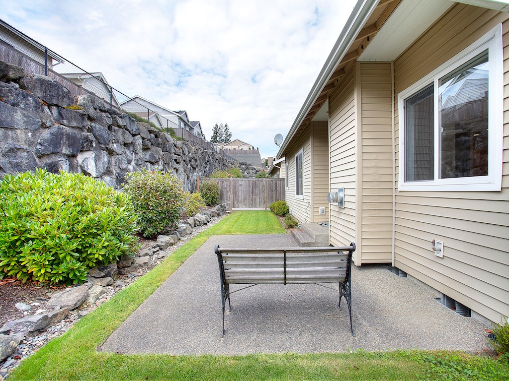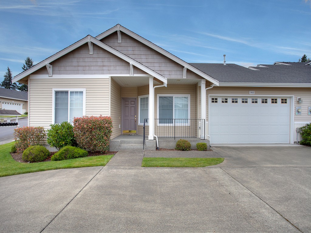 One level living at it's best in Pemberton Creek. Immaculate corner condo with level and private back yard with patio. Open and bright interior with great room at center of home features vaulted ceilings and gas fireplace. Spacious kitchen has full appliance package that stays with home. Large master suite with piece bath, soaking tub and walk-in closet for the well heeled. Second bedroom on other side of home for privacy. Attached two car garage offers parking and storage. 2 beds & 2 baths