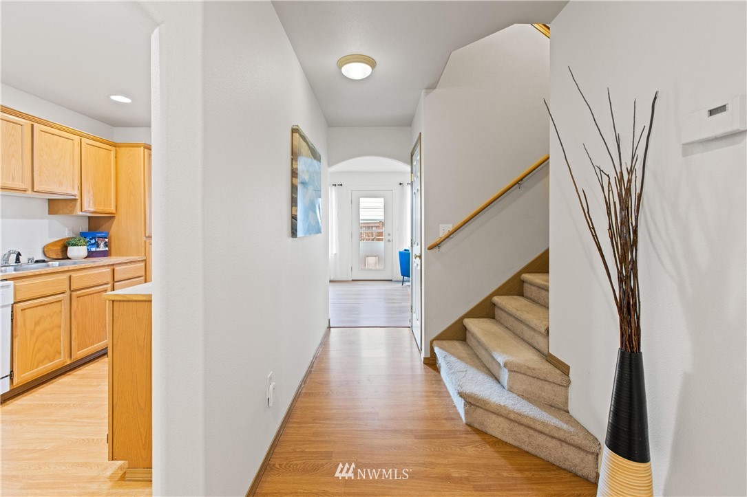 Welcome home to this cute 3 bedroom 2.5 bath Townhouse with vaulted ceilings and walk in closets. On the main floor is a bright galley kitchen with breakfast nook that leads into the dining and living room with beautiful new hardwood floors! Upstairs has 3 bedrooms, two full bathrooms and a conveniently located laundry. Enjoy the fully fenced back patio and neighborhood playground and sports court. This home is centrally located close to everything Lake Stevens has to offer! Walking distance to restaurants, shopping and more with quick and easy access to Hwy 9. Don’t miss out on this opportunity!
