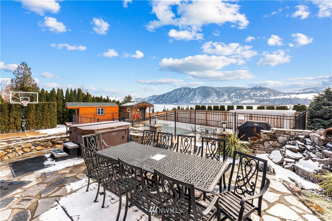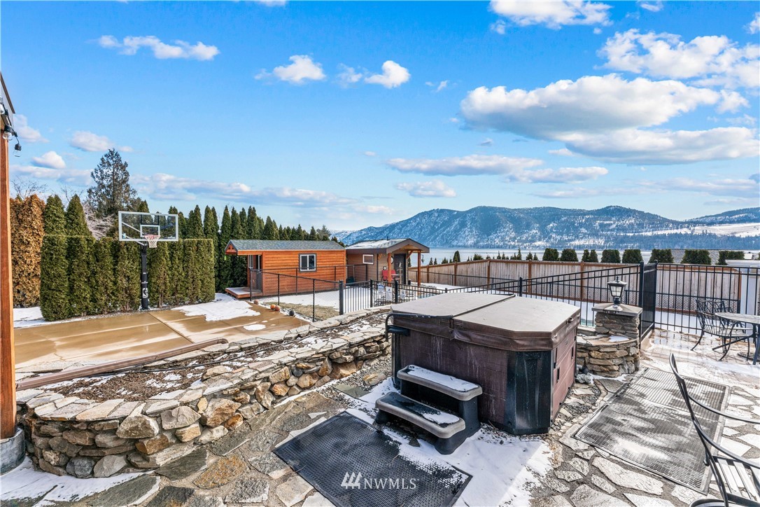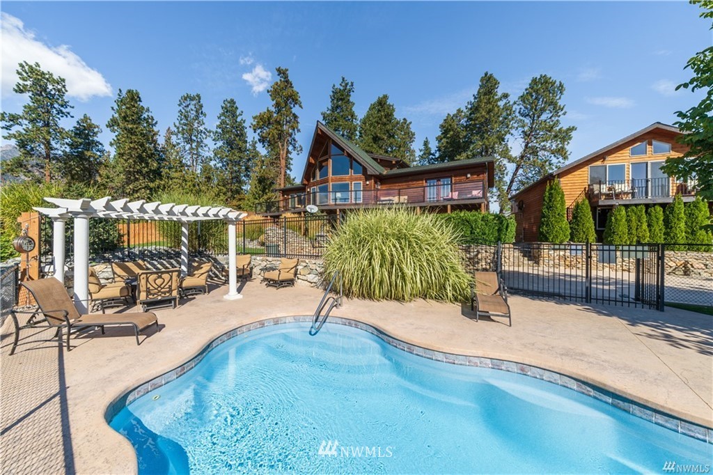 Welcome to the Willow Point Hideaway. This stunning estate embodies architectural artistry. The interiors of thoughtful finishes, including dramatic stone fireplace, walls of windows framing mountain lake views and soaring ceilings with wooden beams, cedar plank ceiling, the home captures the ultimate Lake Chelan Lifestyle. A stand-out feature of the home is the stunning poolside retreat with outdoor patio complete with water feature, 1/2 basketball court, spa and southwestern views looking at Lake Chelan and Bear Mountain. The clubhouse features endless fun for guests with pool table/table tennis, 3/4 bath, wet-bar, loft with balcony overlooking the pool oasis. Short walk to Willow Point Park.