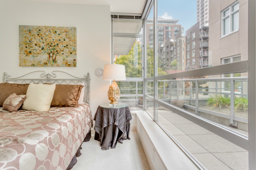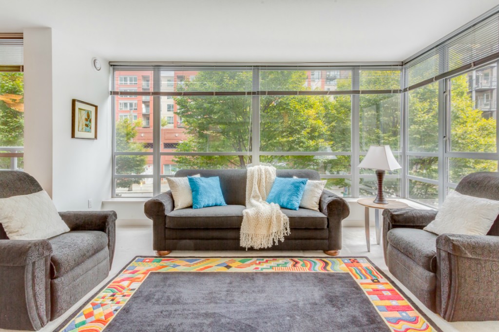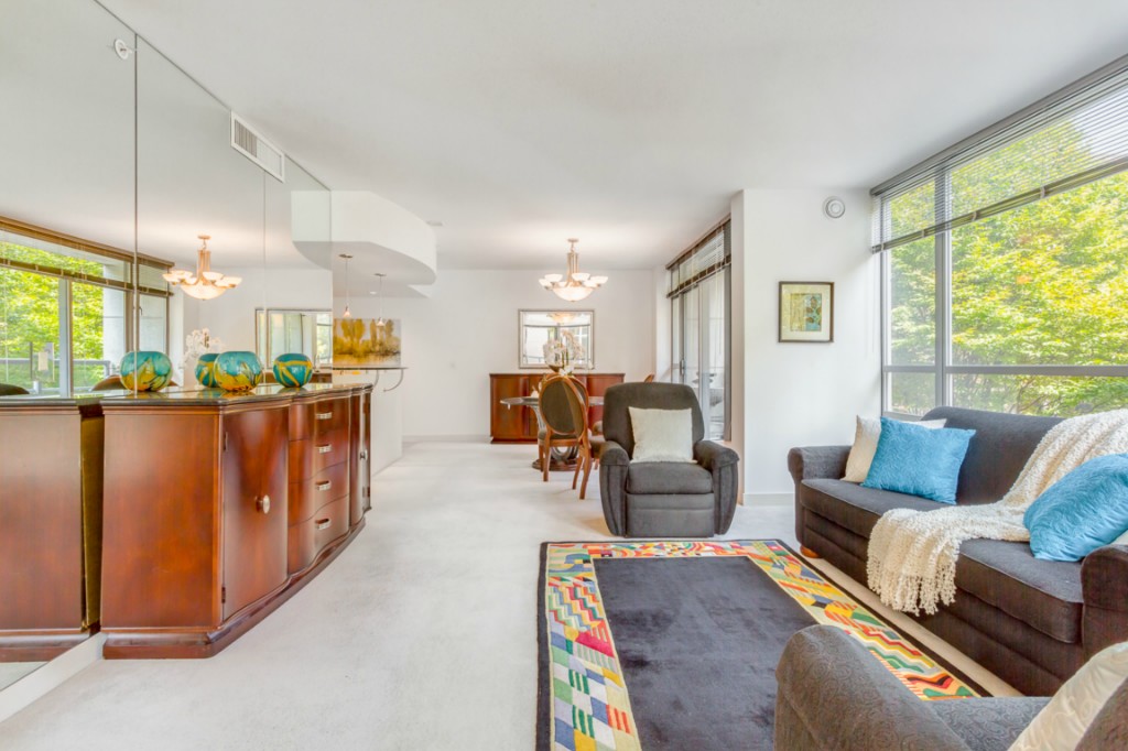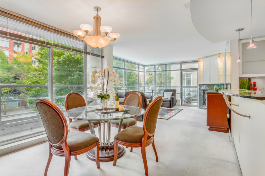 Spacious 2bedroom, 1.75 bath home with open living room, dining and kitchen in the sought after Concord condominiums. This home features a unique side patio for entertaining. Central A/C will keep you cool on warm summer days. This elegant, pet friendly, concrete and steel building in the quiet end of Belltown provides its owners with premier services including friendly 24hr. concierge, fitness center, meeting room with kitchen, business center and common area decks.