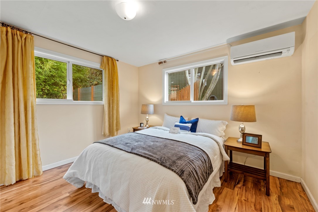Welcome to your own private home in the quiet neighborhood. These two beds + bonus room, nicely remodeled with open floor plan, sunny and bright space with windows all around; bonus room can be an office or GYM. Renovated hardwood floors throughout; Kitchen has marble countertop, new appliances; Living room has a mini split AC. Detached garage. Concrete space near garage belongs to this house. A balcony in front yard for BBQs /reading /capture the sunsets and mountain views. Close enough to city living but having the feeling of being along a country road. Minutes away to Lake Washington & Seward Park. Easy access to I-5, Seatac Airport or the Light Rail. Pictures are virtually staged.
