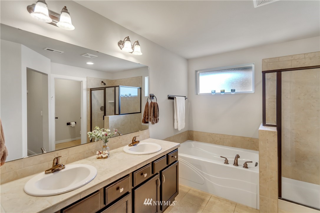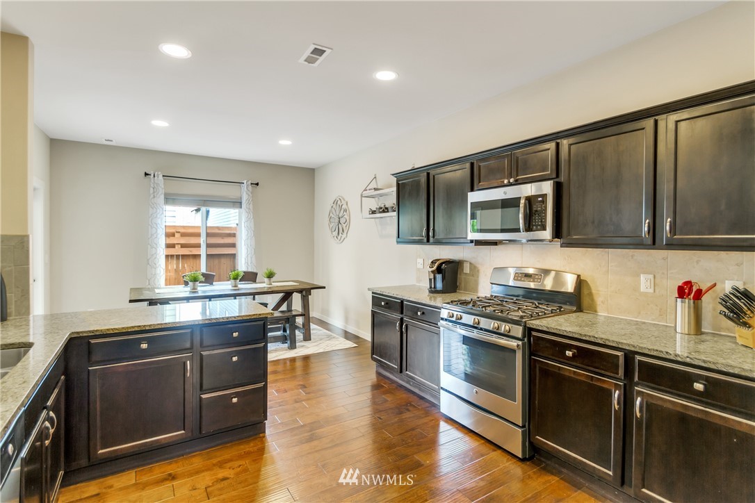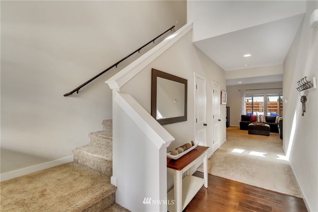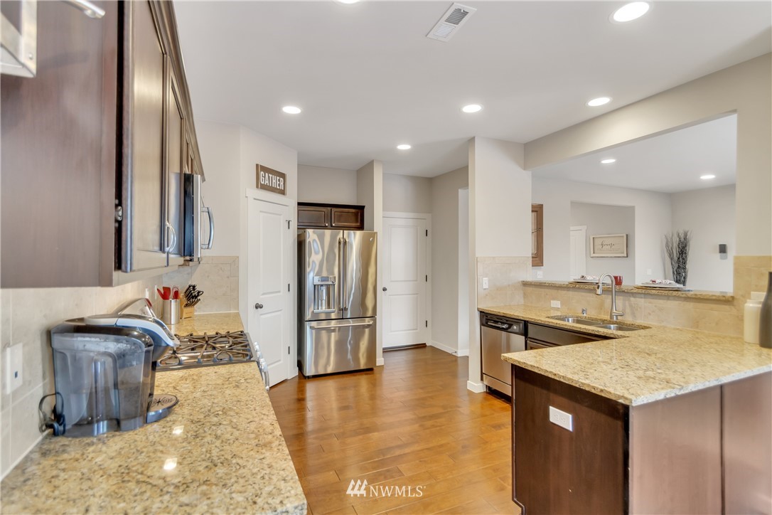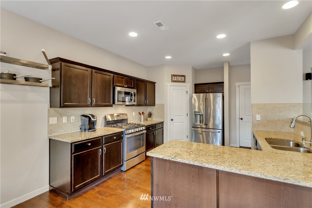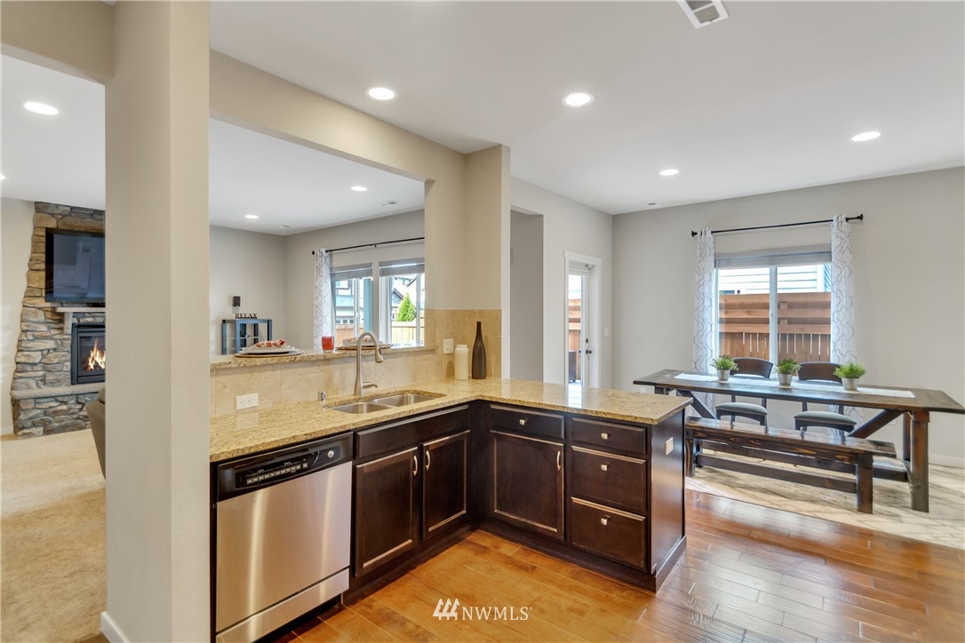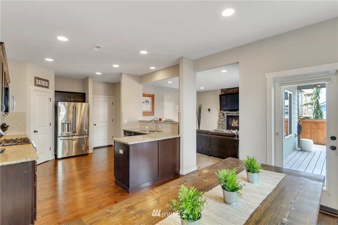 Welcome to Meadowdale Vista in Edmonds. This fantastic Pacific Ridge Homes resale offers an attractive exterior façade and many great interior features. Enter through the bright, 2-story foyer to the open concept living room with stunning floor-to-ceiling stone fireplace. Kitchen with slab granite countertops, stainless steel appliances, and a stylish eating bar. Handscraped engineered hardwood flooring and Bali window blinds/shades. Primary bedroom with tray ceiling, en suite bath, and walk-in closet. Large 4th bedroom can accommodate multi-purpose spaces. Fully fenced back yard with extensive, newer Trex deck. Steps to community playground. Near Meadowdale schools, playfields & beach park. Easy access to freeways, Paine Field, shops.