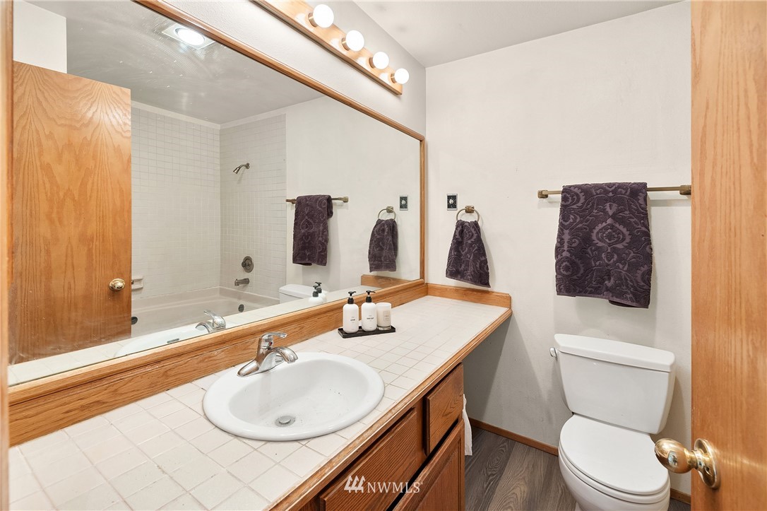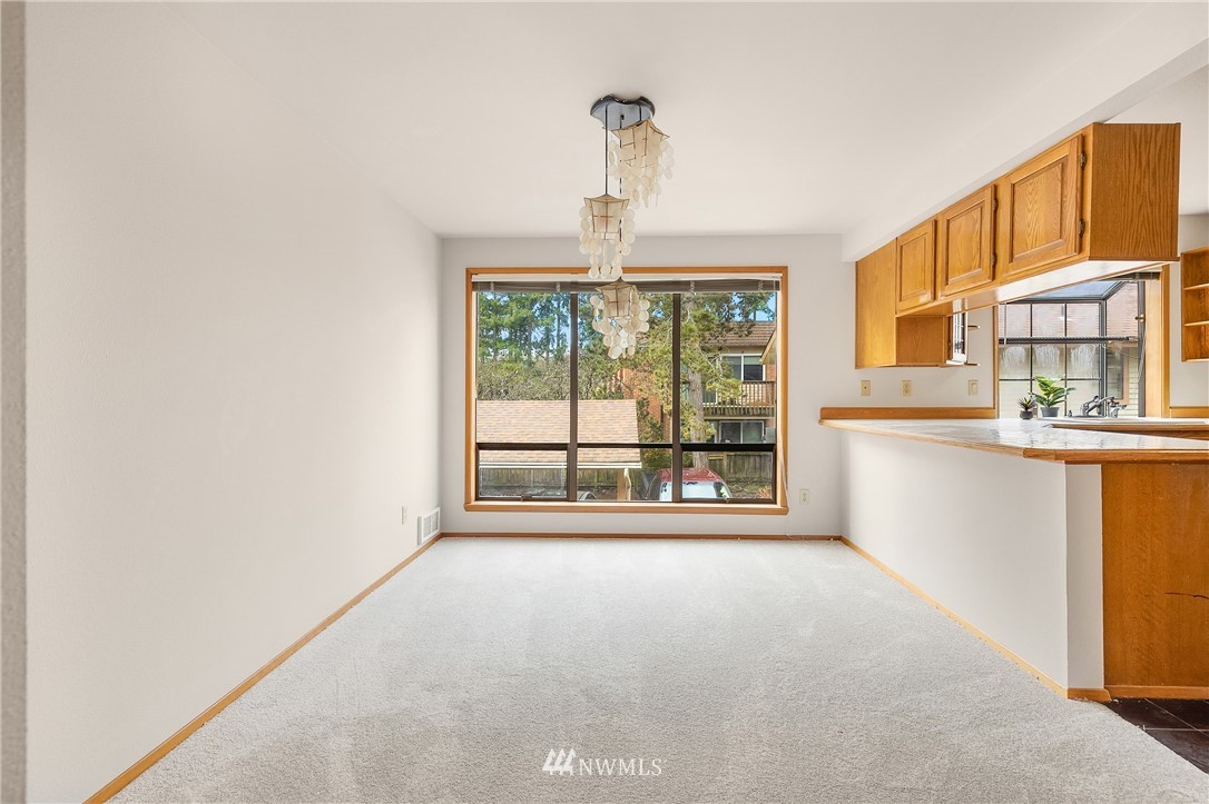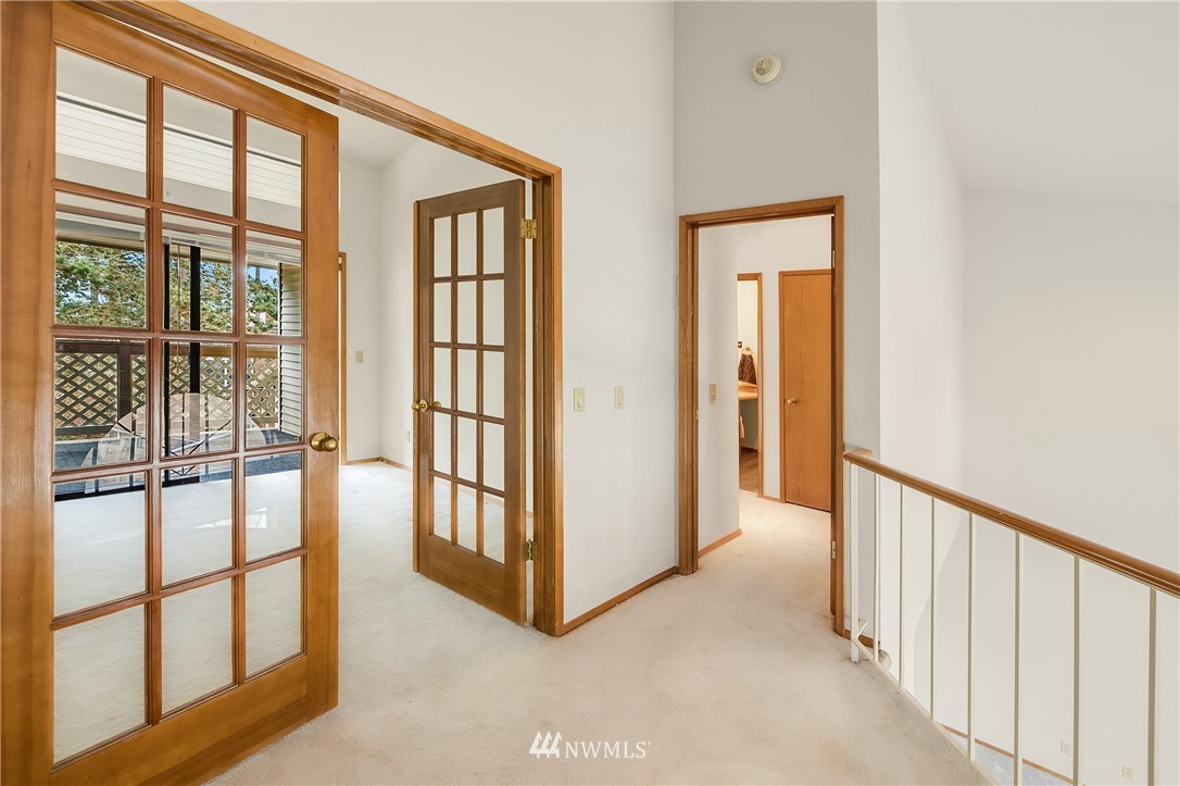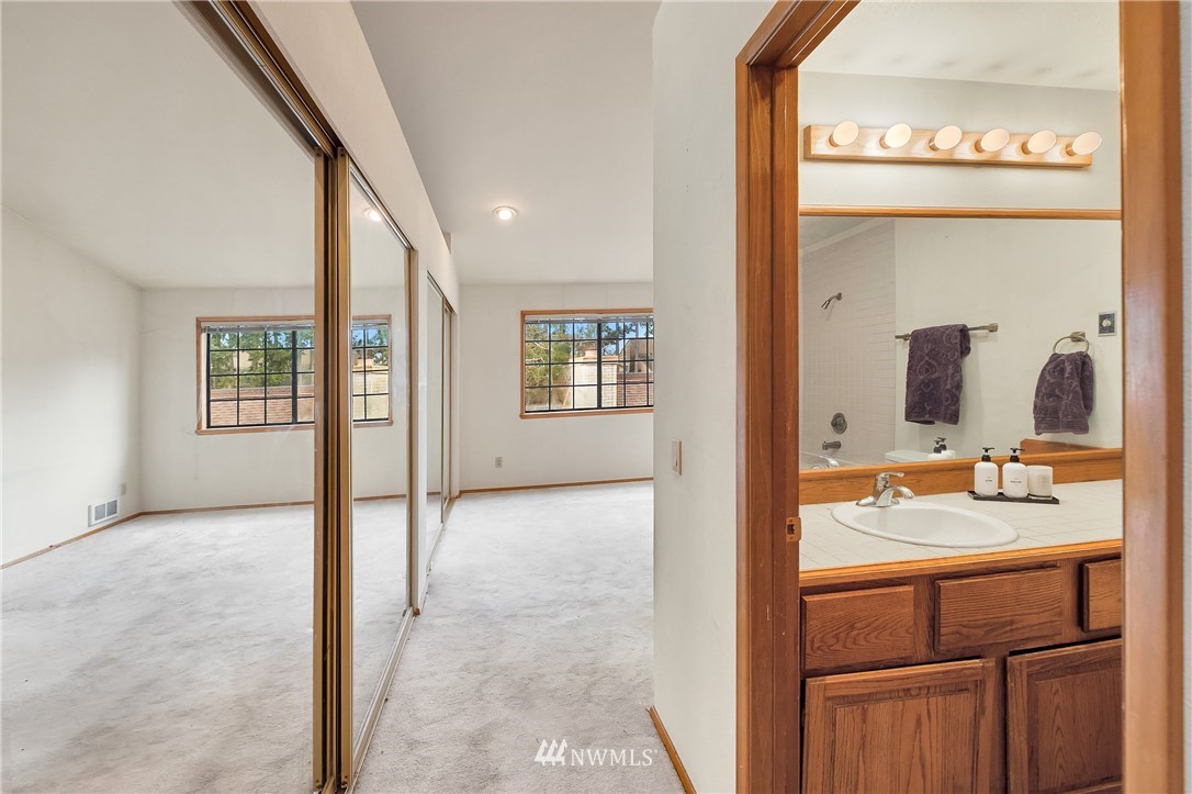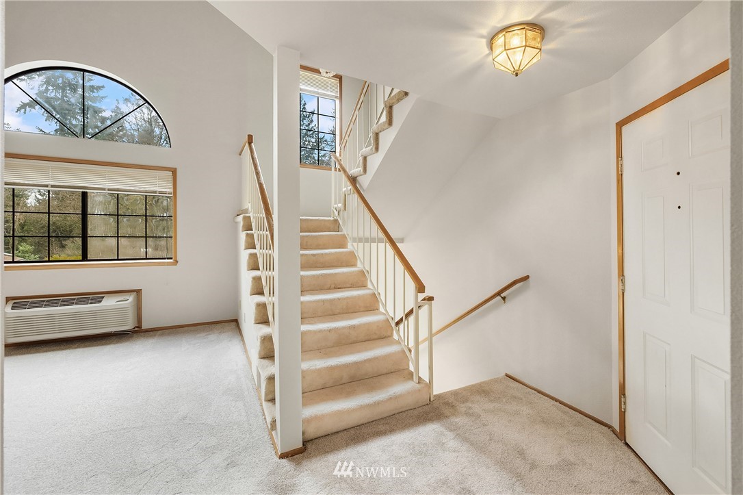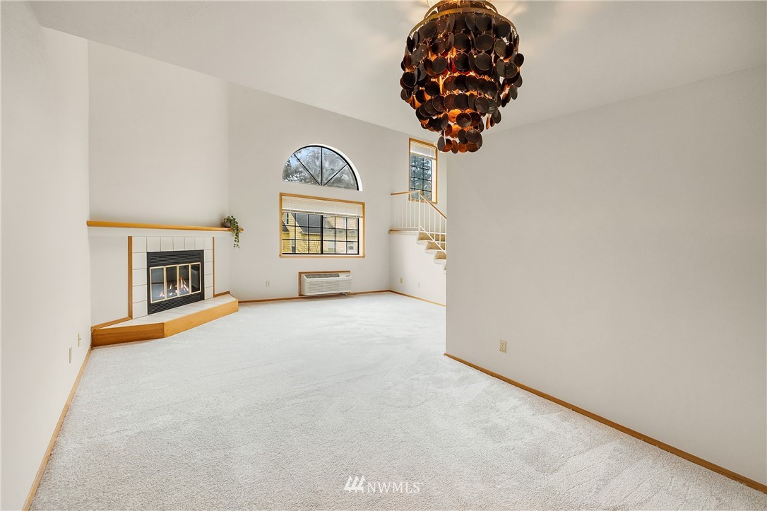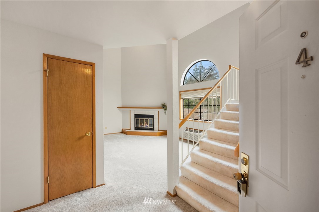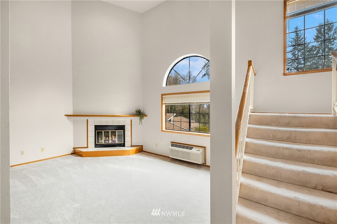 Estate sale. Lives like a townhome with 2 bedrooms PLUS office, 2 car garage and low HOA dues! Each of the two bedrooms includes an ensuite bath. Main floor has huge, vaulted ceilings with cozy fireplace, sunlit Kitchen and casual eating area. Top floor includes Primary Suite with wall of closets & jetted tub, plus the office with French doors and private deck making for a great work-from-home space. Lower floor includes the secondary bedroom with walk-in-closet and attached bath and large under-stair storage. Fantastic private patio out back. All new carpet and paint on the main floor. Plenty of storage, washer/dryer stay. Bring your finishing touches. Easy access to I-5, restaurants, library and shopping. Rental cap is met. Preinspected.